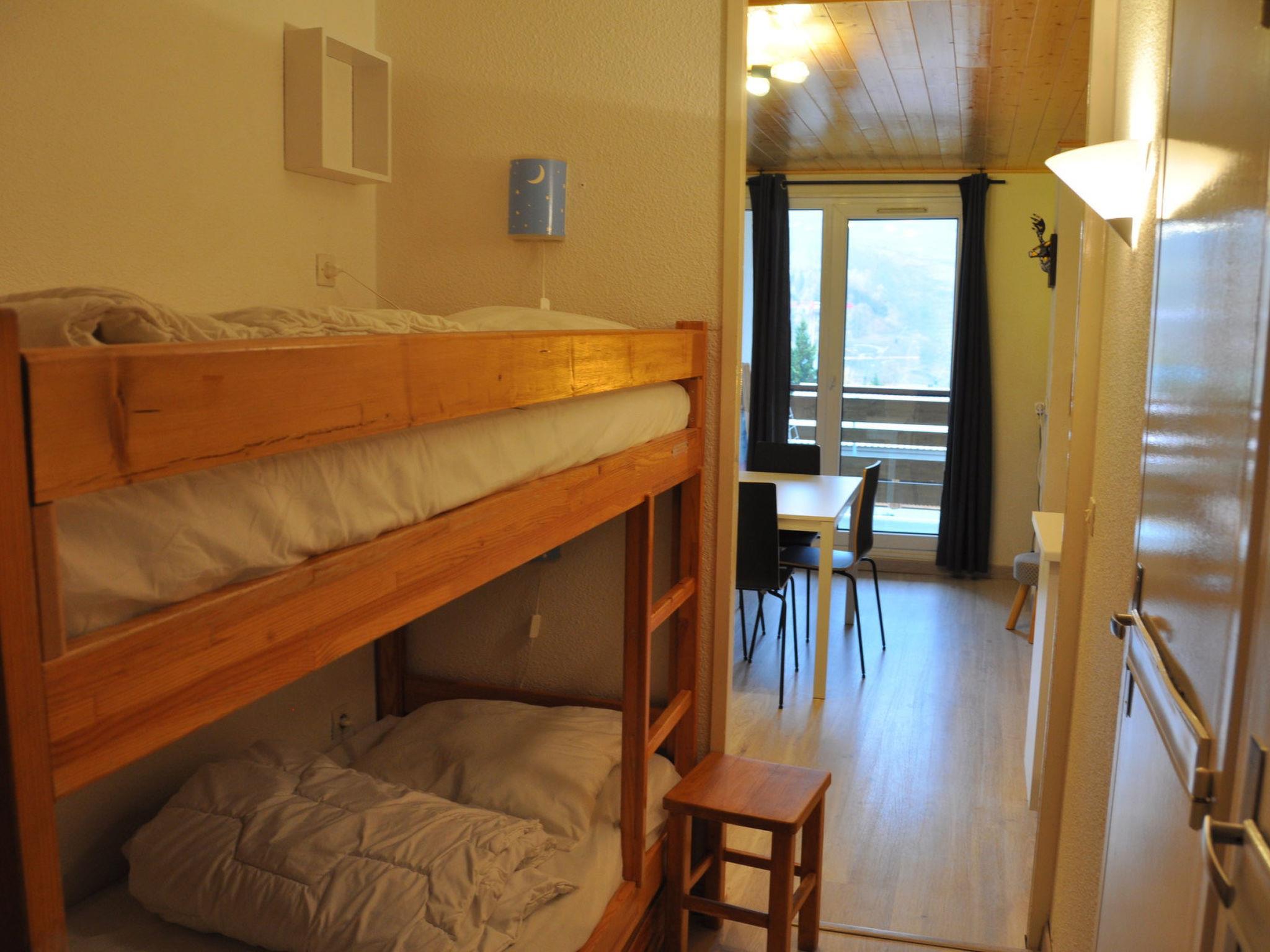"Meije 7", 1-room studio 23 m2 on 1st floor. Object suitable for 4 adults. Living room with 1 sofabed and 2 x 2 bunk beds, 1 pull-out bed and TV. Kitchen (2 hot plates, toaster, microwave, electric coffee machine). Shower/WC. Balcony. View of the mountains. Please note: non-smokers only. 1 pet/ dog allowed. Smoke alarm. Offer by a commercial proprietor according to Art. 155, IV, CGI 38253002683DP
