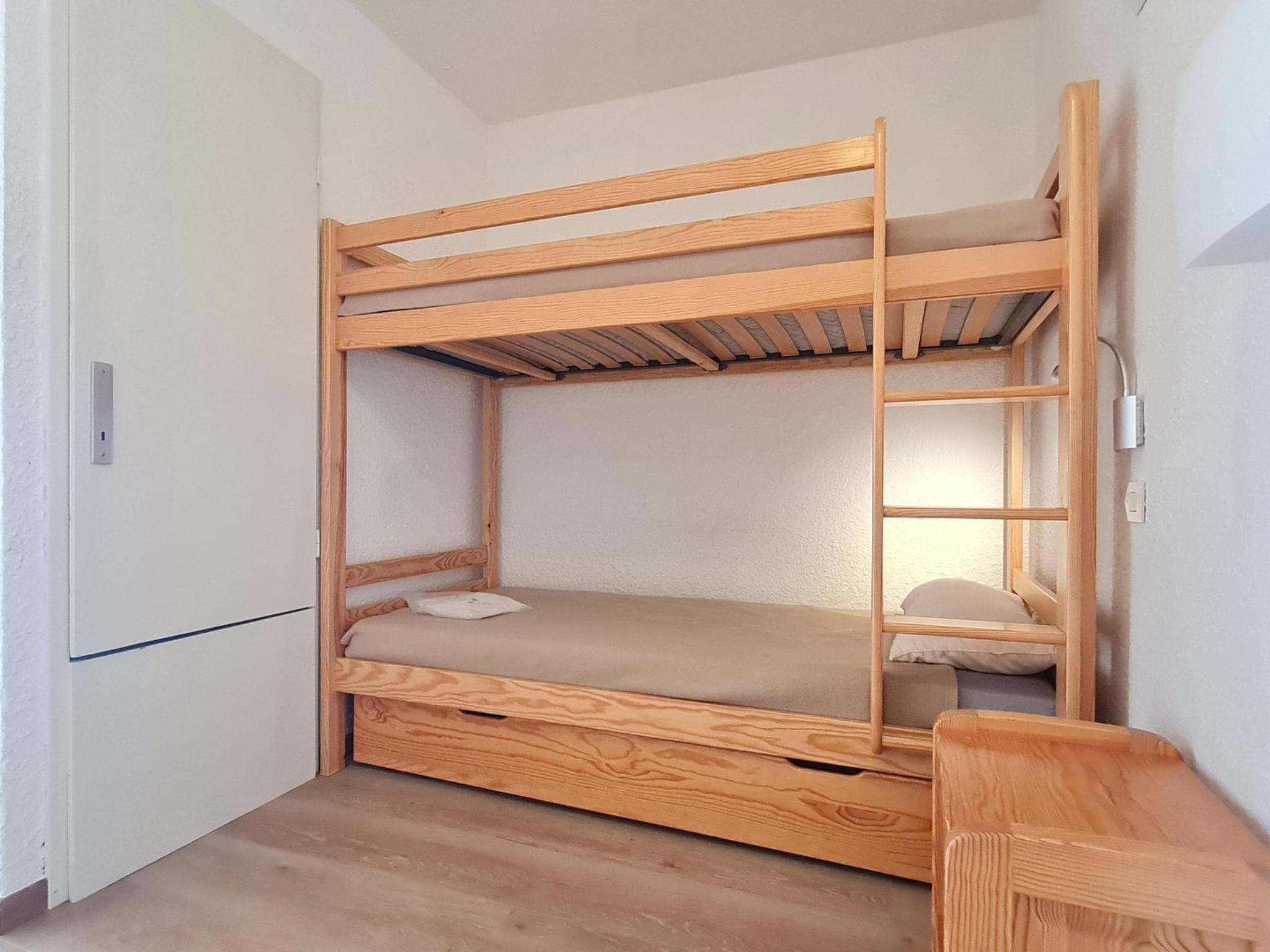 "Vallée Blanche B", 1-room studio 31 m2 on 1st floor. Object suitable for 4 adults. Living room with 1 sofabed and 1 x 2 bunk beds, 1 pull-out bed and TV. Kitchen (oven, dishwasher, 2 ceramic glass hob hotplates, microwave, electric coffee machine). Bath/WC. Balcony. View of the mountains. Please note: non-smokers only. Smoke alarm. Offer by a commercial proprietor according to Art. 155, IV, CGI 38253003009MX