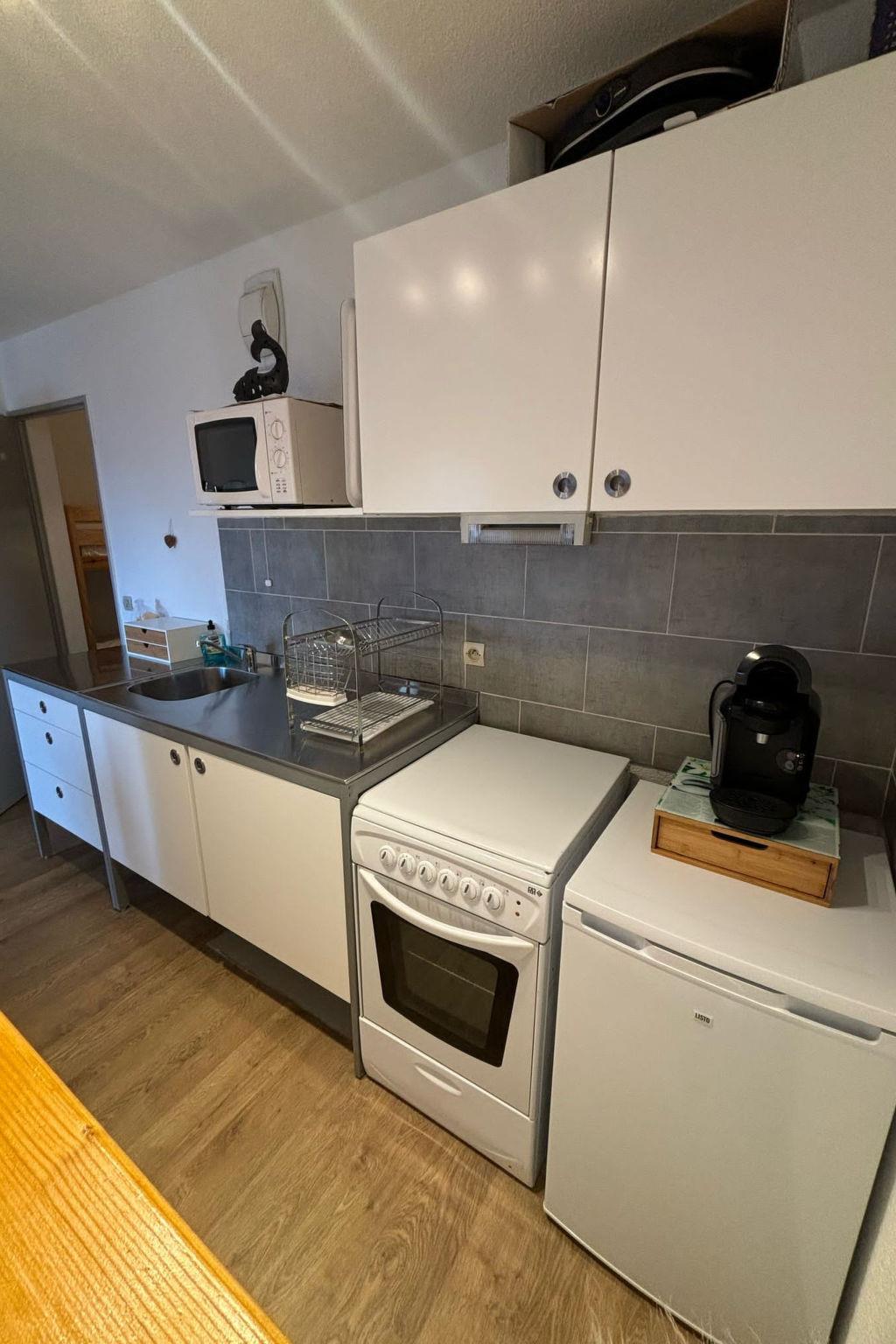 "Pleiades", 1-room studio 28 m2. Object suitable for 4 adults. Living room with 1 sofabed and 1 x 2 bunk beds, 1 pull-out bed and TV. Open kitchen (2 hot plates, microwave, freezer, electric coffee machine). Shower/WC. Parking (roofed, 1 car) at the house. Please note: smoke alarm. Offer by a commercial proprietor according to Art. 155, IV, CGI 38253004436HT