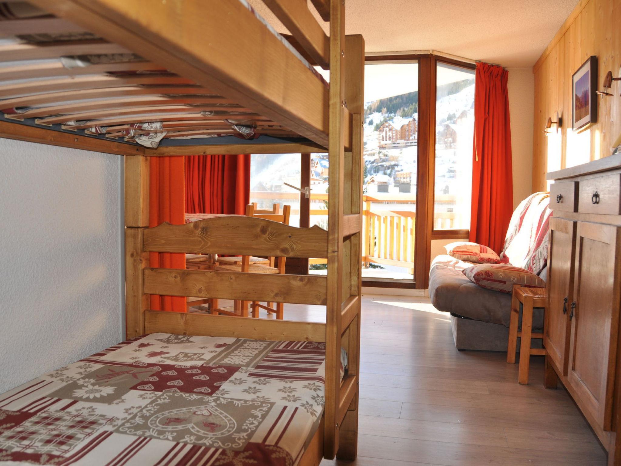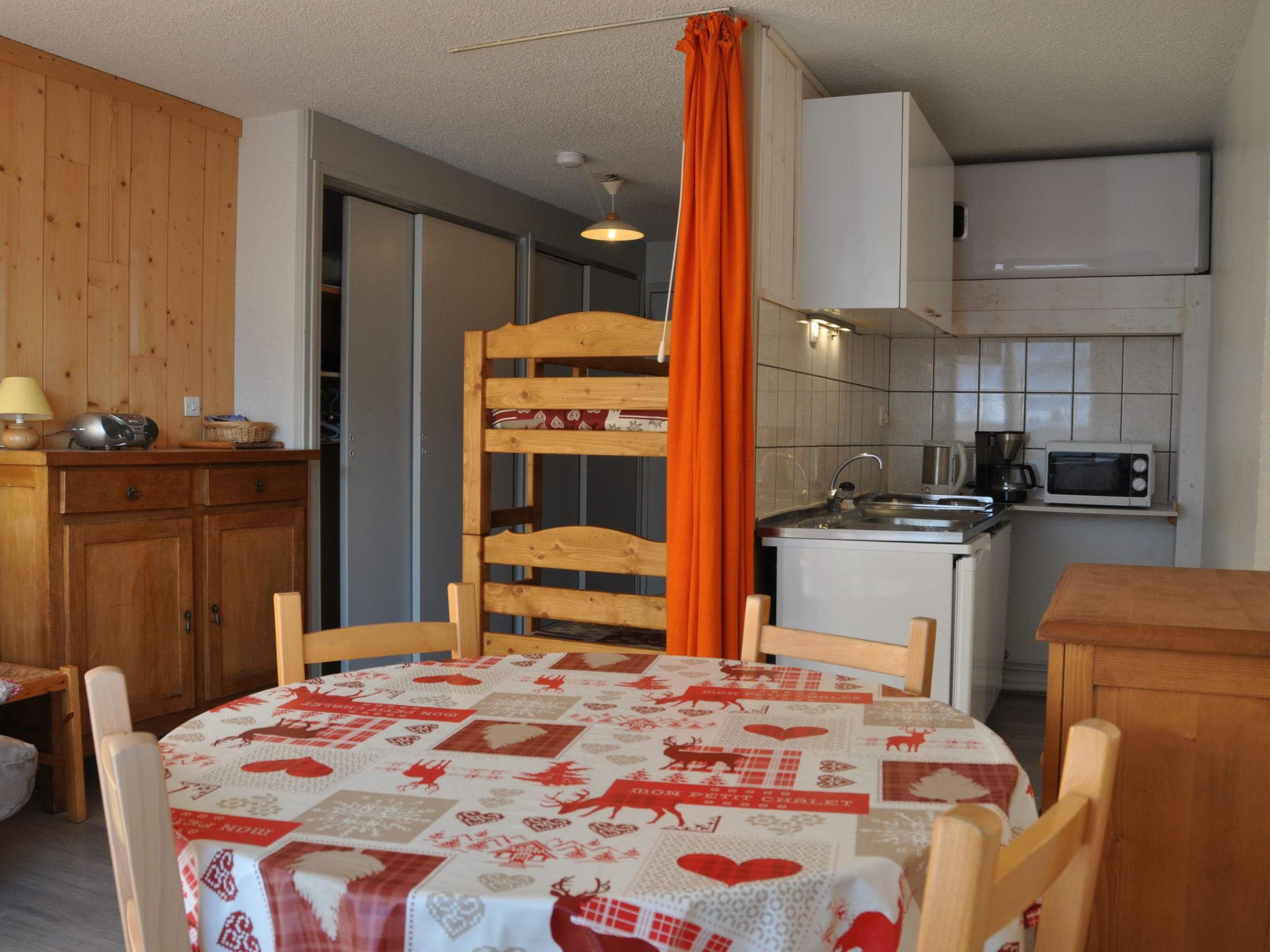"3300", 1-room studio 28 m2 on 4th floor. Object suitable for 4 adults. Living room with 1 sofabed and 1 x 2 bunk beds, 1 pull-out bed and TV. Kitchen (2 hot plates, kettle, microwave, electric coffee machine). Shower/WC. Balcony. View of the mountains and the ski run. Please note: non-smokers only. Smoke alarm. Offer by a commercial proprietor according to Art. 155, IV, CGI 38253000847DP