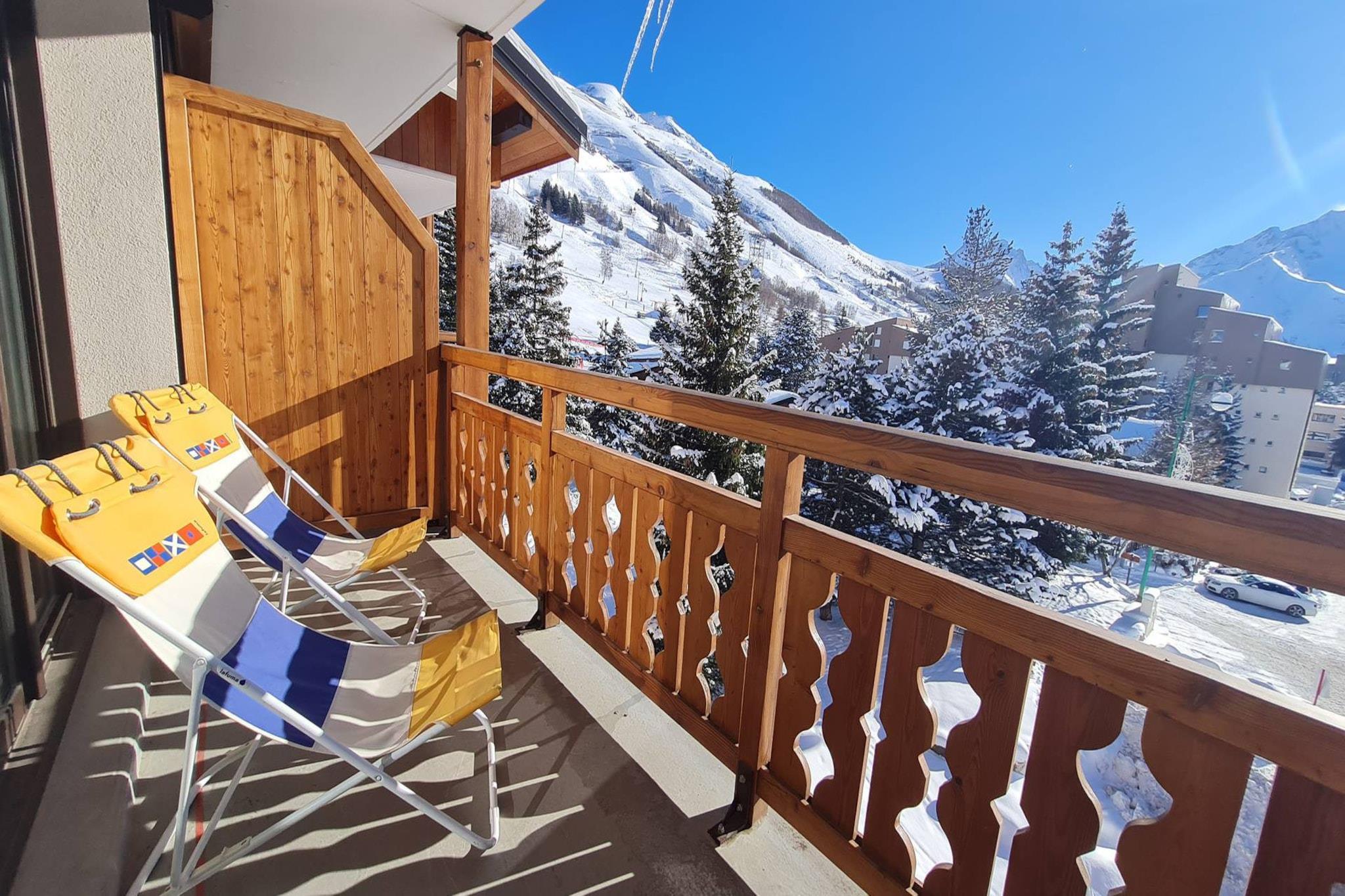Denne lejlighed på tredje sal i Les Deux Alpes ligger kun 50 meter fra skiområdet og tilbyder et praktisk og hyggeligt ophold for skientusiaster og familier. Enheden er tilgængelig med elevator og har en stue med en dobbelt sovesofa og to køjesenge, hvilket gør den ideel til grupper eller familier. Køkkenet er udstyret med ovn, mikroovn, køleskab, kaffemaskine og alt nødvendigt service og bestik til selvforplejning. Badeværelset har et badekar til afslapning efter skråningen. En privat balkon har udsigt over bjergene og frisk alpeluft. Yderligere faciliteter omfatter satellit-tv og bekvem nærhed til skilifte, restauranter og lokale butikker. Beliggende på Avenue de la Muzelle kombinerer denne lejlighed adgang til skråninger med væsentlige bekvemmeligheder for en mindeværdig vinterferie.