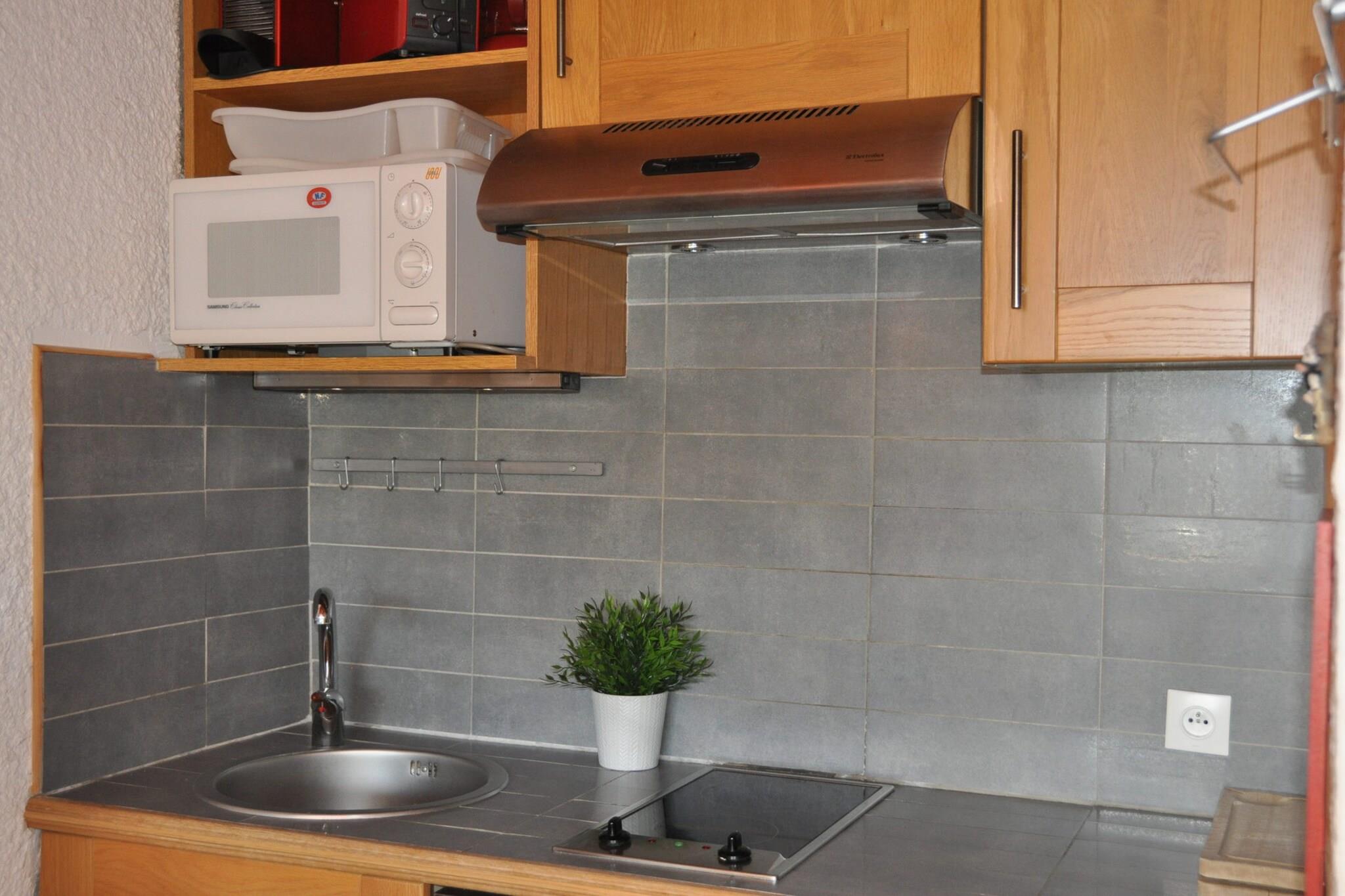 Kun 50 meter fra skiområdet tilbyder denne lejlighed på tredje sal (E4) på Avenue de la Muzelle direkte adgang til pisterne og et behageligt tilflugtssted efter en dag i bjergene. Bygningen har en elevator for nem adgang. Indvendigt har stuen en dobbelt sovesofa og en køjeseng, suppleret med et tv til aftenafslapning. Køkkenet er fuldt udstyret med kaffemaskine, ovn, mikroovn, opvaskemaskine, køleskab og alt nødvendigt service og bestik - perfekt til selvforplejning. Badeværelset har badekar, og den private balkon byder på frisk alpeluft og udsigt over de omkringliggende tinder. Ideel til par, små familier eller skielskende venner, denne lejlighed kombinerer bekvemmelighed, komfort og uovertruffen nærhed til pisterne.