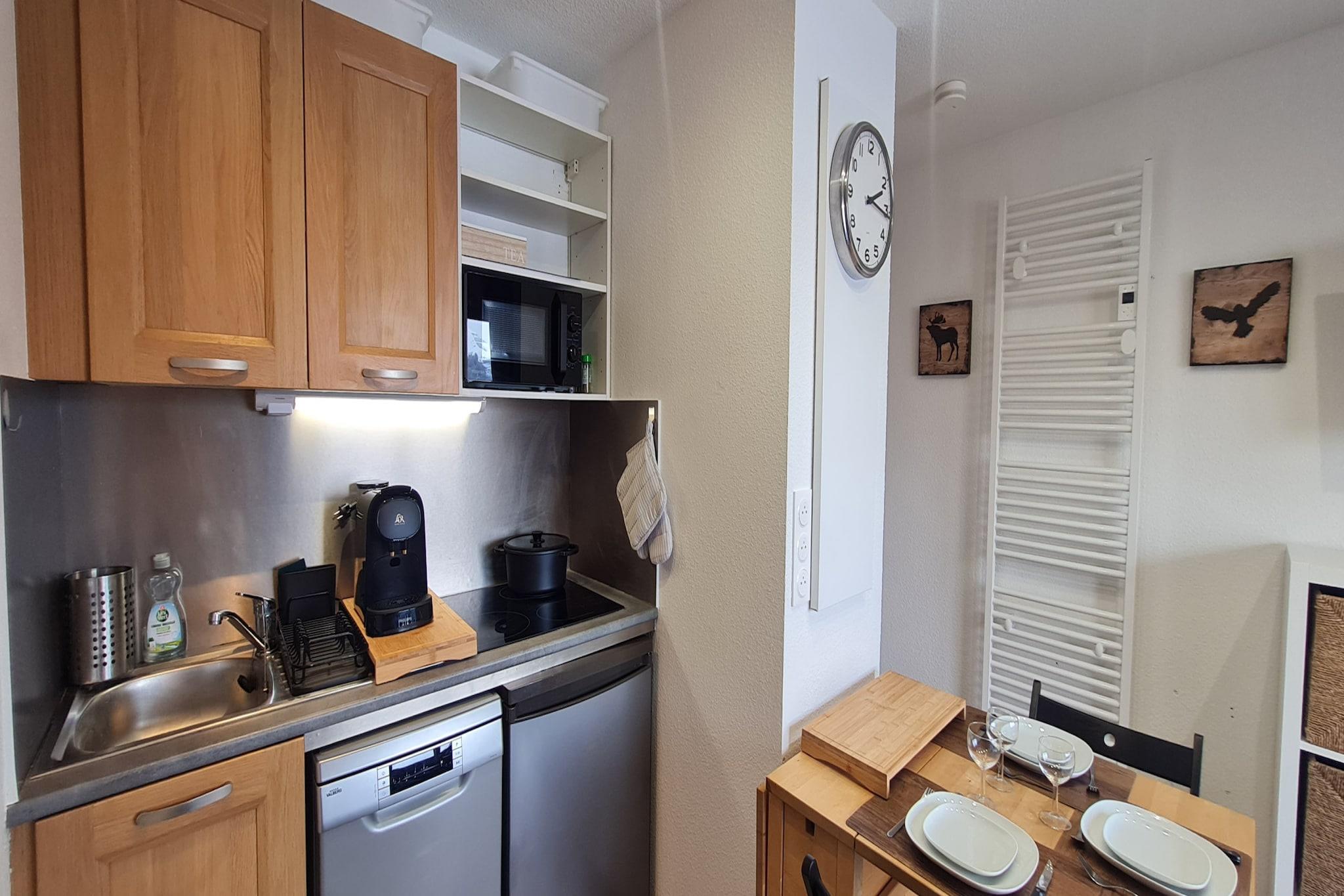 Denne charmerende lejlighed i Les Deux Alpes er ideel til op til fire gæster, og byder på et komfortabelt soveværelse med en dobbeltseng og en sovesofa. Perfekt til små familier eller nære venner, det tilbyder et fredeligt, kæledyrsfrit miljø med elvarme og et tv til hyggelige aftener. Omgivet af bjergskønhed er det et afslappende tilflugtssted med alt det nødvendige for et mindeværdigt ophold. Placeringen er en skiløbers drøm - kun 10 meter fra skisportsstedet for øjeblikkelig adgang til pisterne. Gæsterne kan nyde lokale retter på en restaurant kun 300 meter derfra, mens SHERPA-supermarkedet ligger bekvemt 800 meter fra ejendommen. Området er familievenligt og naturskønt og byder på en rolig atmosfære til både eventyr og afslapning. Indvendigt er køkkenet i åbent plan fuldt udstyret med køleskab, mikroovn, opvaskemaskine, kaffemaskine, brødrister og alle nødvendige redskaber. Yderligere faciliteter inkluderer en vaskemaskine, Wi-Fi, hårtørrer og en balkon til at nyde den friske alpeluft. Gennemtænkt designet til komfort og praktisk, denne lejlighed er en perfekt base for din bjergferie.