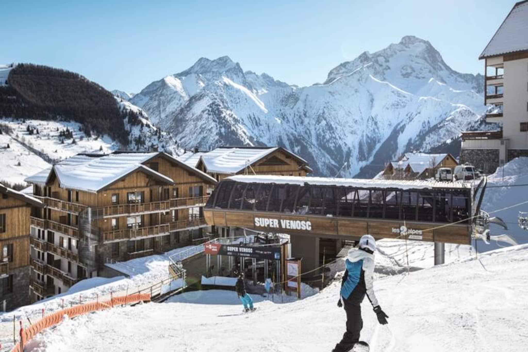 I hjertet af det pulserende Clarines-distrikt i Les Deux Alpes venter et helt nyt alpint tilflugtssted dig på MMV Les Clarines**** Residence Club. Denne moderne og stilfulde residens er perfekt beliggende kun få skridt fra pisterne og skilifterne og tilbyder ubesværet adgang til et af Frankrigs mest berømte skiområder. Uanset om du er her for spændende vintersport eller sommerens bjergeventyr, lover denne ejendom et uforglemmeligt ophold i de franske alper. Træd indenfor i en varm og indbydende lounge med en hyggelig pejs og en moderne bar, der åbner ud til en solbeskinnet terrasse. Residensen er designet med afslapning og komfort i tankerne og byder på et vandområde med sauna, hammam og massagerum, der kan forfriske din krop og sjæl efter en dag med udforskning. Familier vil elske de dedikerede børneklubber for alderen 18 måneder til 17 år, der tilbyder engagerende bjergaktiviteter både indendørs og udendørs. Daglige afterski-arrangementer sikrer latter og fælles øjeblikke for alle aldre. Lejlighederne, der spænder fra 53 til 60 m², er omhyggeligt designet til at rumme op til otte gæster. Hver enhed har en rummelig stue med sovesofa, et fuldt udstyret køkken, to soveværelser med fleksible sovemuligheder, et tredje soveværelse med køjesenge og moderne badeværelser. En privat terrasse eller balkon inviterer dig til at nyde den friske alpine luft og den fantastiske udsigt over bjergene. Yderligere faciliteter inkluderer gratis WiFi, overdækket parkering og kæledyrsvenlige muligheder, hvilket sikrer et problemfrit og behageligt ophold. Med sin uovertrufne beliggenhed, luksuriøse faciliteter og familievenlige atmosfære er MMV Les Clarines**** Residence Club den perfekte base for din alpine ferie. Uanset om du snor dig gennem uberørte pister, vandrer på naturskønne stier eller blot slapper af i spaen, tilbyder denne bolig den ideelle blanding af eventyr og afslapning.