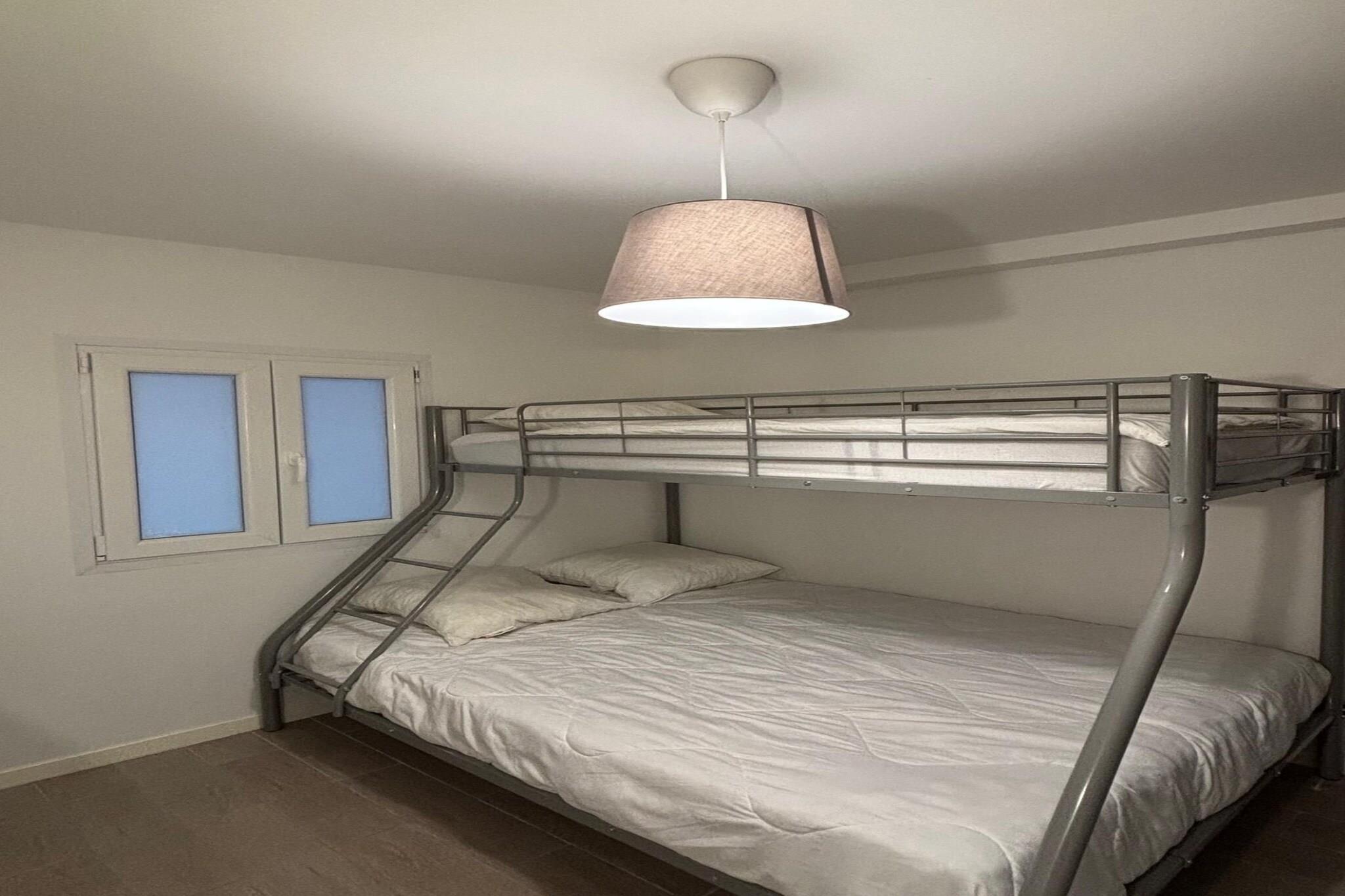 , Stue(dobbeltsovesofa, køjeseng, Fjernsyn(fladskærm), spisebord, sofahjørne), Køkken(brødrister, kaffemaskine, ovn, mikrobølgeovn, køle-fryseskab, ), soveværelse(3-etage-køjeseng), badeværelse(badekar, håndvask, toilet), Internetadgang, balkon