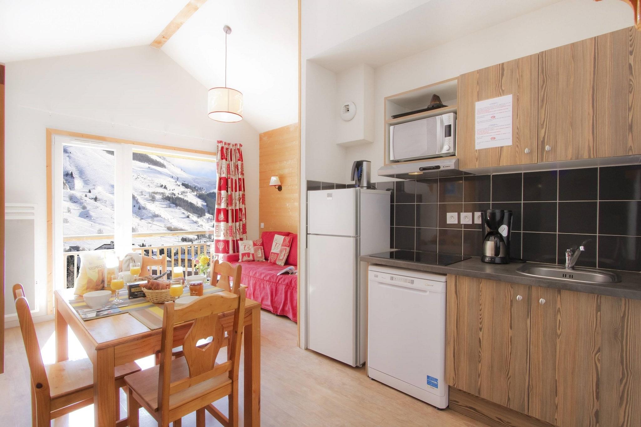 Hyggelig komfort i hjertet af Les Deux Alpes Beliggende kun få øjeblikke fra pisterne, tilbyder denne indbydende alpine bolig på 6 Rue des Vikings en række varme og funktionelle lejligheder - perfekt til par, familier og små grupper. Uanset om du vælger det hyggelige studie til 4 eller en rummelig enhed med 2 soveværelser til 6, har hver lejlighed et veludstyret tekøkken, en komfortabel opholdsstue med en sovesofa og et privat badeværelse. Gennemtænkt designet med træaccenter og hyggelige møbler, vil du føle dig hjemme efter en dag i sneen eller solen. Kæledyrsvenlig sjov i hver sæson Tag din lodne følgesvend med på turen! Les Deux Alpes byder på kæledyrsvenlige stier som den naturskønne Promenade de la Molière og rolige gåture langs søen omkring Lac de la Buissonnière. Om sommeren byder flere gondoler velkommen til hunde, så du og din hvalp kan toppe bjergene sammen. Efter dine alpine eventyr kan du slappe af på din altan eller gå en tur til landsbyens centrum - halelogrende godkendt! Gå til spisning, afterski og mere Træd udenfor og befind dig selv i feriestedets livlige hjerte med restauranter, caféer, bagerier og barer inden for gåafstand. Forkæl dig selv med lokale specialiteter fra Savoyard som fondue eller raclette, eller start din dag med friske kager fra boulangerie. Med pisterne i nærheden og det pulserende landsbyliv lige rundt om hjørnet, er denne charmerende lejlighedsbolig den perfekte base for alpine flugt året rundt.