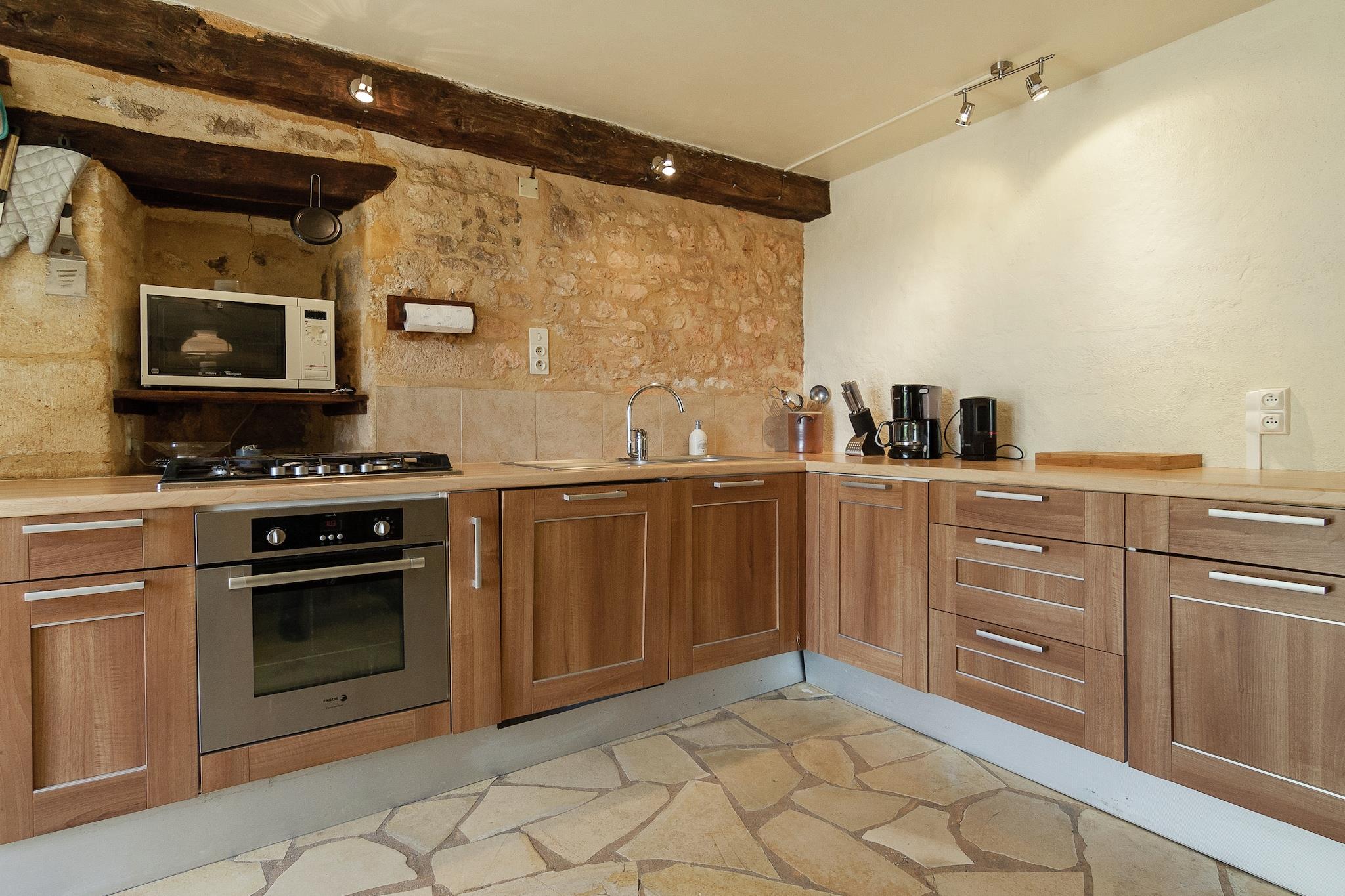 La Fermette er et charmerende og rummeligt landsted på La Borderie-ejendommen i Dordogne, ideelt for familier eller grupper, der søger fred, komfort og autentisk landlig charme. Med plads til 10 gæster omfatter ejendommen tre badeværelser og tre toiletter, hvilket sikrer masser af privatliv. Hovedhuset har plads til 8 personer i to dobbeltværelser og et stort soveværelse til fire, mens gæstehuset i haven, La Clapière, har plads til yderligere 2 personer med eget badeværelse. Gården har et stort køkken og spiseplads, der åbner ud til en privat have med en fantastisk udsigt over dalen. Ovenpå skaber en generøs stue på 70 m² med brændeovn, pejs og flygel en varm og indbydende atmosfære til aftener sammen. Gæsterne kan også nyde den fælles swimmingpool, den rummelige terrasse og ejendommens rolige omgivelser til vandreture og afslapning. Området ligger tæt på Les Eyzies-de-Tayac-Sireuil, "forhistorisk verdens hovedstad", og byder på forhistoriske huler, museer og den maleriske Vézère-dal. Den berømte Lascaux-grotte ligger kun en kort køretur væk, og udendørsaktiviteter som vandreture og kanosejlads findes i nærheden. Med imødekommende værter på stedet, familievenlige faciliteter og den ægte smag af livet på landet i Dordogne lover La Fermette en uforglemmelig fransk ferie.