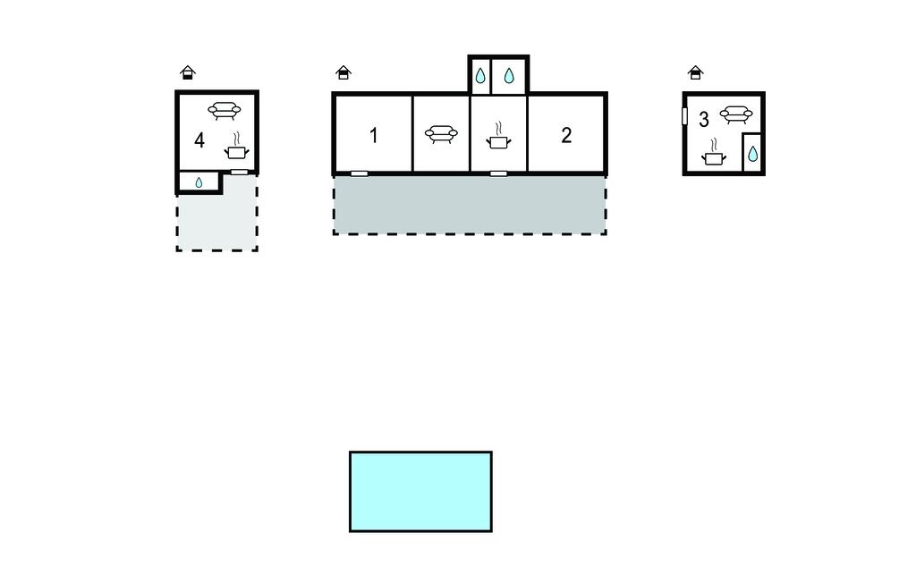 Badeværelse 3m2 (nr. 1) - WC. Varmt og koldt vand. Bruser
