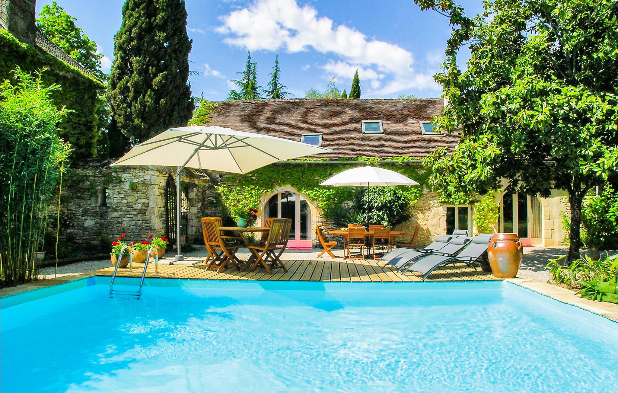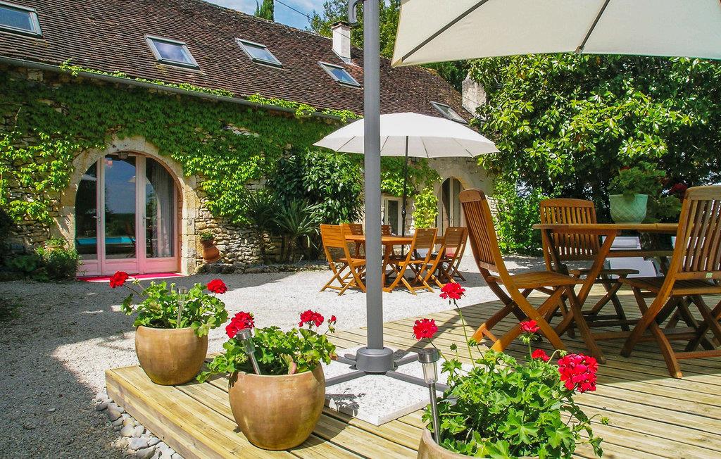 Dette skønne feriehus af sten har sin helt private pool og have og ligger på ejers vidtstrakte grund. Da den ligger højt, er der en skøn vid udsigt ud over den skovbeklædte dal helt til Montignac, som er kendt for hulerne i Lascaux, der uanset årstid er en betagende oplevelse. Huset er indbydende indrettet med en harmonisk blanding af det traditionelle stenhus og det moderne interiør med brug af glas og sten. I bor i hjertet af Périgord Noir ikke langt fra Sarlat med middelaldercharme og en dejligt ugemarked hvor I kan købe produkter og souvenirs fra Dordogne. Her er aktivitetsmuligheder for alt og alle: kano- og cykeludlejning, vandre, ride og et væld af gode restauranter langs Vézère, fx i Montignac eller i Saint-Léon-sur-Vézère, der er med på den officielle liste over Frankrigs skønneste byer. Besøg Les Eyzies-de-Tayac med Nationalmuseum og Font de Gaumehulerne, Château de Losse og det skønne Château de Hautefort. Et must i denne region er bestemt Roque Saint-Christophe, med sine lejligheder hugget ind i kalkstensklipper. Nyd også floden Dordogne og byerne La Roque-Gageac og Domme. Regionen er kendt for sine mange interessante borge og slotte, pittoreske stenhuse og de store majs- og solsikkemarker.
