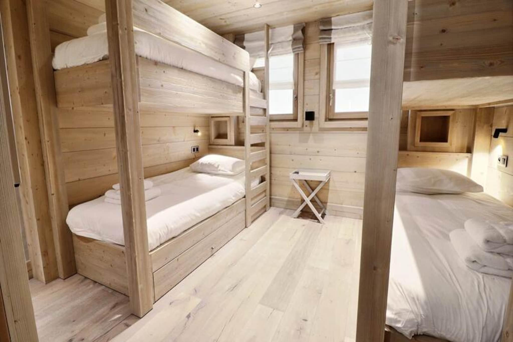 Beliggende i hjertet af Portes du Soleil, denne luksuriøse 5-stjernede hytte i Les Gets kan rumme op til 12 gæster. Hytten har fem soveværelser, herunder et hovedsoveværelse med påklædningsværelse og bad, to soveværelser med dobbeltsenge, et soveværelse med køjeseng og et værelse med enkelt- eller dobbeltsenge. Den rummelige opholdsstue har et åbent køkken, spiseplads og en stue med pejs, der giver adgang til en balkon og terrasse. Yderligere faciliteter omfatter tre udendørs parkeringspladser, et skirum med støvletørrer, et spillelokale, fitnessudstyr og en sauna. Les Gets tilbyder et stort udvalg af aktiviteter både vinter og sommer. Hytten er ideelt beliggende kun få skridt fra skilifterne og landsbyens centrum, med adgang til det ekspansive skiområde Portes du Soleil. Resortet tilbyder også en bred vifte af udendørs aktiviteter såsom vandreture, mountainbiking, golf og rafting. Les Gets er kendt for sit "Famille Plus"-mærke, der sikrer børnevenlige tjenester og attraktioner for familier. Hytten er fuldt udstyret til komfort, med fiberoptik og moderne køkkenmaskiner. Gæsterne kan også nyde concierge-tjenester såsom levering af liftkort, lufthavnstransport, hjemmemassage og meget mere. Hytten tilbyder en perfekt balance mellem afslapning og eventyr, med slutrengøring og sengetøj inkluderet. Der kræves et depositum på EURO4.000 for at reservere.