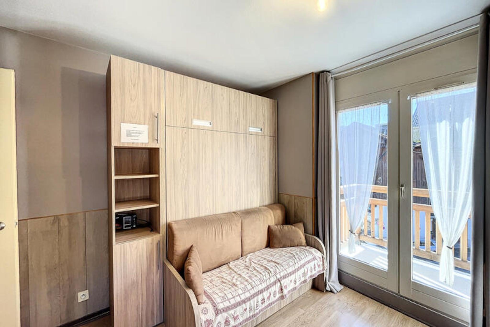 I det maleriske hjerte af Les Gets tilbyder denne dejlige 2-stjernede lejlighed det perfekte tilflugtssted for familier eller venner, der søger en mindeværdig alpeferie. Med sin hyggelige, men funktionelle planløsning på 27 m² kan dette charmerende sted komfortabelt rumme op til fem gæster og kombinerer moderne bekvemmeligheder med den varme atmosfære af en bjergferie. Uanset om du besøger lejligheden for de snedækkede pister eller de livlige sommerstier, placerer den dig i centrum af det hele. Træd indenfor og oplev et gennemtænkt interiør udstyret med alt, hvad du behøver for et behageligt ophold. Det fuldt udstyrede køkken inviterer dig til at tilberede solide måltider efter en dag med eventyr, med køleskab, mikrobølgeovn, ovn, opvaskemaskine og alle nødvendige redskaber. Slap af i opholdsstuen med to fjernsyn til din underholdning, eller gå ud på den solrige balkon for at nyde den friske alpeluft og slappe af, mens du nyder de rolige omgivelser. Udendørs parkering lige foran bygningen sikrer problemfri bekvemmelighed for dit køretøj. Beliggenheden er virkelig uovertruffen. Kun en kort gåtur væk finder du Chavannes-stoleliften, der giver hurtig adgang til pisterne, samt Carrefour Montagne-supermarkedet med alle dine fornødenheder. Byens indbydende restauranter er også inden for rækkevidde, så du kan nyde lækre lokale retter. Uanset om du står på ski om vinteren eller udforsker frodige bjergstier om sommeren, tilbyder Les Gets et væld af aktiviteter til enhver sæson. Denne lejlighed er din indgang til en uforglemmelig alpeferie. Book nu og oplev charmen, bekvemmeligheden og skønheden i Les Gets, hvor hvert øjeblik er fyldt med eventyr og afslapning.
