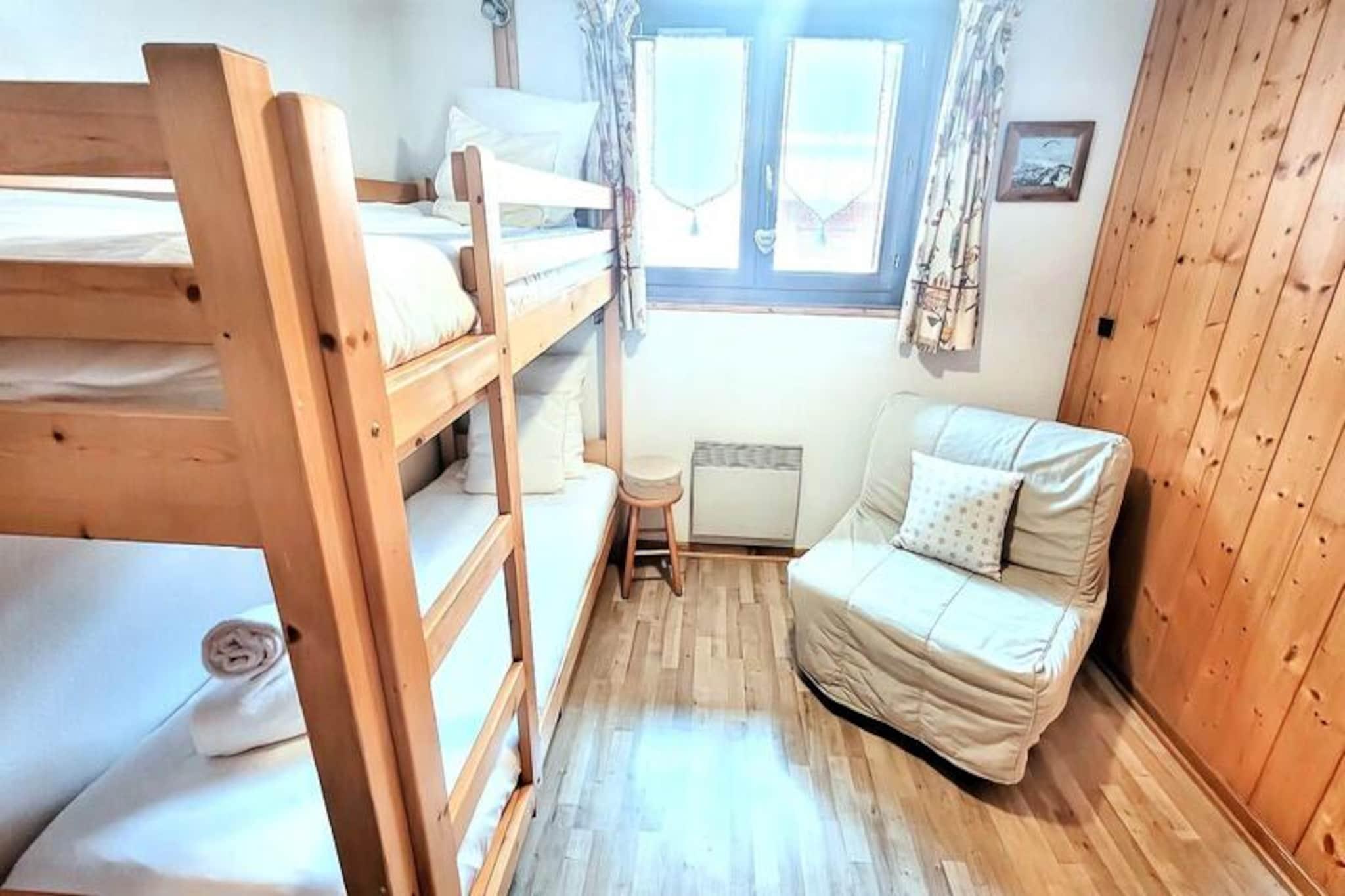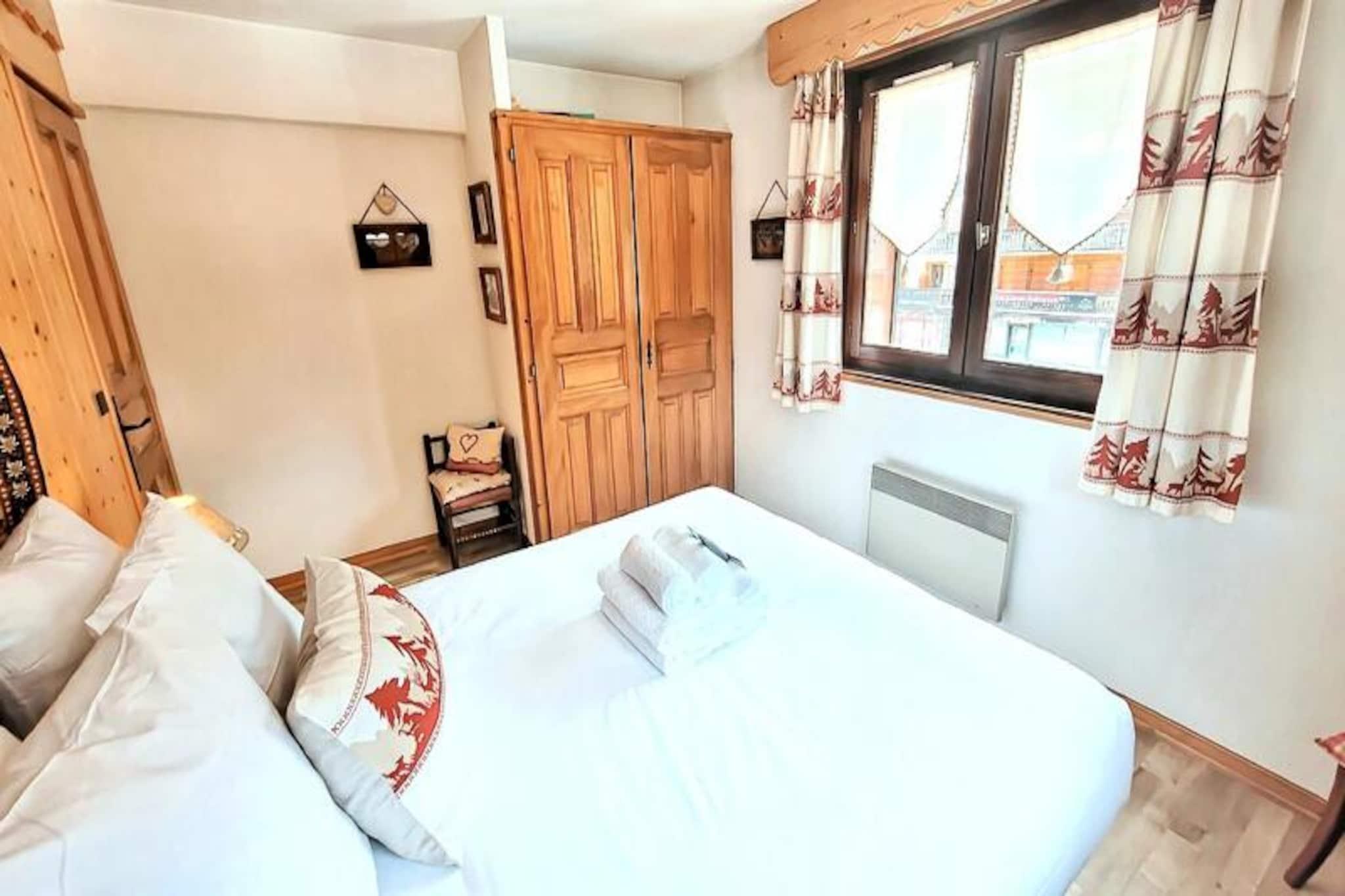 Midt i den pulserende charme i landsbyen Les Gets tilbyder denne dejlige lejlighed en unik blanding af bekvemmelighed og alpin charme. Beliggende på Rue du Centre, få skridt fra travle butikker, hyggelige caféer og den livlige afterski-scene. Når solen går ned, bliver den vestvendte balkon dit private tilflugtssted, hvor du kan nyde udsigten over de omkringliggende bjerge og landsbyens funklende lys. Uanset om du er her for et vinterski-eventyr eller en sommerferie, sikrer denne bolig, at du er i hjertet af det hele. \n\nLejligheden er på 54 m² og er omhyggeligt designet til op til fem gæster. Den lyse stue, komplet med franske døre, der fører ud til balkonen, indbyder til afslapning efter en dag på pisterne. Det åbne køkken er udstyret med alt, hvad du behøver, fra et raclette-sæt til en Nespresso-kaffemaskine, hvilket gør det nemt at nyde solide måltider eller en hurtig morgenmad, inden du tager afsted. To hyggelige soveværelser tilbyder afslappende rum, herunder et dobbeltværelse med rigelig opbevaringsplads og et andet værelse med køjesenge og en sovesofa. Moderne faciliteter som Wi-Fi, tv og opvaskemaskine sikrer et behageligt ophold. \n\nDenne lejlighed ligger kun 50 meter fra skiløjperne og shuttle-stoppestedet og 250 meter fra den berømte ESF-skiskole og er perfekt til både skientusiaster og familier. Om sommeren kan du udforske naturskønne stier eller nyde den livlige landsbyatmosfære. Natbarer i boligen bidrager til den pulserende energi, selvom der kan forventes lejlighedsvis støj. \n\nVælg denne lejlighed for dens uovertrufne beliggenhed, gennemtænkte faciliteter og muligheden for at fordybe dig i Les Gets dynamiske ånd. Uanset om du snor dig gennem frisk puddersne eller nyder lokale specialiteter, venter uforglemmelige minder i dette alpine paradis.