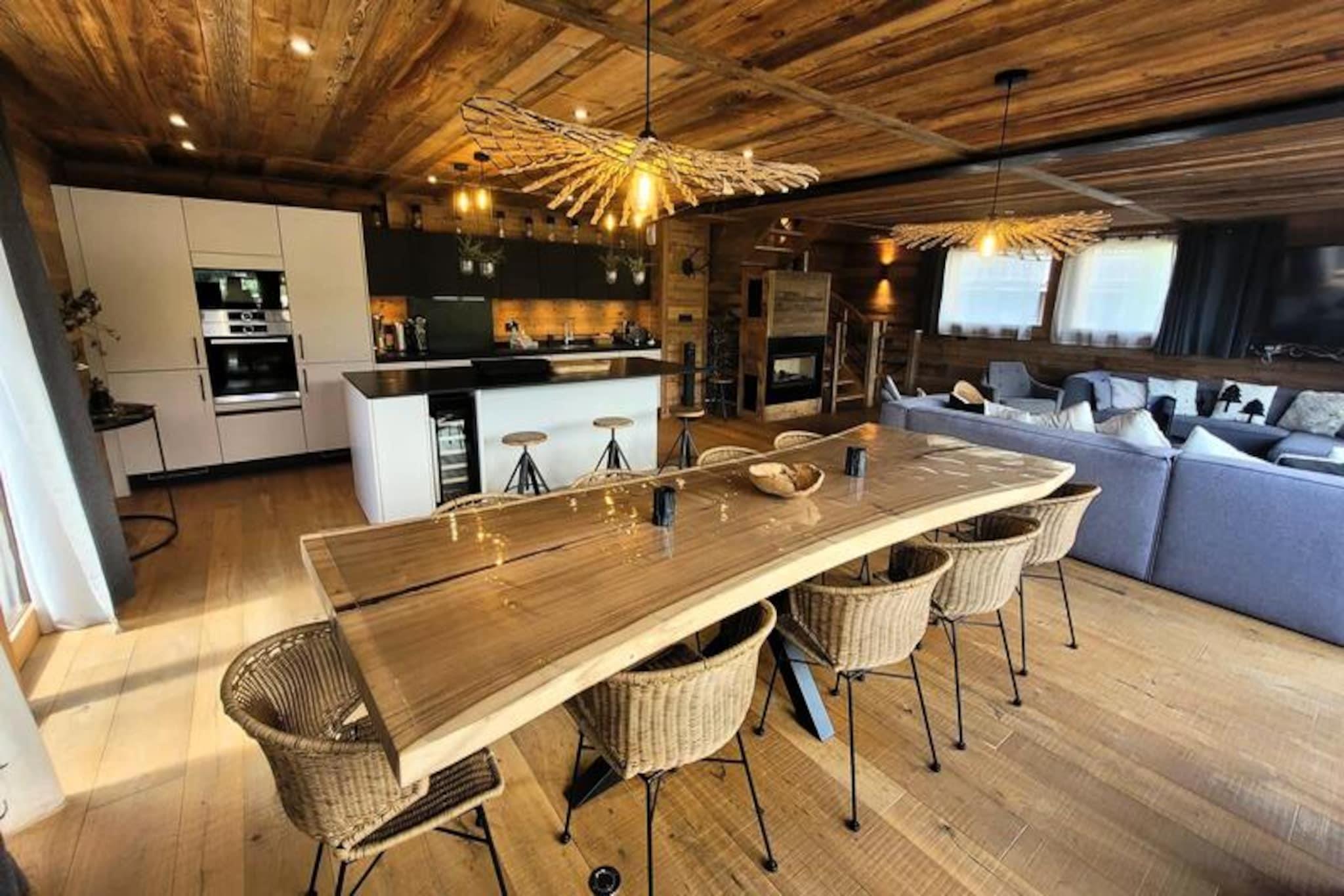 Beliggende på de fredfyldte bakker i Les Gets tilbyder denne luksuriøse 5-stjernede hytte et uovertruffent alpint tilflugtssted. Med en betagende panoramaudsigt over de omkringliggende pister og den charmerende landsby nedenfor kombinerer denne ejendom det bedste af traditionel savoyard-arkitektur med moderne elegance. Badet i naturligt lys udstråler hvert hjørne af denne hytte sofistikering og varme, hvilket gør den til det perfekte tilflugtssted for familier eller vennegrupper, der søger en mindeværdig bjergflugt. De fredelige omgivelser sikrer ro, mens nærheden til landsbyens centrum og skiløjperne holder dig forbundet med alt, hvad der sker. Hytten, der strækker sig over fire etager, har plads til 12 til 14 gæster i den yderste komfort. Første sal har tre smukt designede soveværelser, inklusive et køjesengsværelse, perfekt til børn, alle med eget badeværelse og adgang til en solbeskinnet terrasse. Anden sal kan prale af en stor opholdsstue med et fuldt udstyret køkken, der åbner ud til to sydvendte terrasser. Her finder du et udendørs spiseområde og en privat jacuzzi til at slappe af efter en dag på pisterne. Øverste etage rummer en fantastisk master-suite med katedralvinduer, der tilbyder en storslået udsigt, mens den nederste etage indeholder et hyggeligt soveværelse i hytten, en sauna med bruser og et vaskerum. Udstyret med eksklusive faciliteter såsom en gaspejs, gulvvarme, smart-tv'er og en vinkælder, sikrer denne hytte en problemfri blanding af luksus og praktisk anvendelighed. Gæsterne kan også nyde bekvemmeligheden af ??to indendørs garager, et skirum og en elevator. Yderligere tjenester som slutrengøring, sengelinned og badekåber er inkluderet, hvilket gør dit ophold ubesværet og forkælende. Beliggende kun 450 meter fra landsbyens centrum og 650 meter fra skiløjperne, tilbyder denne hytte den perfekte balance mellem afsondrethed og tilgængelighed. Uanset om du står på ski om vinteren, vandrer om sommeren eller blot slapper af i jacuzzi med udsigt, lover denne ejendom en uforglemmelig alpin oplevelse.