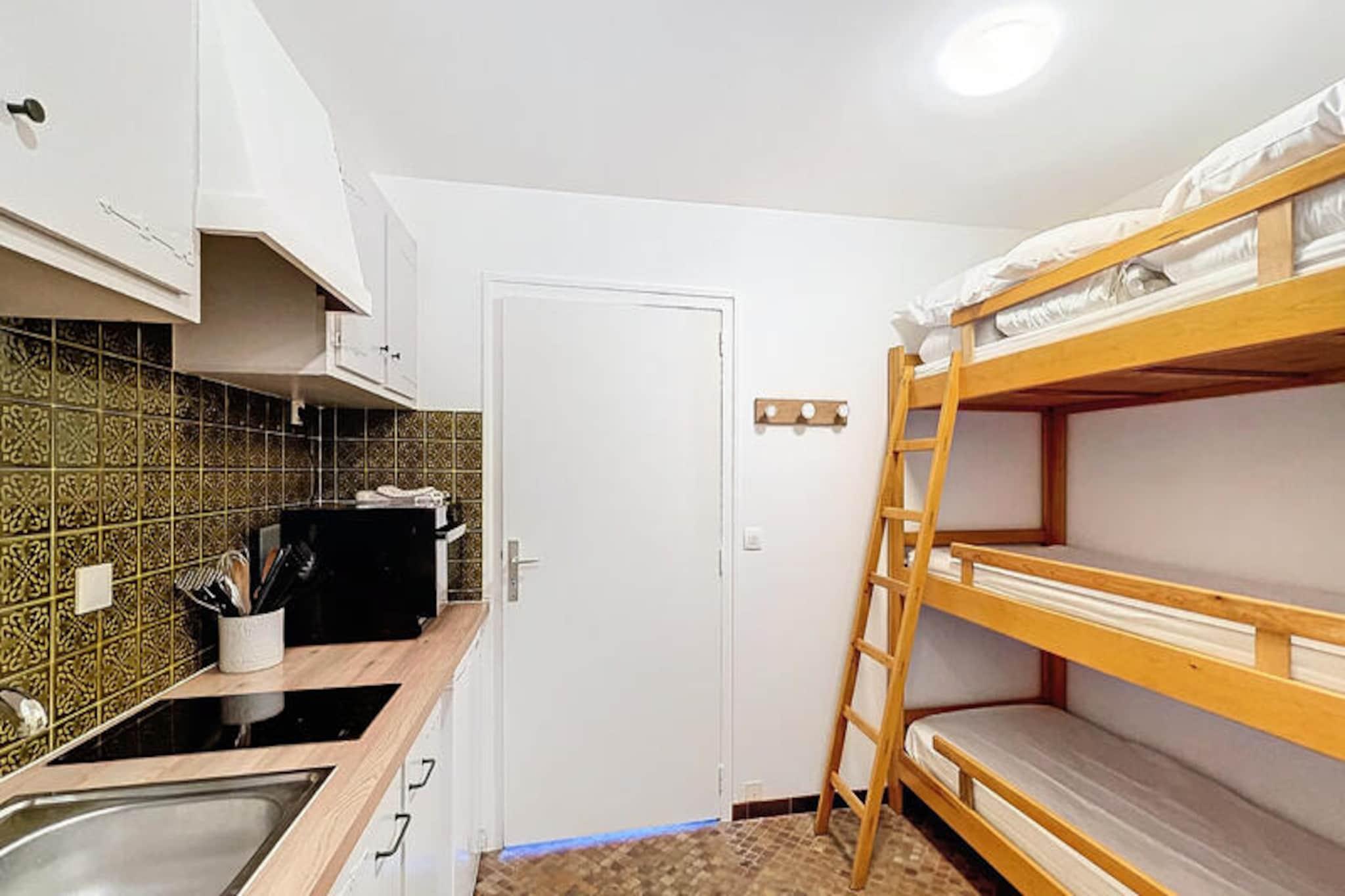 I den maleriske alpelandsby Les Gets tilbyder dette charmerende studie et hyggeligt tilflugtssted for op til fem gæster. Med en perfekt blanding af komfort og bekvemmelighed er det et ideelt valg for familier eller venner, der søger en mindeværdig bjergferie. Studiet er omgivet af betagende landskaber og inviterer dig til at opleve de franske alpers fredfyldte skønhed i enhver sæson. Lejligheden er omhyggeligt designet til at maksimere plads og komfort. Den har et fuldt udstyret køkken med moderne apparater, herunder køleskab, kaffemaskine og mikrobølgeovn, hvilket gør madlavning til en leg. Opholdsstuen er møbleret med en dobbelt sovesofa og tre enkeltsenge, hvilket giver fleksible sovepladser til op til fem gæster. Gå ud på balkonen for at nyde en fantastisk udsigt over de omkringliggende bjerge, et perfekt sted at starte dagen med en kop kaffe eller slappe af efter en dag med eventyr. Beliggende kun en kort gåtur fra hjertet af Les Gets har du nem adgang til en række butikker, restauranter og lokale faciliteter. Om vinteren er skilifterne bekvemt tæt på og tilbyder problemfri adgang til det berømte skiområde Portes du Soleil. I sommermånederne forvandles regionen til et paradis for vandrere, cyklister og naturelskere med stier og aktiviteter, der passer til alle aldre og interesser. Uanset om du er her for at sno dig gennem uberørte skråninger, udforske alpine stier eller blot slappe af og nyde bjergluften, er dette studie den perfekte base for en uforglemmelig ferie i Les Gets.