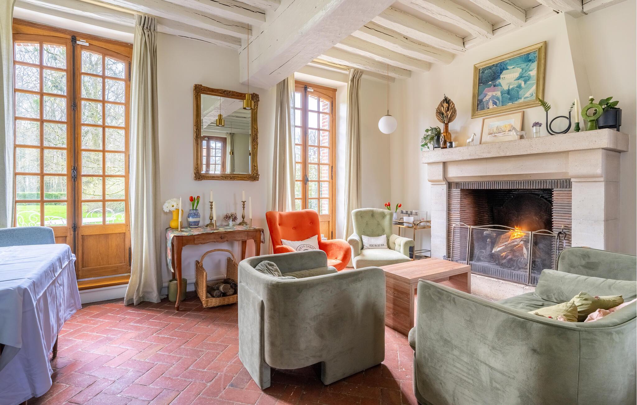 En god times kørsel nord for Paris finder I dette overdådige slotslignende hus, der danner rammen om en magisk ferie med den udvidede familie eller en større venneflok. Huset ligger i mageløse omgivelser, og indvendigt emmer det af autenticitet, charme og komfort over tre etager. Behagelige farveskalaer og et vellykket samspil mellem det rustikke og det moderne giver jer alt, I behøver, for at kunne slappe af og sætte masser af tid af til hinanden. Gør madlavningen til et ambitiøst fællesprojekt i det rummelige køkken og dæk op ved spisebordet, hvor der er plads til hele flokken. Tænd op i pejsen på de køligere dage og rund aftenerne af med brætspil, kortspil eller en hyggelig filmaften i de gode sofaer, inden I går til køjs i de komfortable soveværelser.