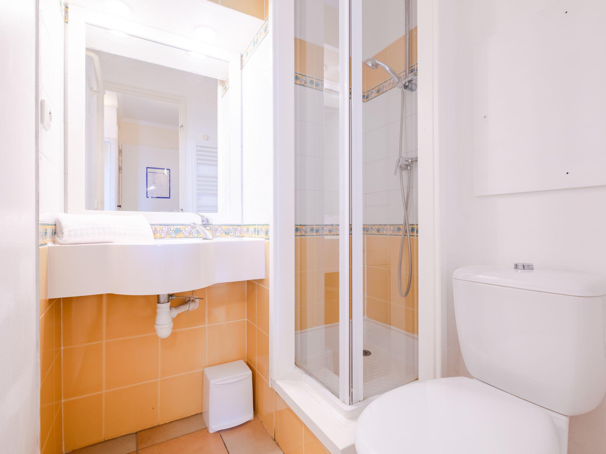 3-room apartment 45 m2 on 3rd floor. Entrance hall with air conditioning. Living/dining room with 1 double sofabed (1 x 140 cm, length 190 cm), TV (flat screen). Exit to the balcony. 1 room with 1 french bed (1 x 140 cm, length 190 cm). 1 small children's room with 1 x 1 bunk beds (80 cm, length 190 cm). Kitchenette (dishwasher, 4 ceramic glass hob hotplates, toaster, kettle, microwave, electric coffee machine). Bathroom, shower/WC. Electric heating. Terrace 8 m2, south facing position. Very beautiful view of the sea. Facilities: washing machine. Internet (WiFi, extra). Parking space n 392. Please note: non-smokers only. Maximum 1 small pet/ dog allowed. Smoke alarm, no lift. 83107000392NB