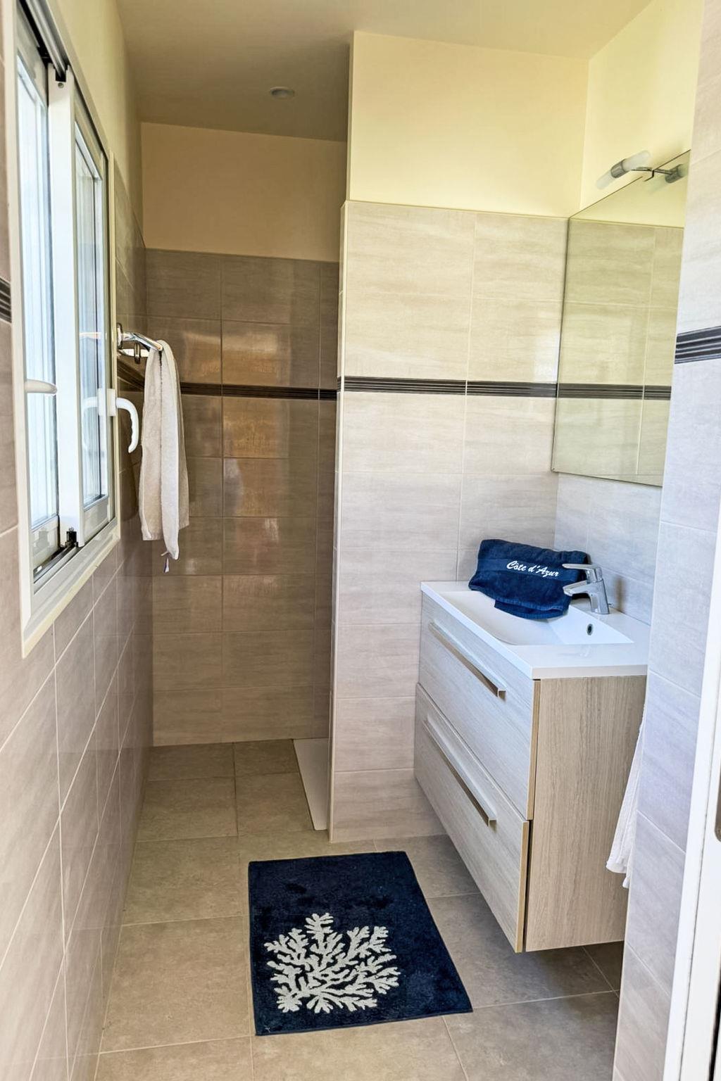 1-room house 33 m2, on the upper floor. Living/sleeping room with 1 french bed (1 x 140 cm, length 200 cm). Exit to the terrace. Open kitchen (2 ceramic glass hob hotplates, toaster, kettle, freezer, electric coffee machine, combination microwave) with dining table, TV (flat screen), air conditioning. Exit to the terrace. Shower, sep. WC. Electric heating. Large terrace 35 m2, south facing position and, east facing position, large garden. Terrace furniture, deck chairs (2). Very beautiful view of the sea. Facilities: iron, hair dryer. Internet (WiFi, free). Parking (1 car). Please note: maximum 1 pet/ dog allowed. TV only FR. Smoke alarm. Offer by a private individual according to Art. 155, IV of CGI. 831070027761J