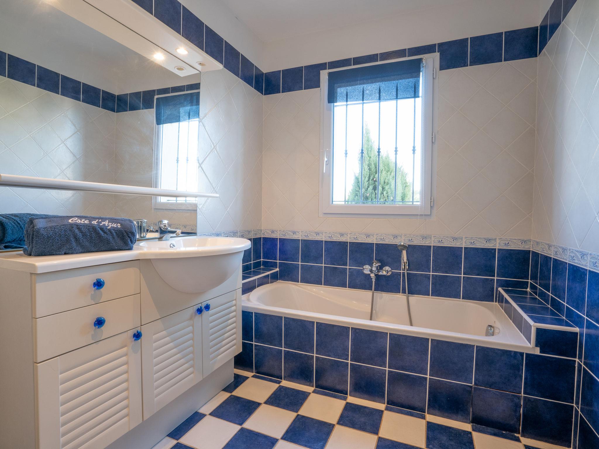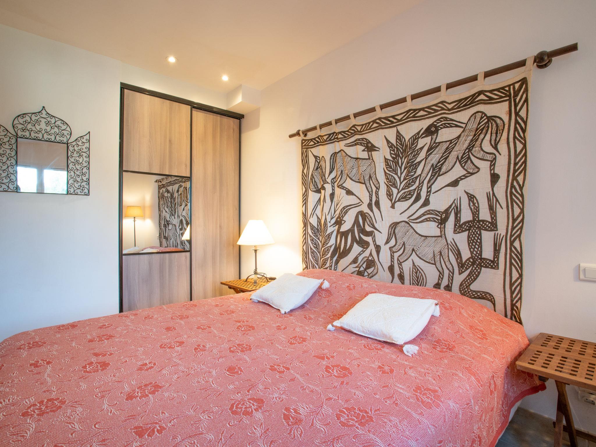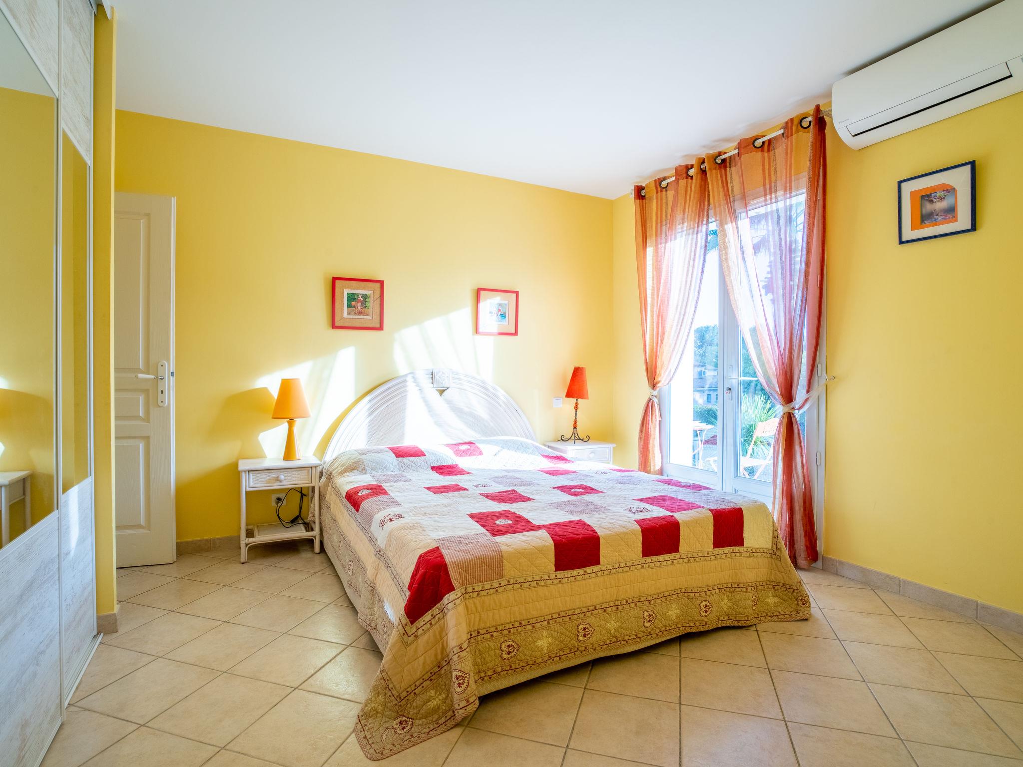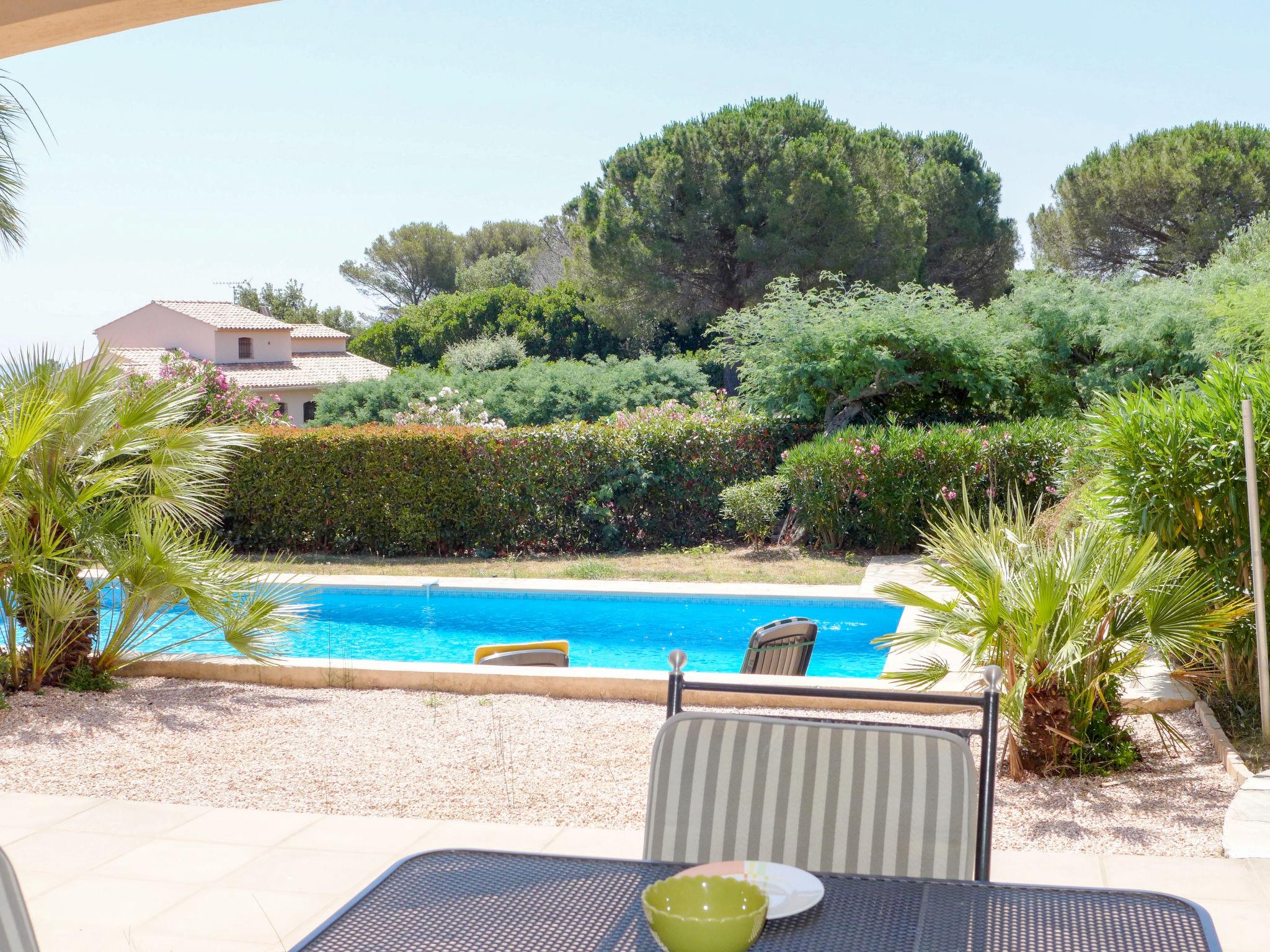 4-room house 200 m2 on 3 levels, south-east facing position. Comfortable and beautiful furnishings: open lounge with TV (flat screen), DVD. Exit to the garden, to the swimming pool. 2 rooms, each room with 1 french bed (160 cm, length 200 cm), air conditioning and fan. Exit to the garden. Open kitchen (1 hot plate, oven, dishwasher, 3 gas rings, toaster, kettle, microwave, freezer, electric coffee machine) with dining table. Exit to the terrace. Bathroom, sep. WC. On the lower ground floor: 1 room with 1 french bed (1 x 160 cm, length 200 cm). Shower, sep. WC. Electric heating. Upper floor: sep. WC. Terrace roofed, south-west facing position. Deck chairs (6). Partial view of the sea. Facilities: washing machine, iron, baby cot for up to 2 year olds, hair dryer. Internet (WiFi, free). Please note: smoke alarm. Only the toilets are accessible on the upper floor. 83107000369PC