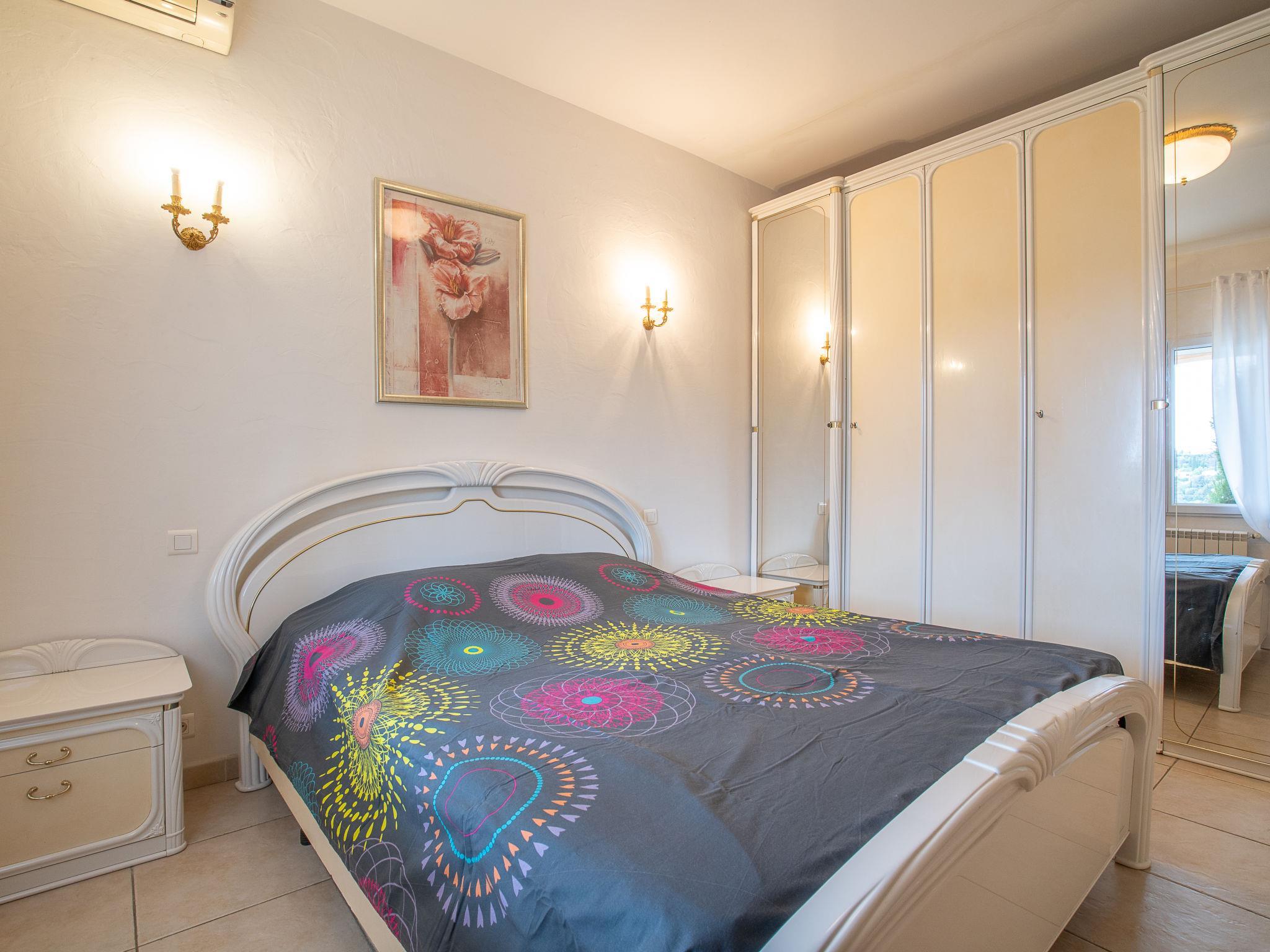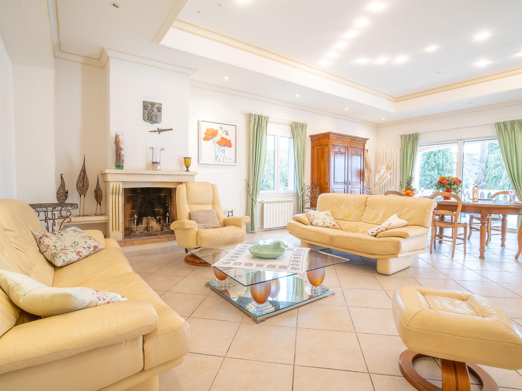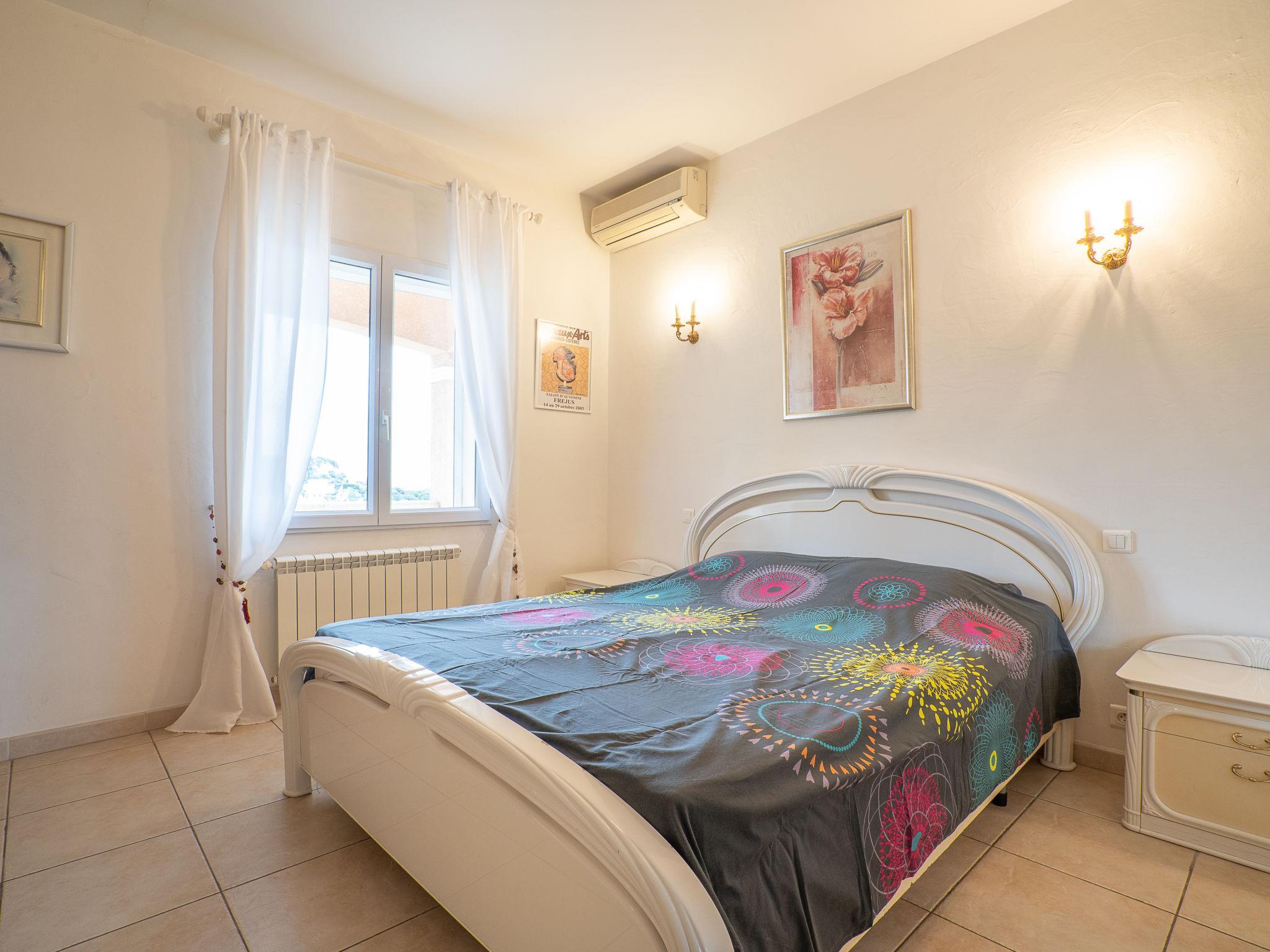 "La Pinède", 5-room house 230 m2. Bright, comfortable furnishings: living/dining room 80 m2 with open-hearth fireplace (only for decoration), dining table, satellite TV, flat screen, DVD and electric shutters. Exit to the terrace. 1 room with 1 french bed (160 cm, length 200 cm), bath/WC, digital TV, flat screen and air conditioning. 1 room with 1 french bed (140 cm, length 190 cm), 1 folding bed (80 cm, length 190 cm). Exit to the terrace. 1 room with 1 french bed (1 x 160 cm, length 200 cm). 1 room with 1 french bed (140 cm, length 190 cm). Kitchen (oven, dishwasher, 5 ceramic glass hob hotplates, microwave, freezer, electric coffee machine). Exit to the terrace. Shower, 2 sep. WC's, double hand-basin. Oil heating. Terrace 110 m2 partly roofed. Terrace furniture, deck chairs. Beautiful view of the sea. Facilities: washing machine, iron, children's high chair, baby cot. Internet (WiFi, free). Please note: non-smoking house. Smoke alarm. 831070010321D