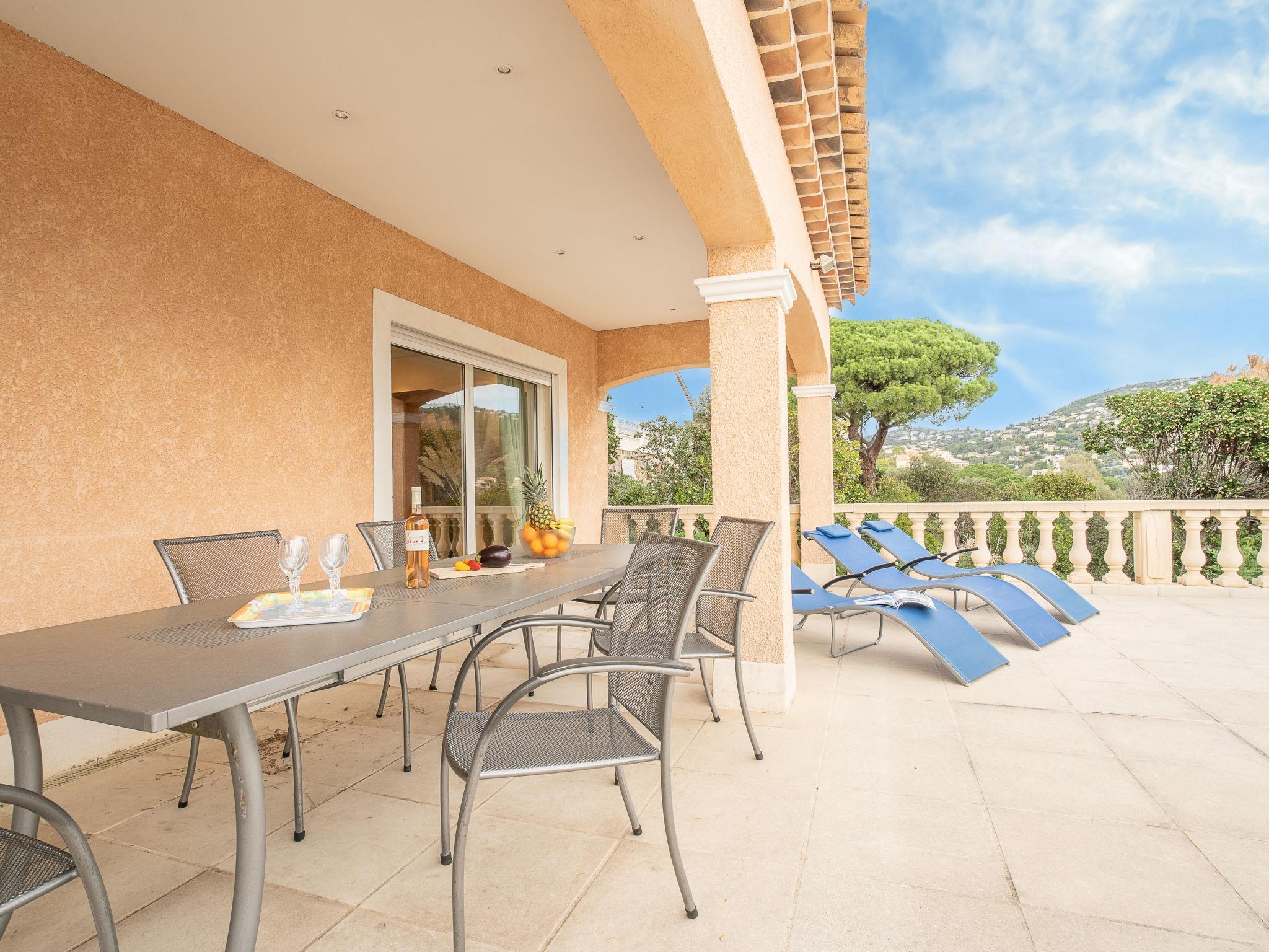 Property and pool maintenance by the management couple who live under the terrace on the ground floor. There are 2 cats living on the property. Large house "La Pinède". 500 m from the centre of Les Issambres, 8 km from the centre of Sainte Maxime, 8 km from the centre of Saint Tropez, in the residential district, 500 m from the sea, 500 m from the beach. For shared use: property 900 m2. Private: property 1'000 m2, well-kept garden with lawn, swimming pool (11 x 5 m, depth 100 - 190 cm, seasonal availability: 01.Apr. - 31.Oct.) with alarm system. Boules, parking on the premises. Carport. Shop, bus stop, sandy beach 500 m. Owner lives in separate semi-detached house.