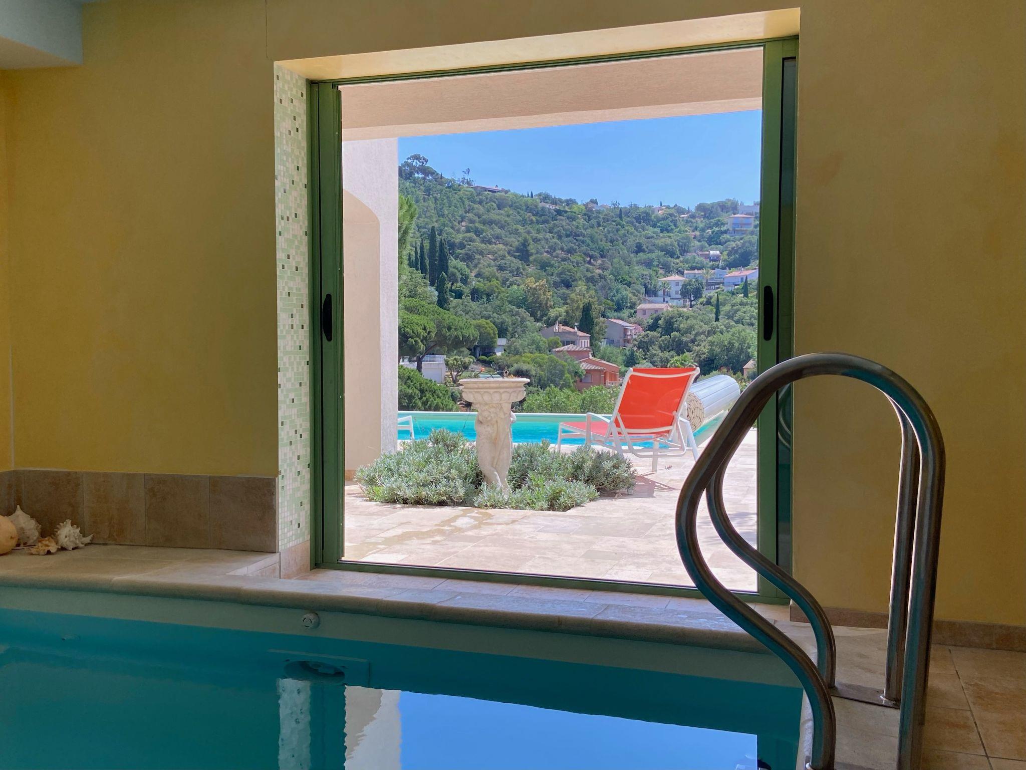 Luxury villa with sea view only 500m! v/h sandy beach. Quiet location. Heated outdoor pool and fully air-conditioned. The villa is located in a closed domaine, in a green and quiet part of the Côte d'Azur (without high-rise buildings), close to St-Tropez, Cannes and Nice. The swimming pools (indoor and outdoor) and the short walking distance (500 m) to both the sandy beach and the coastal resort of San Peire (Les Issambres), give you the great advantage of being able to enjoy the peace and quiet without having to use the car every day.