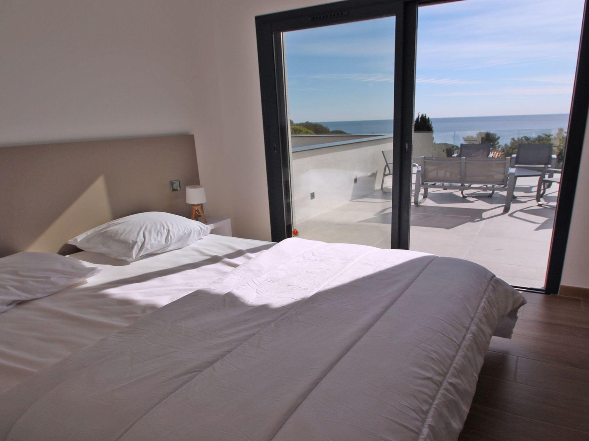 - Bedroom 1 - Sea view: master suite with 160cm double bed, wall-mounted television, dressing room, access to terrace 1 and swimming pool, shower room with WC