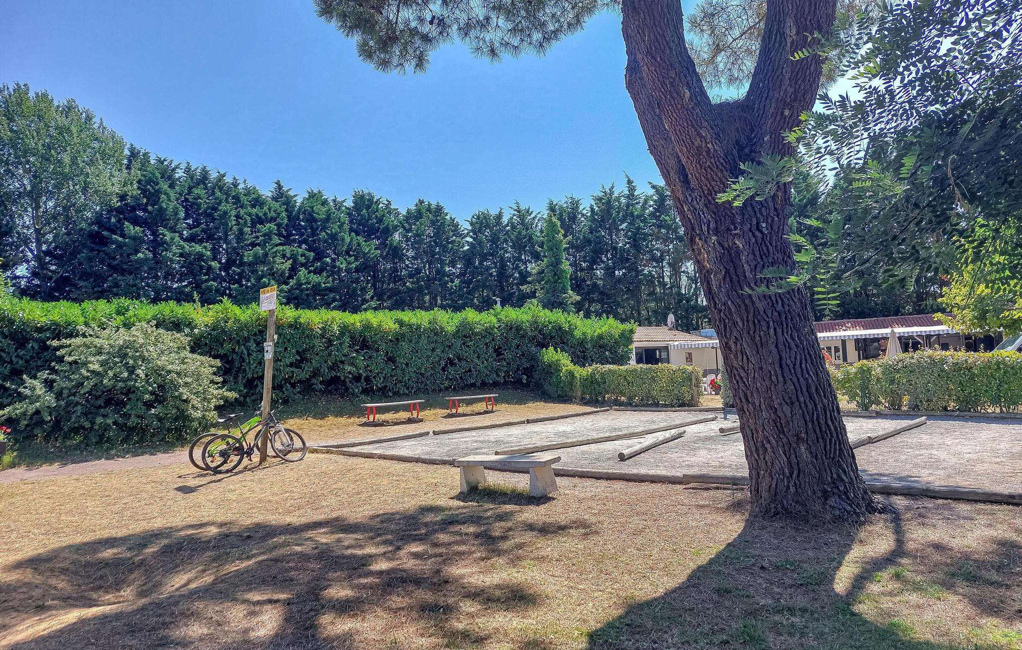 Jeres feriebolig i Les Mathes ligger på en campingplads i et stort skovområde og tilbyder en rolig, grøn atmosfære. Start dagen med en gåtur gennem campingpladsens skyggefulde stier, og forfrisk jer derefter i poolen med vandrutschebane. Lad jeres børn lege på legepladsen, mens I spiller en omgang boule på boulebane. Lej en cykel og udforsk de maleriske omgivelser på to hjul.