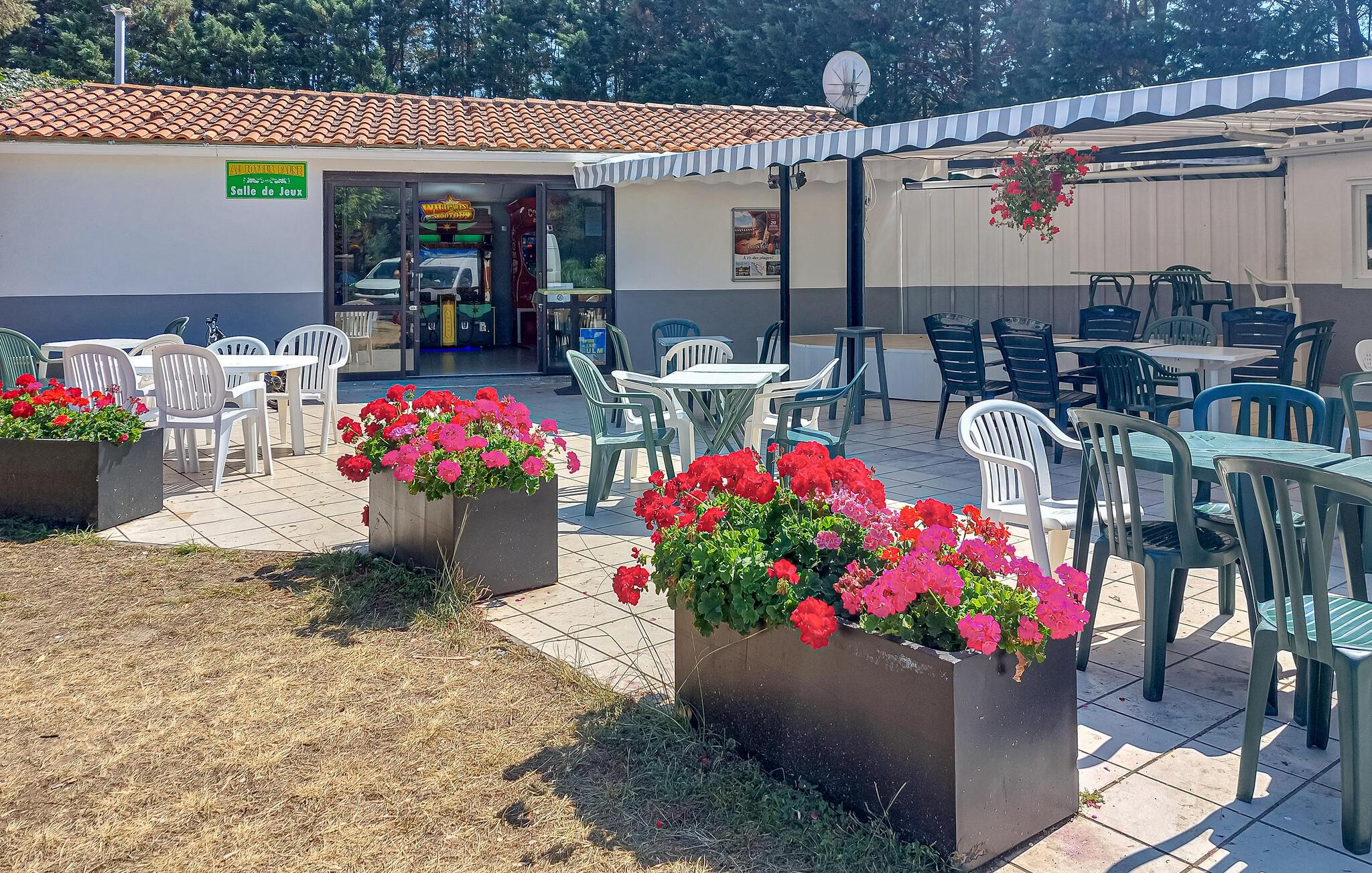 Nyd de mange aktiviteter, der finder sted hele dagen. Dans til de aftenlige fester, syng med på karaoke eller lad jer underholde af de forskellige shows. Bingo-aftener giver også masser af sjov og spænding. For jeres velbefindende er der en hyggelig snack-bar, og den lille købmand gør det nemt at få madvarer og drikkevarer direkte på stedet. Udnyt den tætte beliggenhed til attraktioner som øen Oleron, den berømte Zoo de La Palmyre eller byen Royan til dejlige udflugter. Udforsk også området i bil, og opdag La Rochelle og den charmerende Ile de Ré.