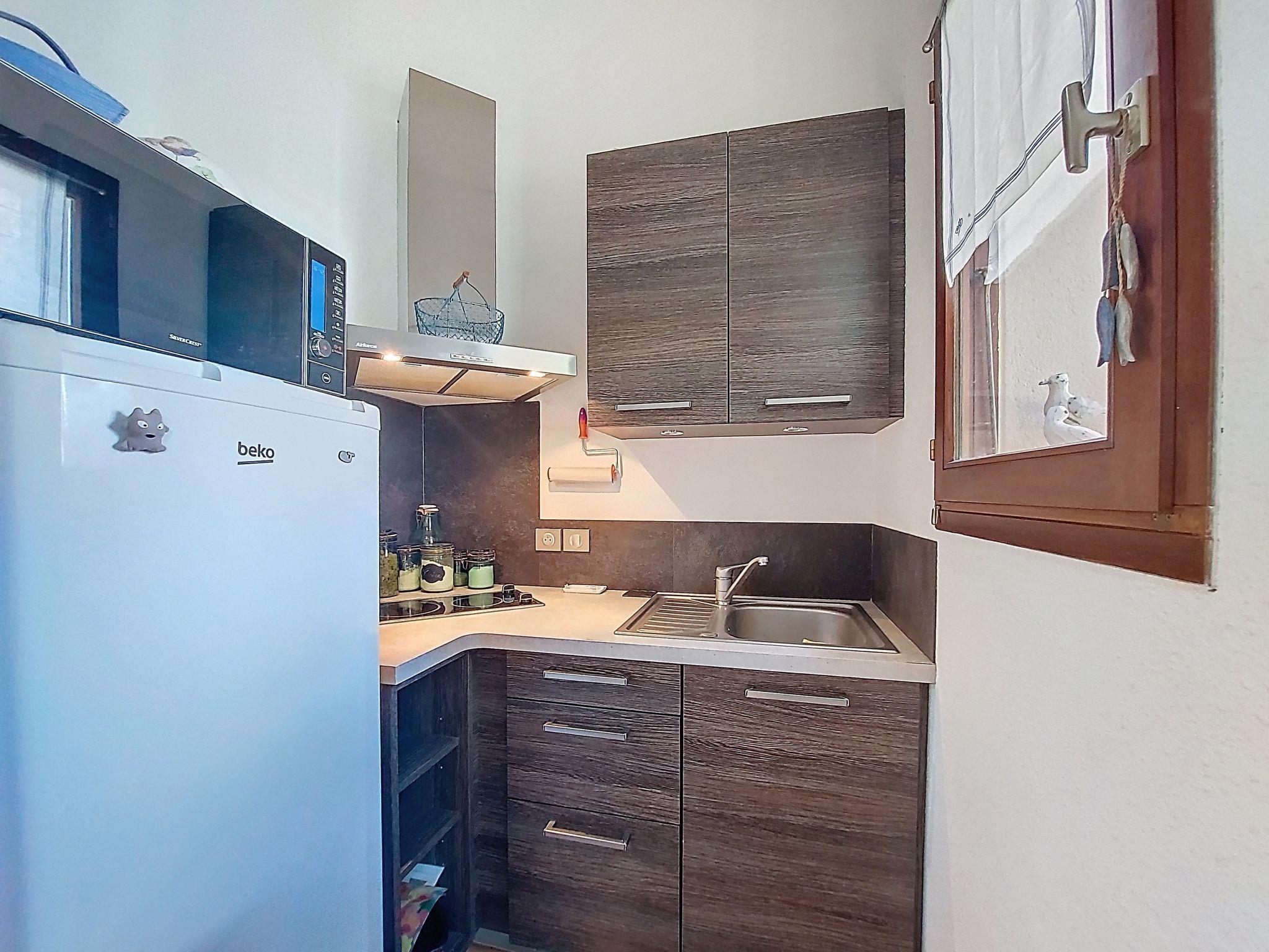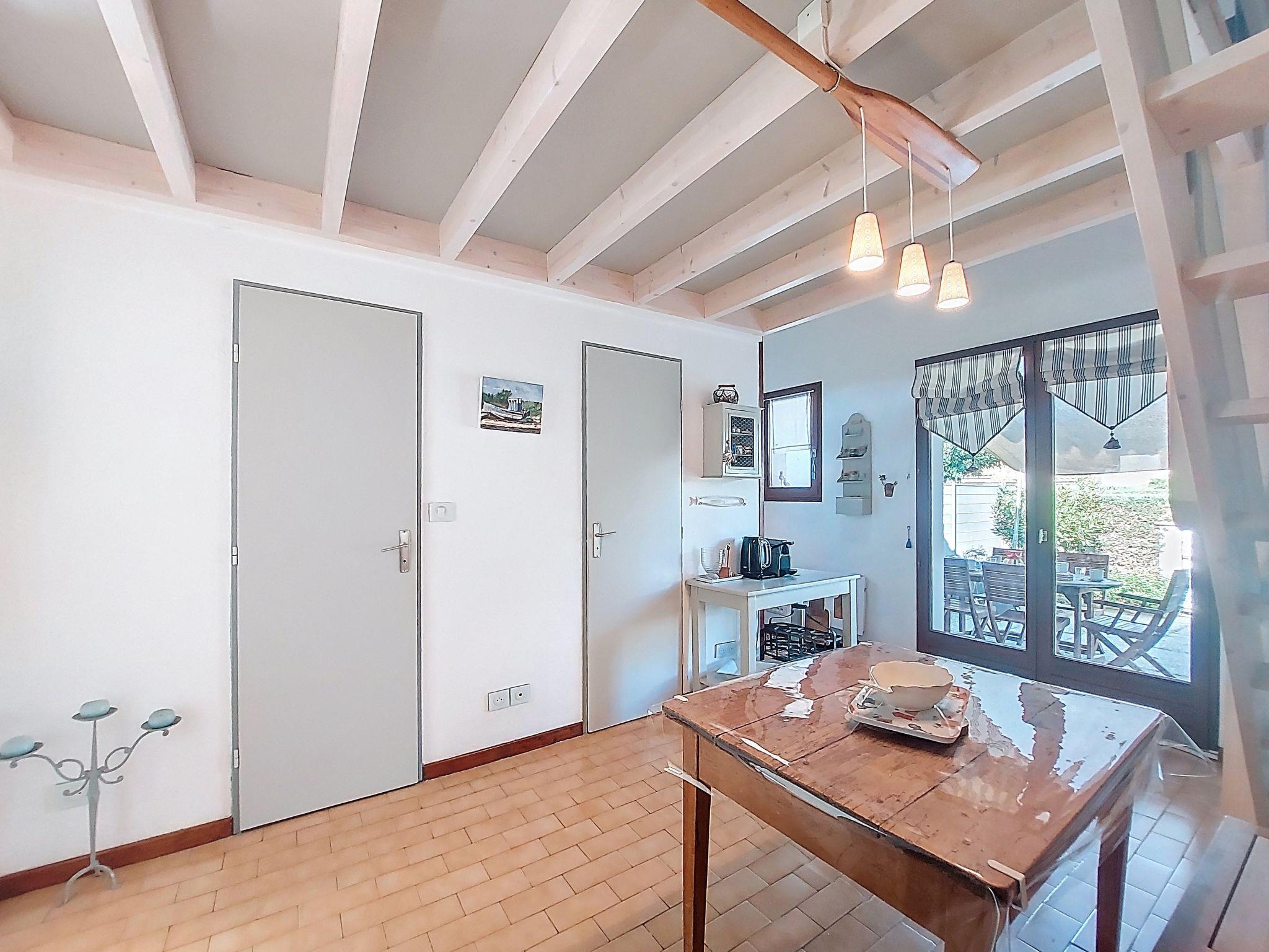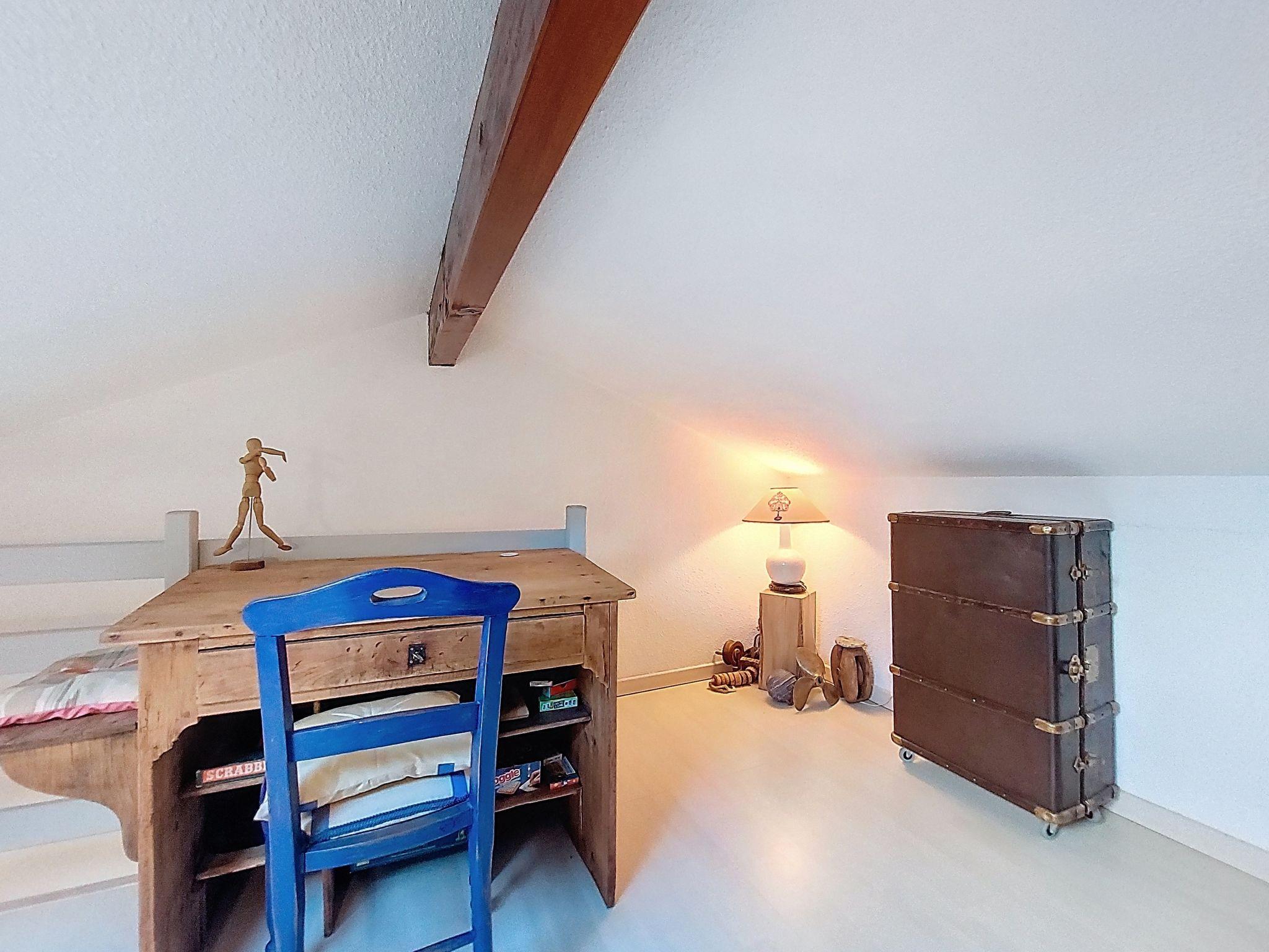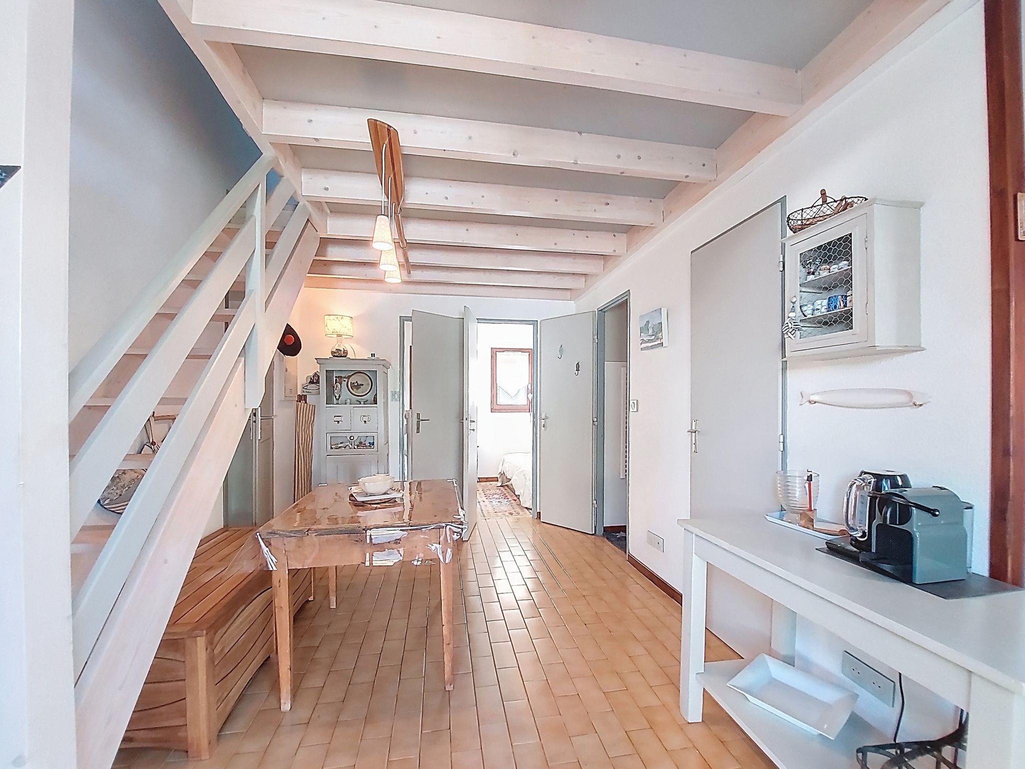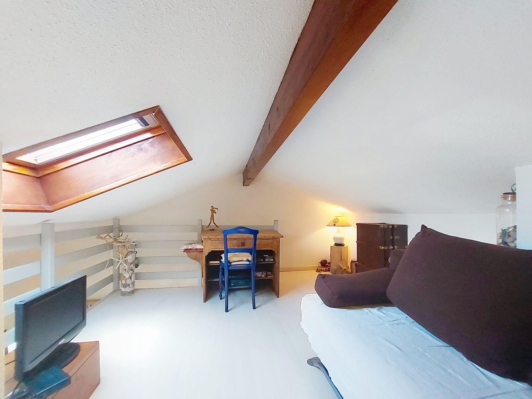 4-room terraced house 59 m2 on 2 levels. Living/dining room. Exit to the terrace. 1 room with 1 french bed (1 x 140 cm, length 190 cm). 1 small children's room with 1 x 2 bunk beds (90 cm, length 190 cm). Walk-through room, without window with 1 double sofabed (1 x 140 cm, length 190 cm). Kitchenette (2 ceramic glass hob hotplates, toaster, kettle, microwave, electric coffee machine). Bathroom, sep. WC. Electric heating. Upper floor: gallery with sloping ceilings with TV (flat screen). Terrace 15 m2, patio 50 m2. Terrace furniture, barbecue. Facilities: Internet (WiFi, extra). Parking space n 17. Please note: non-smokers only. 1 small pet/ dog allowed. Smoke alarm. Offer by a private individual according to Art. 155, IV of CGI.