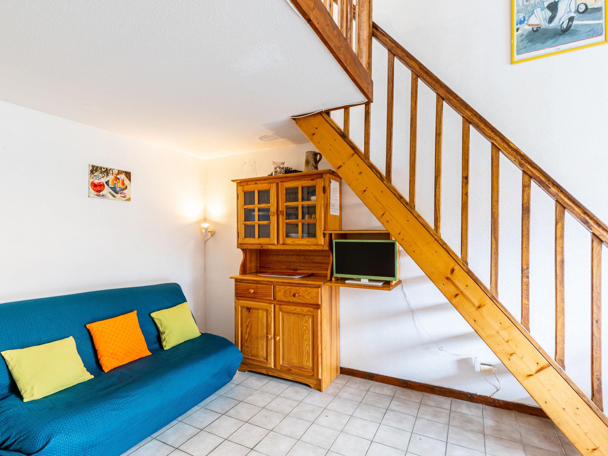 2-room terraced house 25 m2 on 2 levels. Living/dining room with TV. Exit to the terrace. 1 room with 1 french bed (1 x 140 cm, length 190 cm). Kitchenette (3 hot plates, mini-oven). Bath/WC. Electric heating. Upper floor: gallery with sloping ceilings, ceiling height 110 - 240 cm with 2 beds (90 cm, length 190 cm). Terrace 8 m2, east facing position. Terrace furniture. Facilities: Internet (WiFi, extra). Please note: maximum 1 pet/ dog allowed. Smoke alarm. Instead of an enclosed bedroom, some sleeping areas are located in an open-plan area (gallery, alcove, etc.).