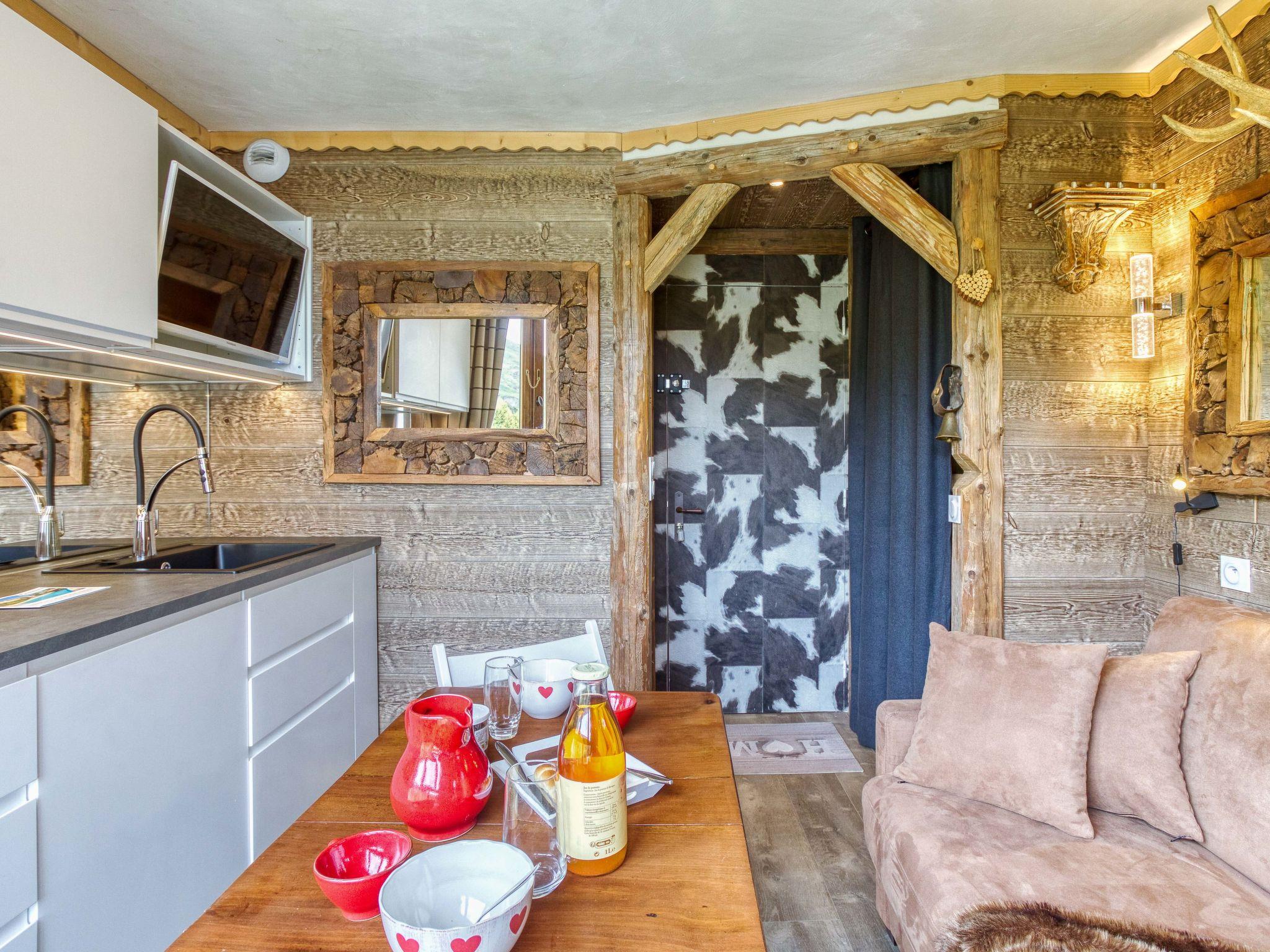 "Belleville Caron 1 - 1419", 1-room apartment 14 m2 on 14th floor. Renovated, very beautiful and wooden furniture furnishings: living/dining room with 1 double sofabed (140 cm, length 190 cm), TV (flat screen). Kitchenette (2 induction hot plates, toaster, kettle, microwave, electric coffee machine, Capsules for coffee machine (Nespressso) extra, raclette grill). Shower/WC. Heating. Beautiful view of the valley. Facilities: Internet (WiFi, extra). Please note: non-smokers only. Smoke alarm. 73257004903DP