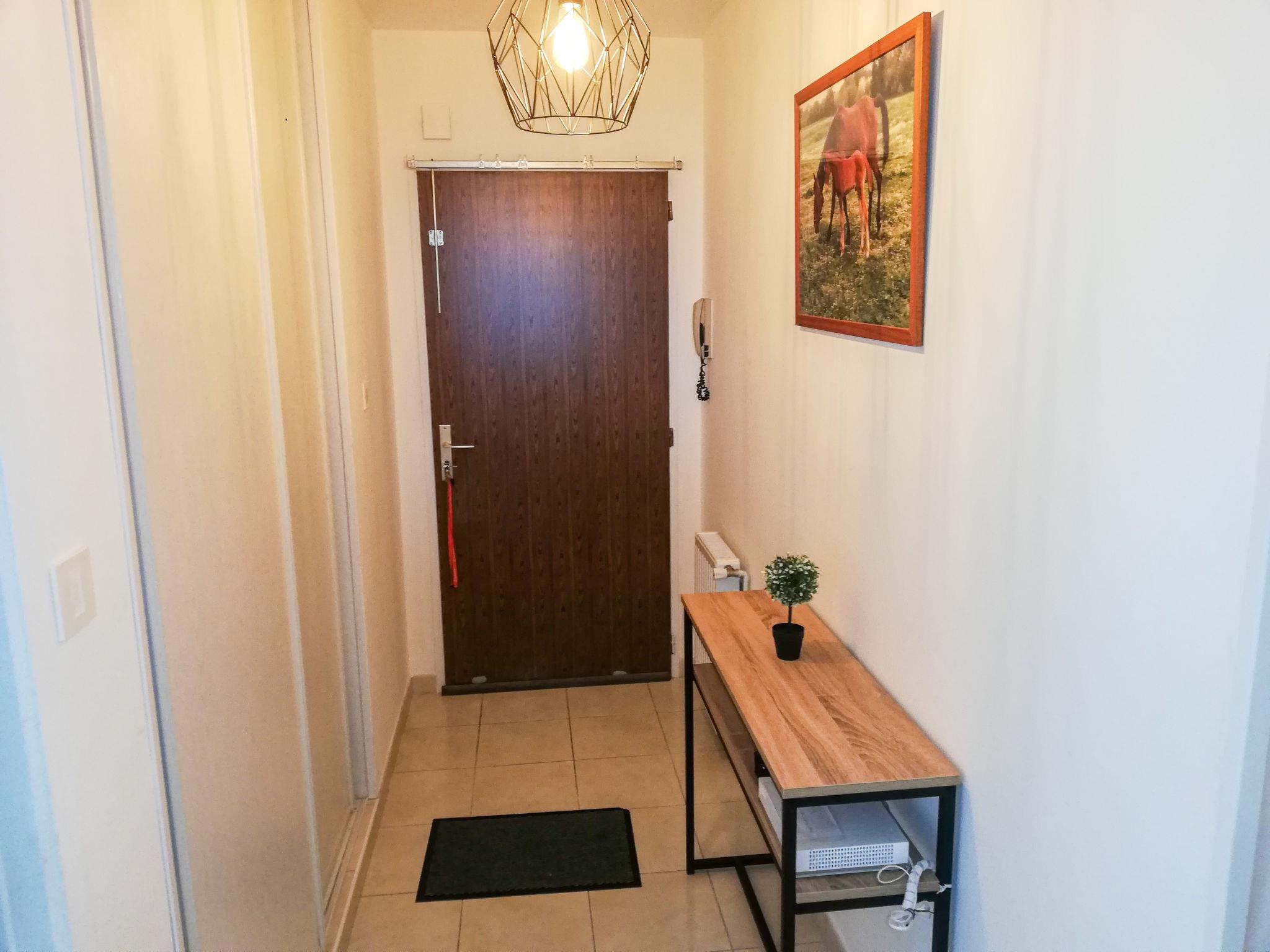 "L'Hippocampe T2", 2-room apartment 40 m2 on 1st floor. Practical and beautiful furnishings: entrance hall. Living room with 1 sofabed (130 cm, length 190 cm), dining nook and TV (flat screen). Exit to the balcony. 1 room with 1 double bed (160 cm, length 200 cm). Exit to the balcony. Open kitchen (oven, dishwasher, 4 gas rings, toaster, kettle, microwave, electric coffee machine, Capsules for coffee machine (Dolce Gusto) extra). Shower, sep. WC. Gas heating. Facilities: iron, children's high chair, baby cot. Internet (WiFi, free). Please note: non-smokers only. Smoke alarm. 8519400042846