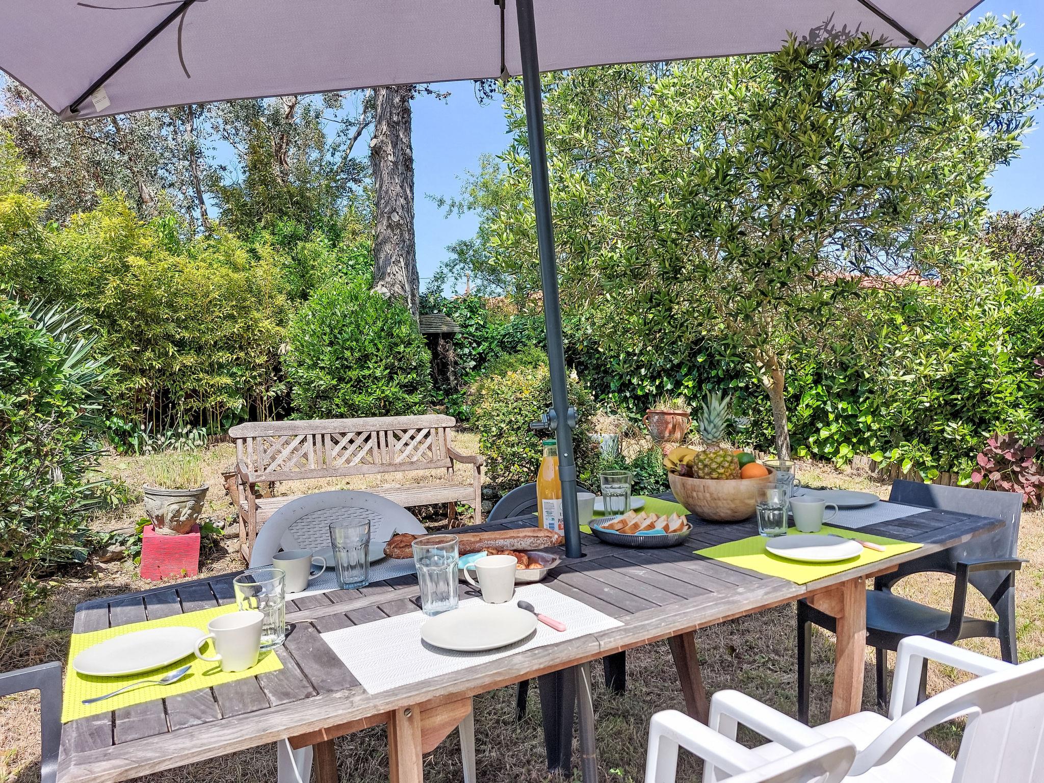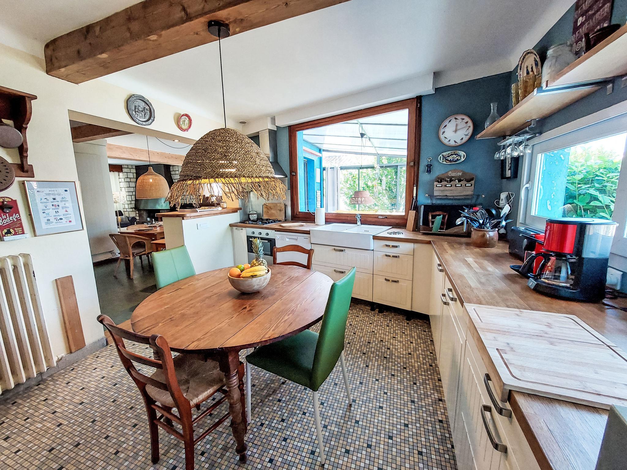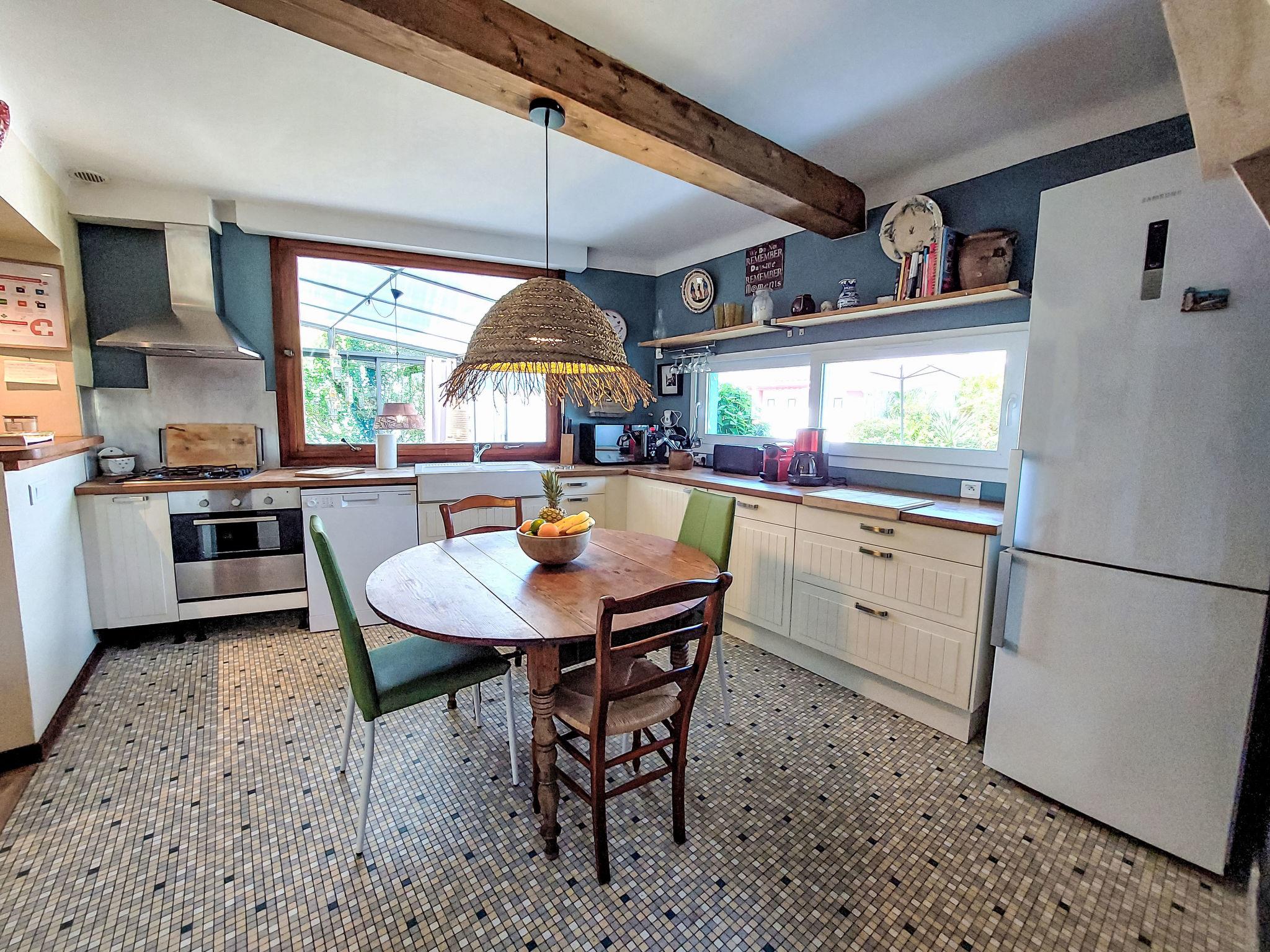 5-room terraced house 145 m2. Very beautiful furnishings: large entrance hall. Exit to the veranda. Large living/dining room 45 m2 with open-hearth fireplace (only for decoration), TV (flat screen). Exit to the veranda. Open kitchen (oven, dishwasher, 4 gas rings, toaster, kettle, microwave, electric coffee machine) with dining table. Exit to the garden. Sep. WC. Upper floor: 1 large room with 1 french bed (160 cm, length 200 cm), hand-basin and shower. Exit to the balcony. 1 room with 1 french bed (160 cm, length 200 cm). Exit to the terrace. 1 large room with 2 beds (90 cm, length 190 cm), hand-basin and shower. 1 room with 1 french bed (160 cm, length 200 cm). Bath/WC, double hand-basin. Gas heating. Large terrace 16 m2. Terrace furniture, barbecue, deck chairs. Facilities: washing machine, children's high chair, baby cot. Internet (WiFi). Please note: non-smoking house. Maximum 1 pet/ dog allowed. Smoke alarm. Offer by a private individual according to Art. 155, IV of CGI. 85194001391EE