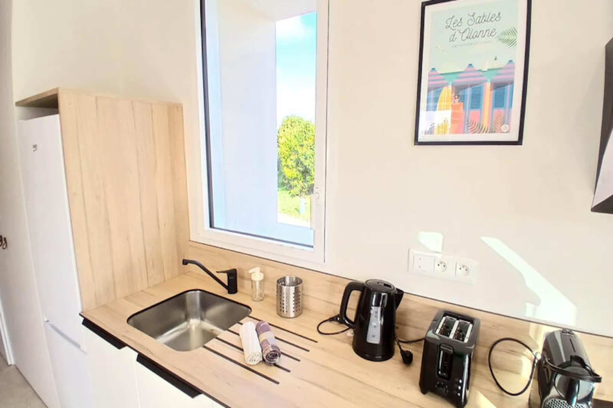 I den pulserende kystby Les Sables d’Olonne tilbyder dette charmerende etplanshus et roligt tilflugtssted kun få øjeblikke fra Atlanterhavets gyldne kyster. Forestil dig at slappe af på din private terrasse, mens solen varmer din hud, mens du slapper af i den boblende jacuzzi, der er tilgængelig som en valgfri forkælelse i de køligere måneder. Med sit moderne design og fredelige boligomgivelser er denne ejendom perfekt til par eller familier, der søger en blanding af komfort og bekvemmelighed i Vendée-regionen. \n\nIndenfor kan huset prale af en lys og luftig stue på 25 m² med et fuldt udstyret åbent køkken, ideelt til at tilberede måltider til servering under åben himmel. Soveområdet omfatter et hyggeligt soveværelse med queensize-seng og et fleksibelt soveværelse med to enkeltsenge, der kan omdannes til en kingsize-seng, hvilket sikrer afslappende nætter for op til fire gæster. Et elegant badeværelse med bruseniche og et separat toilet fuldender planløsningen, mens gennemtænkte detaljer som privat parkering og havemøbler forbedrer dit ophold. \n\nBeliggende kun 4 km fra Grande Plage des Sables d’Olonne har du nem adgang til sandstrande, charmerende strandpromenader og den travle bymidte. Supermarkeder og butikker ligger bekvemt i nærheden, og togstationen ligger kun 3 km væk, hvilket gør dette til en fremragende base for at udforske regionen. Uanset om du er her i Vendée Globe-afrejseweekenden eller blot for at nyde kyststemningen, tilbyder dette hjem den perfekte blanding af afslapning og eventyr. \n\nBook dit ophold nu og oplev magien i Les Sables d’Olonne, hvor havbrisen og bølgernes rytme skaber uforglemmelige minder.