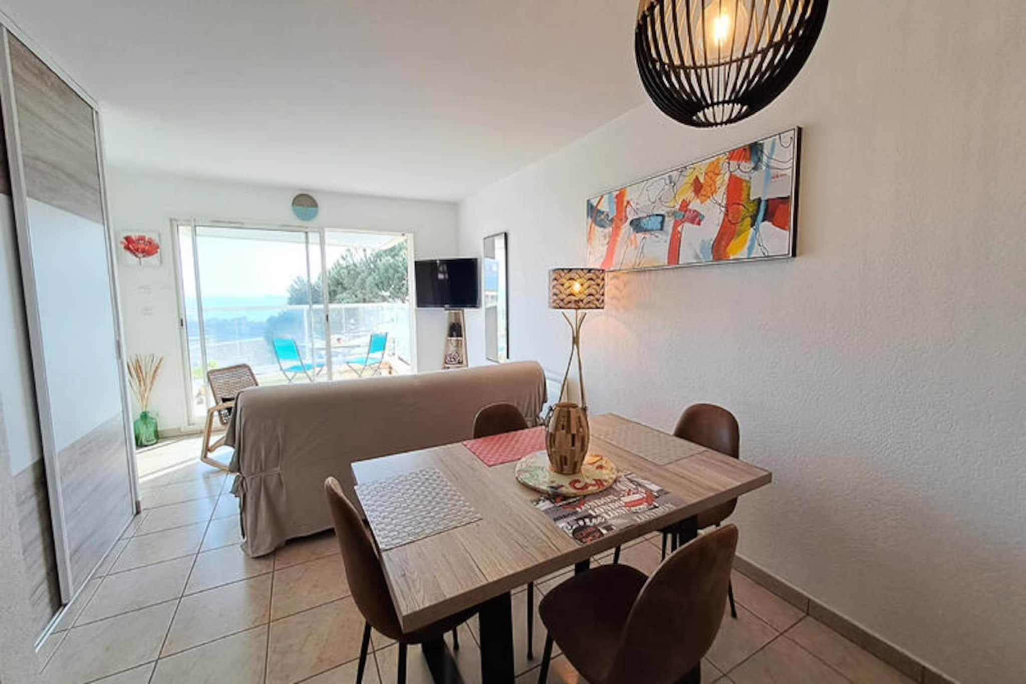 Væk dine sanser til Atlanterhavets beroligende rytme i denne charmerende lejlighed beliggende i hjertet af La Chaume, Les Sables-d'Olonne. Med en fantastisk udsigt over havet og det historiske Saint-Nicolas Priory tilbyder dette 3-stjernede tilflugtssted en perfekt blanding af ro og kystcharme, ideelt til en foryngende ferie. Forestil dig at nippe til din morgenkaffe på balkonen, mens bølgerne slår mod kysten, og Grand Jetty strækker sig ud i horisonten. \n\nIndvendigt er lejligheden omhyggeligt designet til at tilbyde komfort og bekvemmelighed. Den rummelige stue, badet i naturligt lys, tilbyder en fantastisk havudsigt, mens det åbne køkken er fuldt udstyret med moderne apparater, herunder opvaskemaskine, mikrobølgeovn og kogeplader, hvilket gør madlavning til en leg. Det hyggelige soveværelse, også med udsigt over havet, har en komfortabel dobbeltseng, og en ekstra alkove med en køjeseng sikrer rigelig soveplads til familier. Badeværelset er udstyret med bruser, vaskemaskine og masser af opbevaringsplads, suppleret af et separat toilet for ekstra privatliv. \n\nTræd udenfor, og du vil finde dig selv fordybet i det pulserende, men fredelige La Chaume-distrikt. Pointe du Prieuré Saint Nicolas og dens barske kystlinje ligger kun 150 meter væk, perfekt til naturskønne vandreture og udforskning af skjulte bugter. Gå 290 meter til Quai de la Chaume, hvor charmerende butikker og restauranter venter, eller besøg Bassin Dombret for en unik naturlig svømmeoplevelse. Det livlige Place Maraud-marked, kun 550 meter væk, tilbyder friske lokale råvarer og regionale lækkerier. For et strejf af eventyr kan du hoppe på den lille færge, kun 350 meter væk om sommeren, for at nå det travle bycentrum og Grand Beach. \n\nMed en privat parkeringsplads, direkte busforbindelse til togstationen og en række valgfrie tjenester, der forbedrer dit ophold, er denne lejlighed din port til det bedste af Les Sables-d'Olonne. Uanset om du søger en romantisk flugt, en familieferie eller et roligt tilflugtssted, lover denne kystperle uforglemmelige minder ved havet.