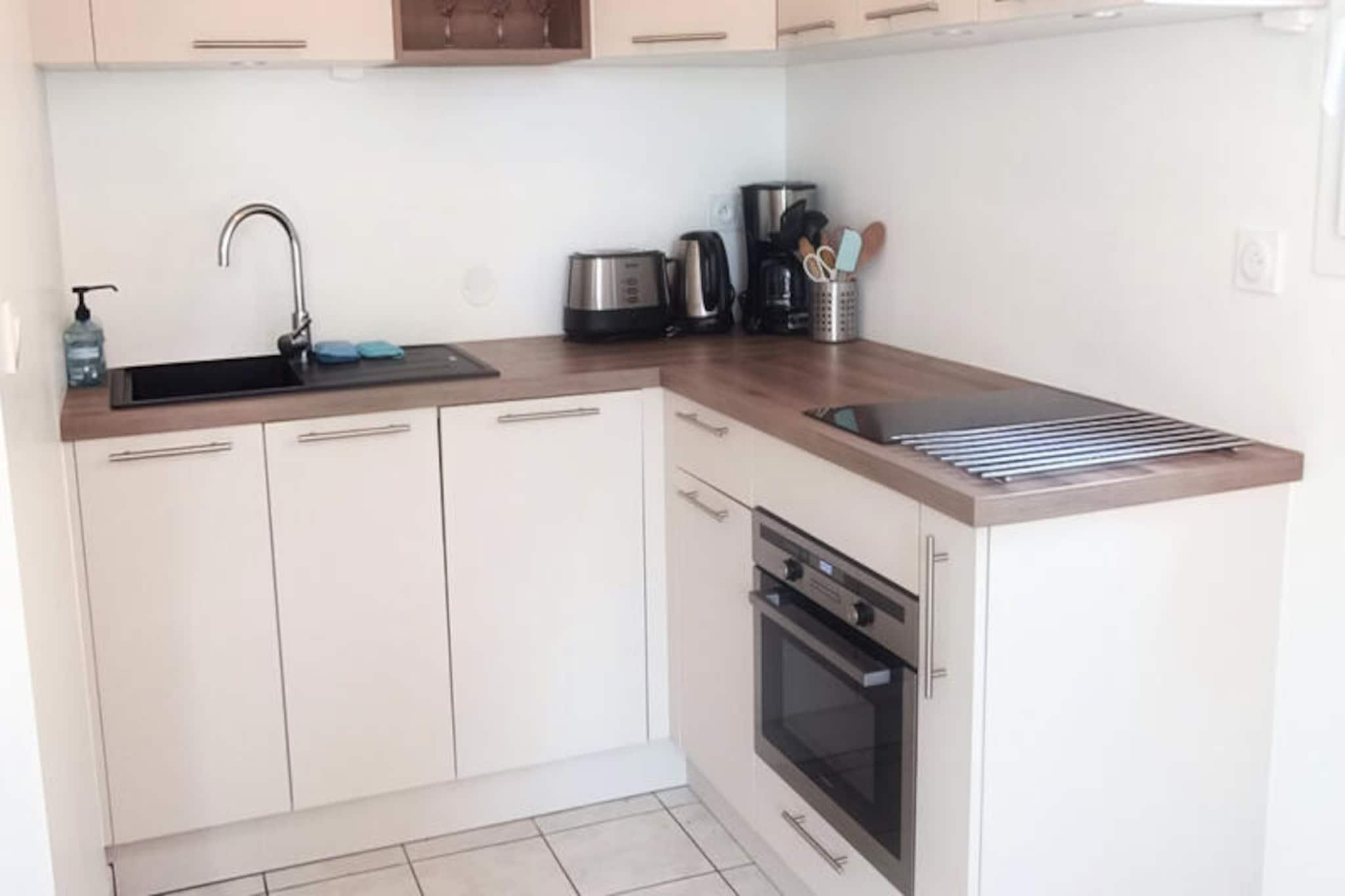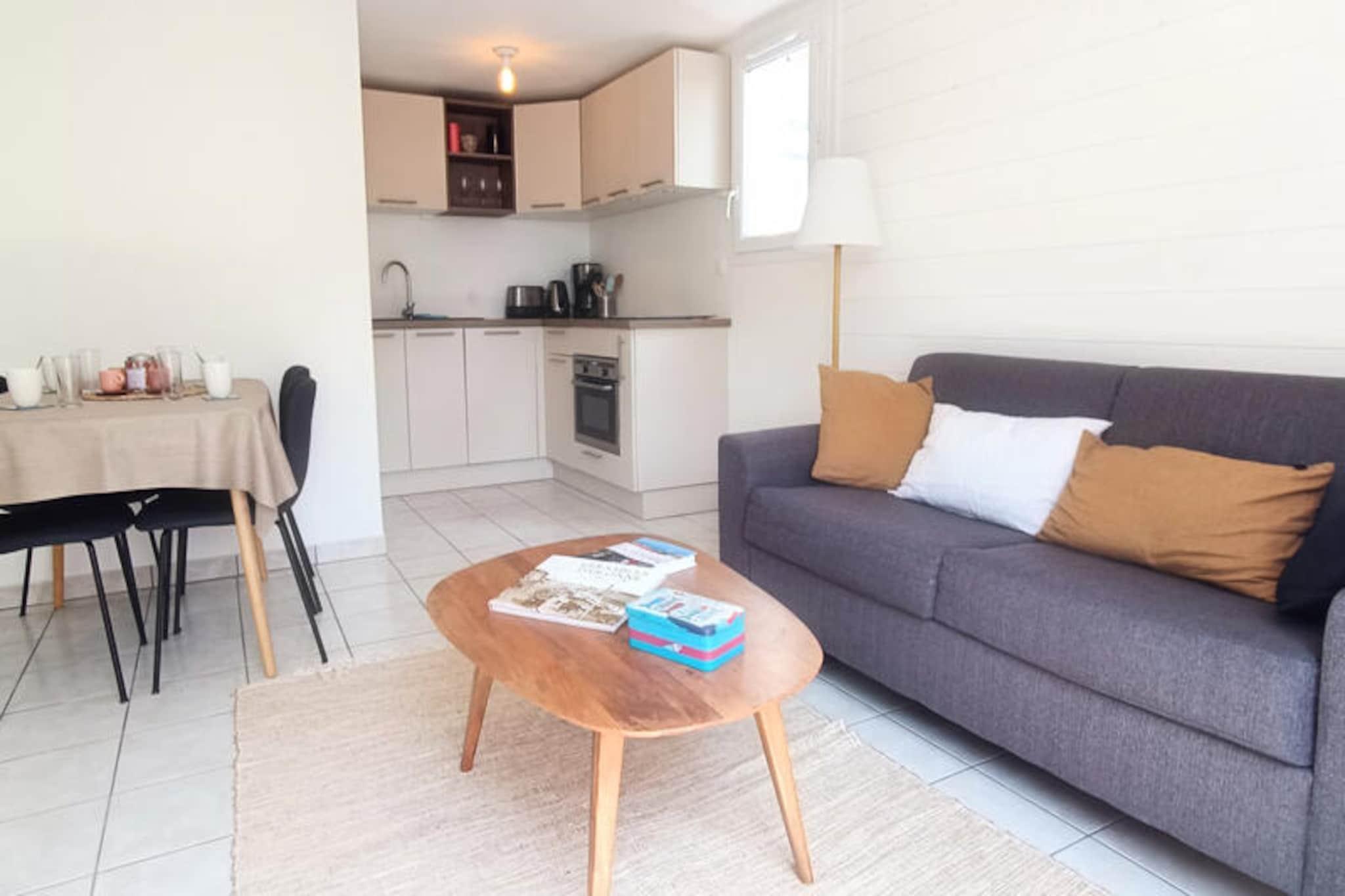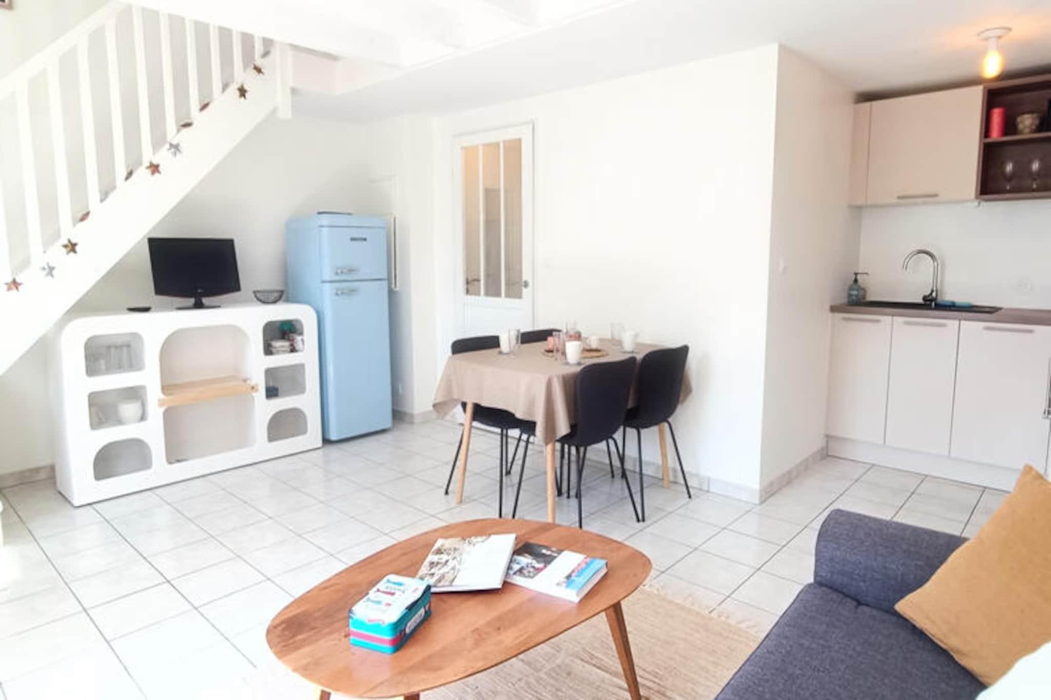 I hjertet af det historiske La Chaume-distrikt i Les Sables-d'Olonne inviterer dette dejlige sommerhus dig til at opleve charmen ved det franske kystområde. Beliggende ved foden af ??det gamle signaltårn tilbyder denne ejendom et roligt tilflugtssted kun få skridt fra den vilde kyst og Armandèche-fyrtårnet. Forestil dig at vågne op til lyden af ??havbrisen, nyde din morgenkaffe i den private sydvestvendte have og tage afsted til fods eller på cykel for at udforske de naturskønne kyststier. Indenfor er sommerhuset omhyggeligt designet til at tilbyde komfort og bekvemmelighed. Stueetagen har en hyggelig stue med sofa, tv og spiseplads samt et fuldt udstyret køkken med kaffemaskine, elkedel, ovn og tilbehør. Et moderne badeværelse med bruser og separat toilet bidrager til den praktiske anvendelighed. Ovenpå omfatter soveområdet et afslapningshjørne, et soveværelse med køjeseng og et andet med en queensize-seng, hvilket gør det ideelt til familier eller små grupper. Der er også en vaskemaskine til rådighed. Residensen kan prale af en fælles udendørs pool, der er åben fra midten af ??maj til midten af ??september, perfekt til afkøling på varme sommerdage. Med en privat parkeringsplads og nærhed til buslinje B er det nemt at komme til TGV-togstationen og bymidten. Den pulserende Quai de la Chaume med sine butikker, restauranter og marked ligger kun 900 meter væk, mens den lille båd (passeur) tilbyder en charmerende rute til hovedstranden og bymidten. Uanset om du nyder frisk fisk og skaldyr på en nærliggende restaurant, cykler langs kyststierne eller blot slapper af i din private have, tilbyder dette sommerhus en perfekt blanding af ro og tilgængelighed. Kom og skab uforglemmelige minder i dette maleriske hjørne af Frankrig.