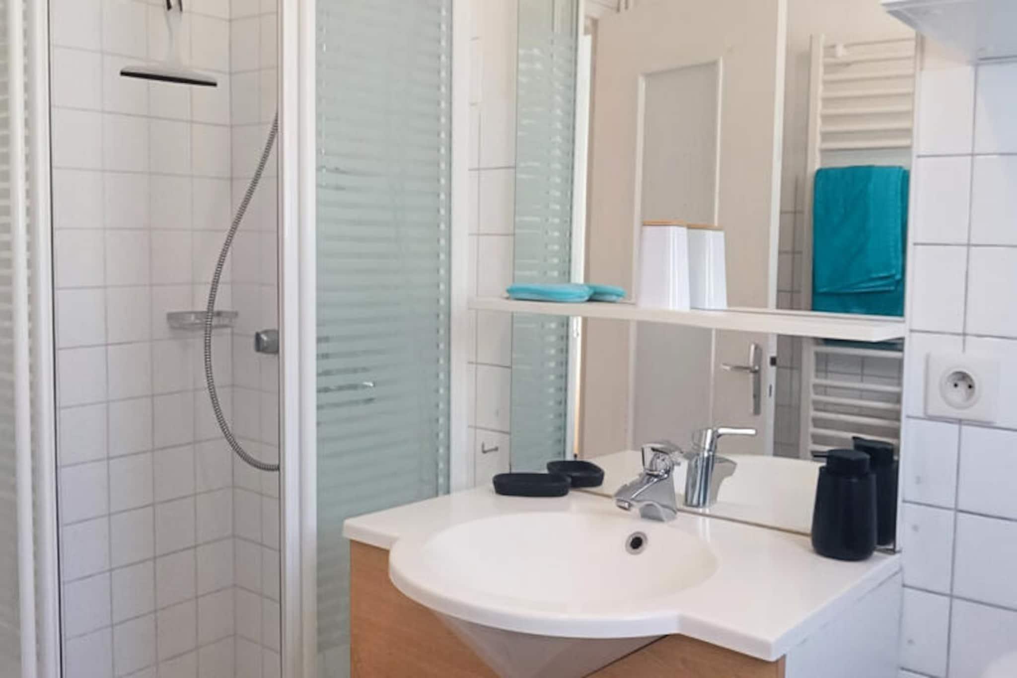 I hjertet af det historiske La Chaume-distrikt i Les Sables d'Olonne tilbyder denne charmerende lejlighed et roligt tilflugtssted ved havet. Fordyb dig i den autentiske landsbyatmosfære, hvor brostensbelagte gader og kanalens blide rytme skaber en malerisk ramme for dit ophold. Kun få skridt fra den legendariske Vendée Globe-kanal er dette det perfekte sted at slappe af og udforske det pulserende kystliv. \n\nDen 42 m² store lejlighed, der ligger på første sal i en lille ejerlejlighed, er omhyggeligt designet til komfort og bekvemmelighed. Stuen har en hyggelig sovesofa og et fjernsyn, mens det åbne køkken er fuldt udstyret med moderne apparater, herunder ovn, mikrobølgeovn, kogeplader, køleskab/fryser og opvaskemaskine. Soveværelset kan prale af en queensize-seng til afslappende nætter, og badeværelset har bruser, håndvask, toilet og vaskemaskine. Gå ud på terrassen, der er møbleret med havemøbler, og nyd en sideudsigt over kanalen, mens du nipper til din morgenkaffe eller slapper af efter en dag med eventyr. Wi-Fi-adgang er også tilgængelig for at holde dig forbundet. \n\nLa Chaumes livlige kvarter tilbyder en ægte smag af kystcharme. Gå en tur langs Quai de la Chaume, der er fyldt med butikker og restauranter, eller besøg Pointe du Prieuré Saint Nicolas og dens vilde kystlinje med skjulte bugter. Dombret-bassinet tilbyder et unikt badested, mens det travle Place Maraud-marked inviterer dig til at opdage lokale smagsoplevelser. For ekstra bekvemmelighed ligger et Super U-supermarked kun 950 meter væk, og SNCF-togstationen er let tilgængelig med færgen. En lille båd, der ligger 200 meter fra lejligheden, forbinder dig med byens centrum og hovedstranden året rundt. \n\nUanset om du søger en fredelig flugt eller en aktiv ferie ved havet, er denne lejlighed i Les Sables d'Olonne din port til uforglemmelige minder. Oplev charmen ved La Chaume og skønheden ved Vendée-kysten, hvor hvert øjeblik føles som en fejring af livet ved havet.
