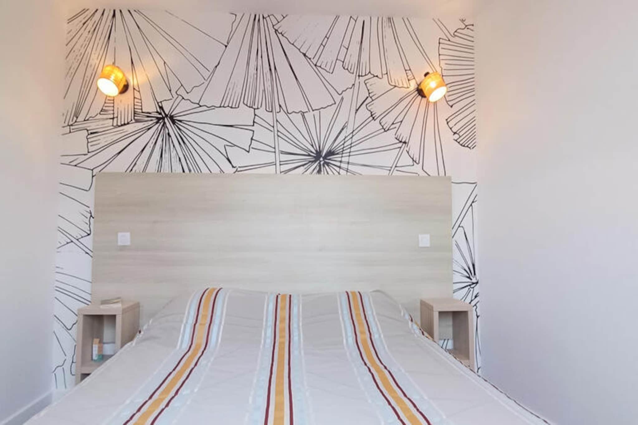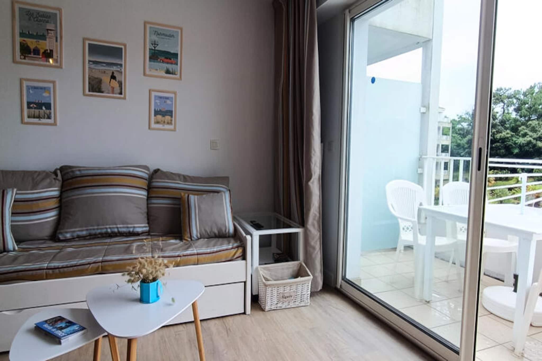 Træd ind i en verden af ??afslapning og kystcharme i denne dejlige lejlighed i Les Sables-d'Olonne. Med sin sydvestvendte balkon med udsigt over en fredfyldt fyrreskov og den glitrende swimmingpool tilbyder denne bolig en rolig tilflugtssted kun en kort gåtur fra stranden. Uanset om du søger et fredeligt tilflugtssted eller en aktiv ferie, imødekommer de pulserende omgivelser enhver stemning og interesse. Fra morgenture ved Tanchet-søen til aftener med udforskning af de livlige lokale restauranter og kasino, er hvert øjeblik en mulighed for at skabe varige minder. \n\nDenne 4-stjernede lejlighed er omhyggeligt designet til komfort og bekvemmelighed. Beliggende på anden sal med elevatoradgang, har den to hyggelige soveværelser - et med en queensize-seng og rigelig opbevaringsplads, og et andet med to enkeltsenge, der kan sættes sammen. Stuen inviterer dig til at slappe af med sin komfortable sofa, mens det fuldt udstyrede køkken gør det nemt at tilberede måltider med moderne apparater som køleskab/fryser, opvaskemaskine, ovn og mikrobølgeovn. En vaskemaskine, fjernsyn og rengøringsmidler er til rådighed for at sikre et problemfrit ophold. Gæsterne kan også drage fordel af en sikker underjordisk parkeringsplads for ekstra ro i sindet. \n\nUd over boligen er området fyldt med attraktioner. Den opvarmede swimmingpool, der er åben fra midten af ??maj til slutningen af ??september, er perfekt til afslappende eftermiddage. Tennisbaner, en zoologisk have, spa-faciliteter og frodige skove er alle inden for rækkevidde, hvilket gør det til en ideel destination for både familier og par. Uanset om du nyder solen på sandstrandene eller udforsker de charmerende gader i Les Sables-d'Olonne, tilbyder denne beliggenhed det bedste af kystlivet. \n\nVælg denne lejlighed til din næste ferie, og oplev den perfekte blanding af komfort, bekvemmelighed og naturlig skønhed. Fra dens førsteklasses faciliteter til den uovertrufne beliggenhed er det den ultimative base for at opdage skattene ved den franske Atlanterhavskyst.