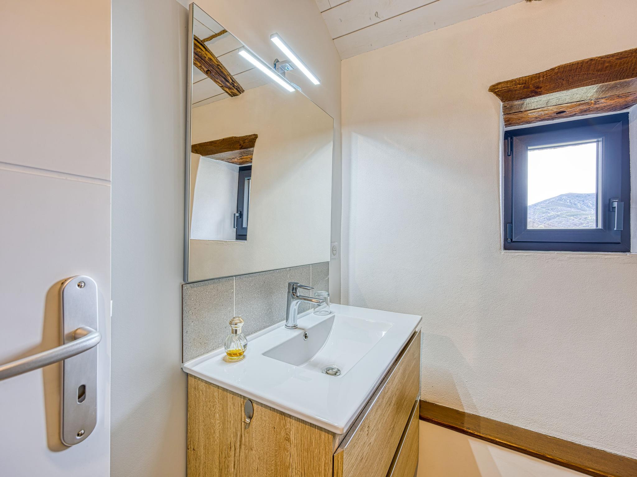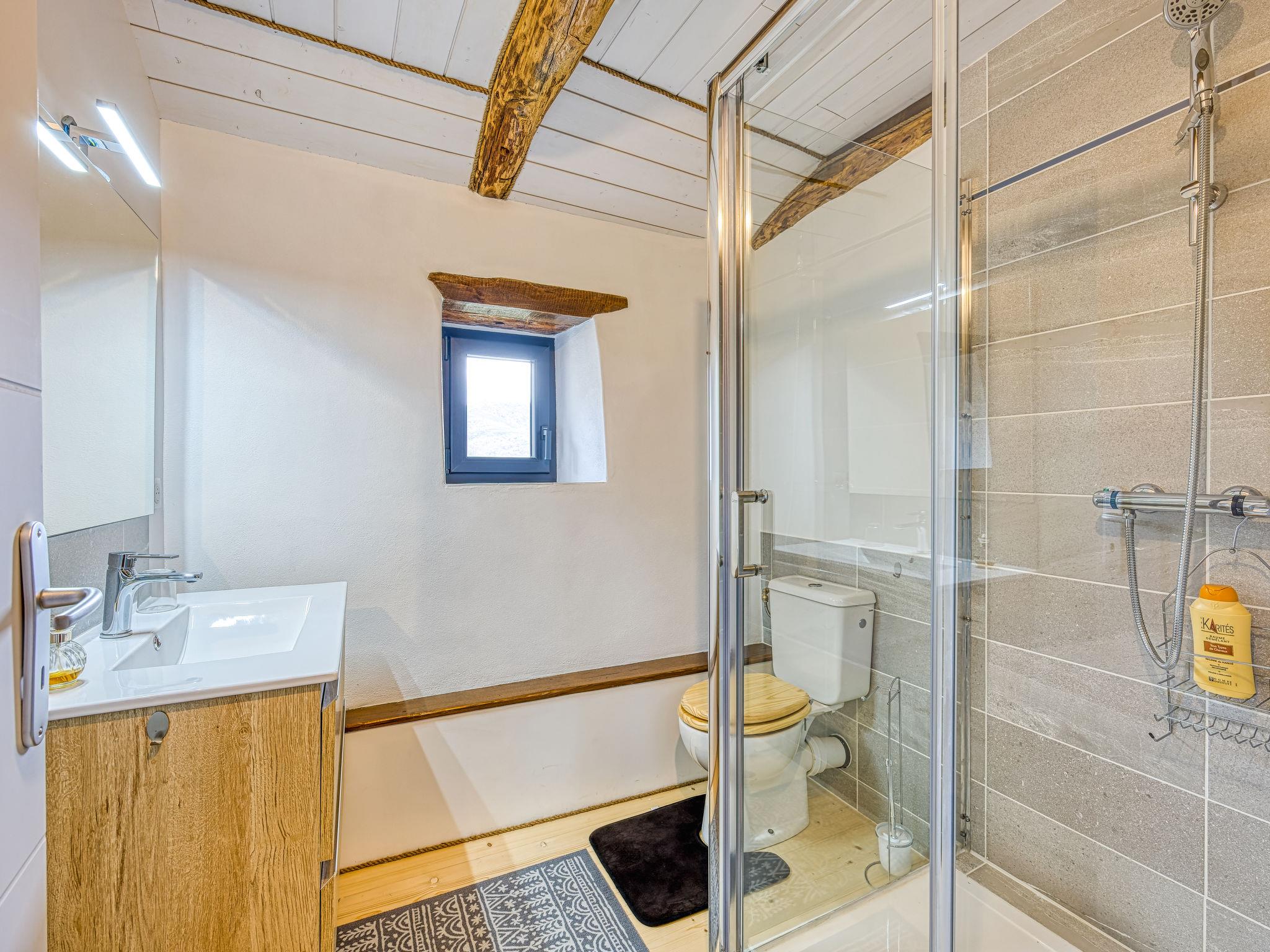 "Le Trépadou", 2-room house 50 m2 on 2 levels. Fully in 2022, comfortable furnishings: living/dining room with 1 sofabed (140 cm, length 190 cm), satellite TV (flat screen), fan. Exit to the terrace. Open kitchen (1 hot plate, oven, dishwasher, 3 gas rings, toaster, kettle, microwave, electric coffee machine). Upper floor: (spiral staircase), 1 room with 1 x 2 bunk beds (90 cm, length 190 cm), 1 french bed (1 x 140 cm, length 190 cm). Exit to the terrace. Shower/WC. Electric heating. Large terrace 30 m2. Terrace furniture, barbecue, deck chairs. Very beautiful view of the mountains, the countryside and the forest. Facilities: washing machine. Please note: non-smoking house. Private entrance, smoke alarm. Offer by a private individual according to Art. 155, IV of CGI.