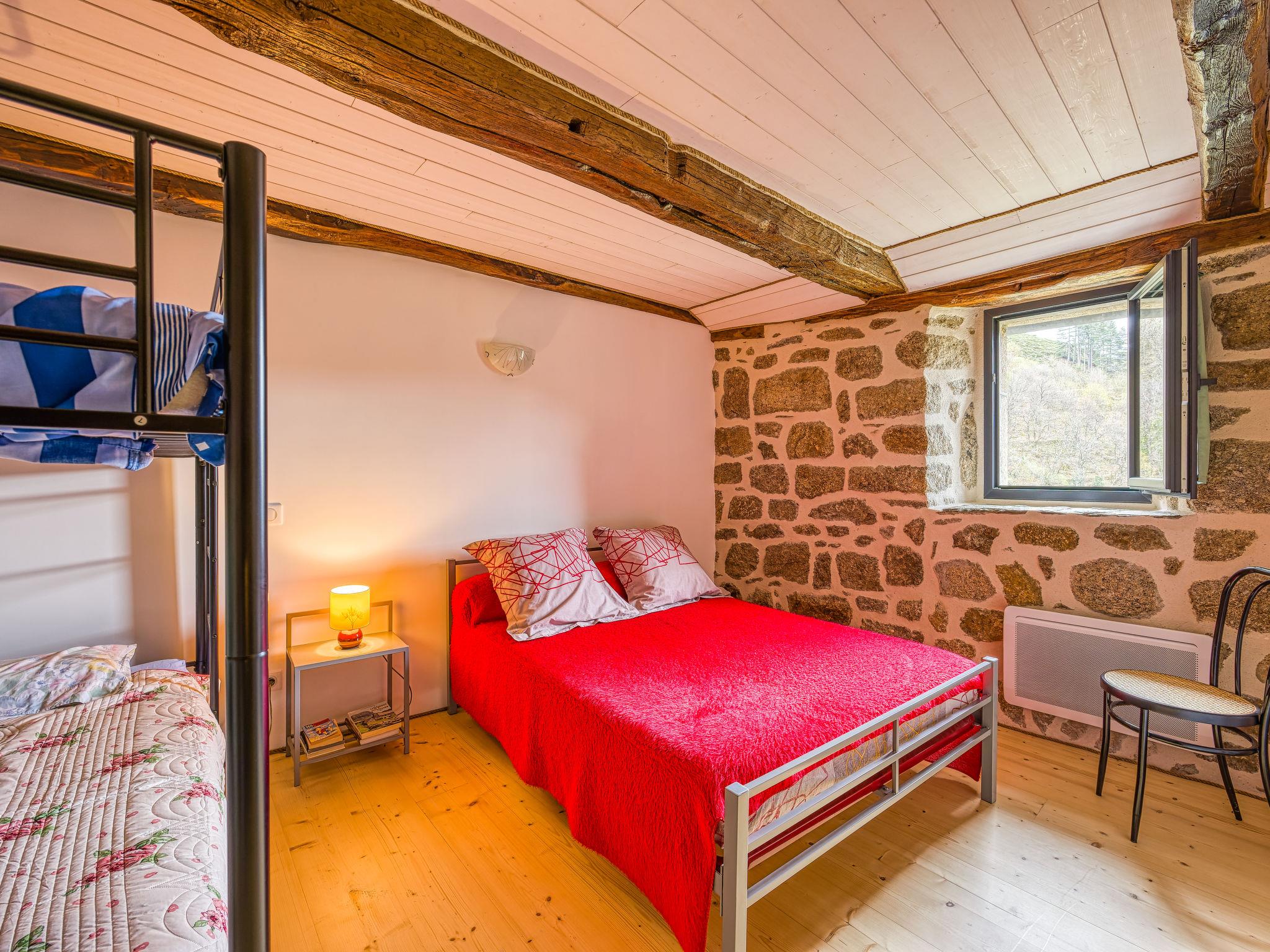 23 km from Les Vans: Small terraced house "Le Trépadou", 2 storeys. Above Ste marguerite Lafigère, in the district of Le Trépadou, in a secluded, quiet position on a slope, 5 m from the edge of the forest, 2 km from the lake, 2 km from the river, in a cul-de-sac. Private: property, orchard. In the house: storage room for bicycles. Narrow motor access (mountain road). Parking on the premises. Shop 3 km, supermarket 8 km, bus stop "Le Plagnol" 18 km, rocky beach "Rives Borne" 2 km. Nearby attractions: Vallon Pont d'arc 52 km, Grotte Chauvet 56 km, Les Vans 23 km, Canyoning Gorges de Chassezac 20 km. Well-known lakes can easily be reached: Lac de Villefort 6 km. Hiking paths: Corniche de Casteljo 17 km, Sentier vigneron Lablachère 18 km. Owner lives in separate semi-detached house.