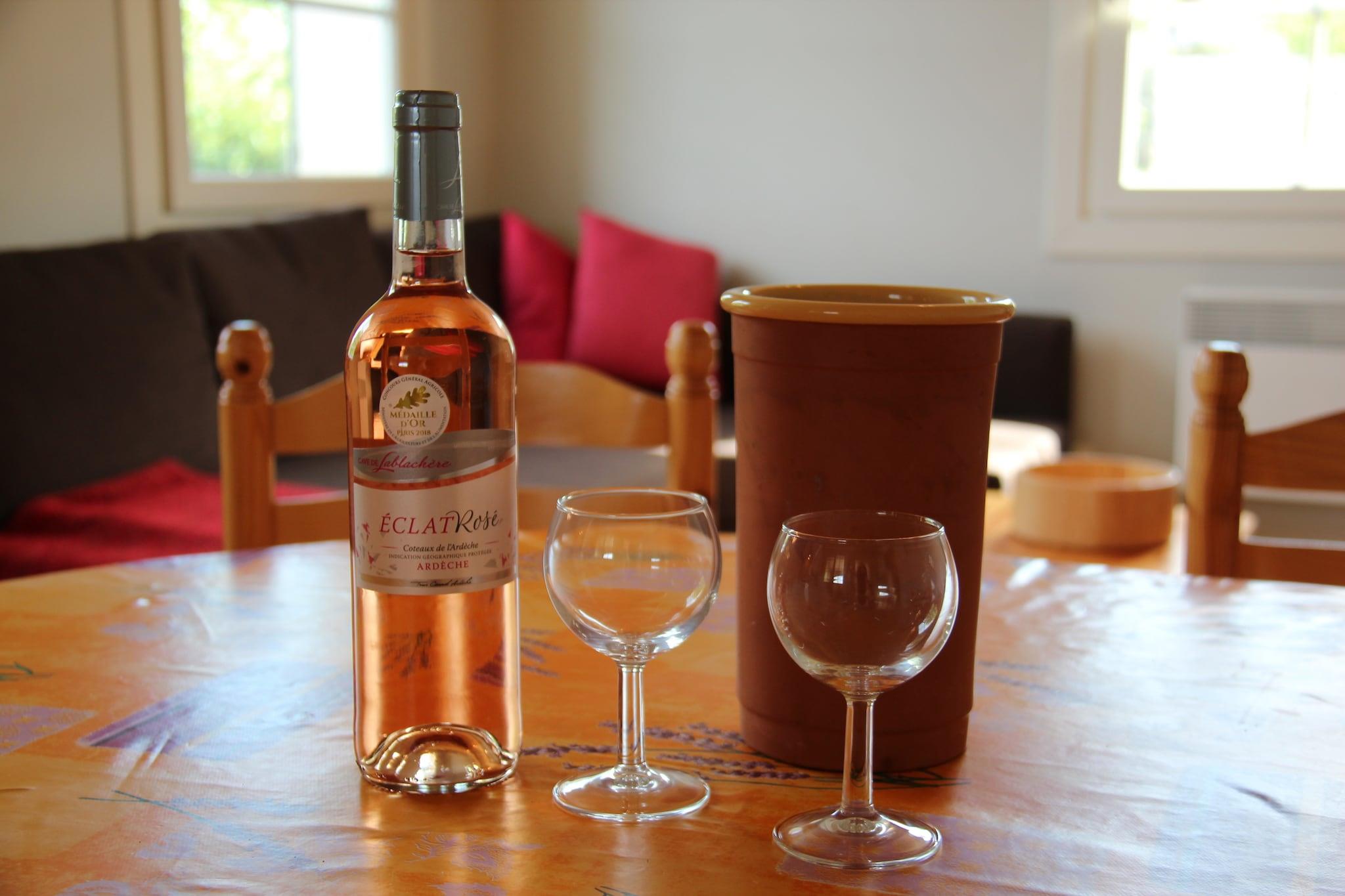Dette 2-værelses feriehus i Chassagnes, kun 2 km fra Les Vans Centre, kan komfortabelt rumme op til 6 gæster og er ideelt for familier eller små grupper. Det har en hyggelig stue/spisestue med tv og opholdsområde samt et fuldt udstyret køkken med kaffemaskine, ovn, mikroovn og køleskab med fryser. Soveværelserne har en dobbeltseng og en kombination af dobbeltsenge og køjesenge - perfekt til børn. Elvarme og aircondition sikrer komfort gennem hele sæsonen, mens en fælles vaskemaskine tilføjer bekvemmelighed. Udenfor kan gæsterne slappe af på den 10 m² store terrasse med havemøbler og nyde at grille på grillen. Den fælles 50 m² store have og indhegnede pool (10×4 m, åben juni-september) inviterer til fredelige udendørs øjeblikke. Liggestole og parkering er også tilgængelige for gæster. Naturen er tæt på, med Chassagnes-floden og vandsport kun 1 km væk, og tennisbaner 5 km fra ejendommen. Les Vans byder på en livlig lokal scene, komplet med restauranter, bagerier og markeder. Uanset om du udforsker naturskønne stier eller blot slapper af ved poolen, udgør dette feriehus en afslappende base for din flugt fra Ardèche.