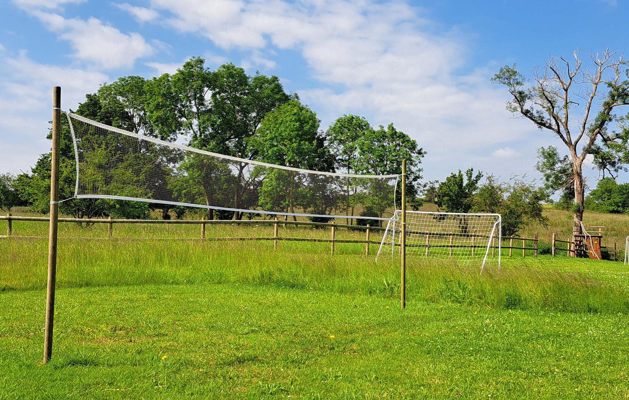 I kan fortsætte med yderligere aktiviteter i haven. Tag en svømmetur i swimmingpoolen eller spil et spil bordtennis. Boccia eller aftener sammen omkring bålstedet er også mulige. Der er også en svævebane, og der bor høns på ejendommen.