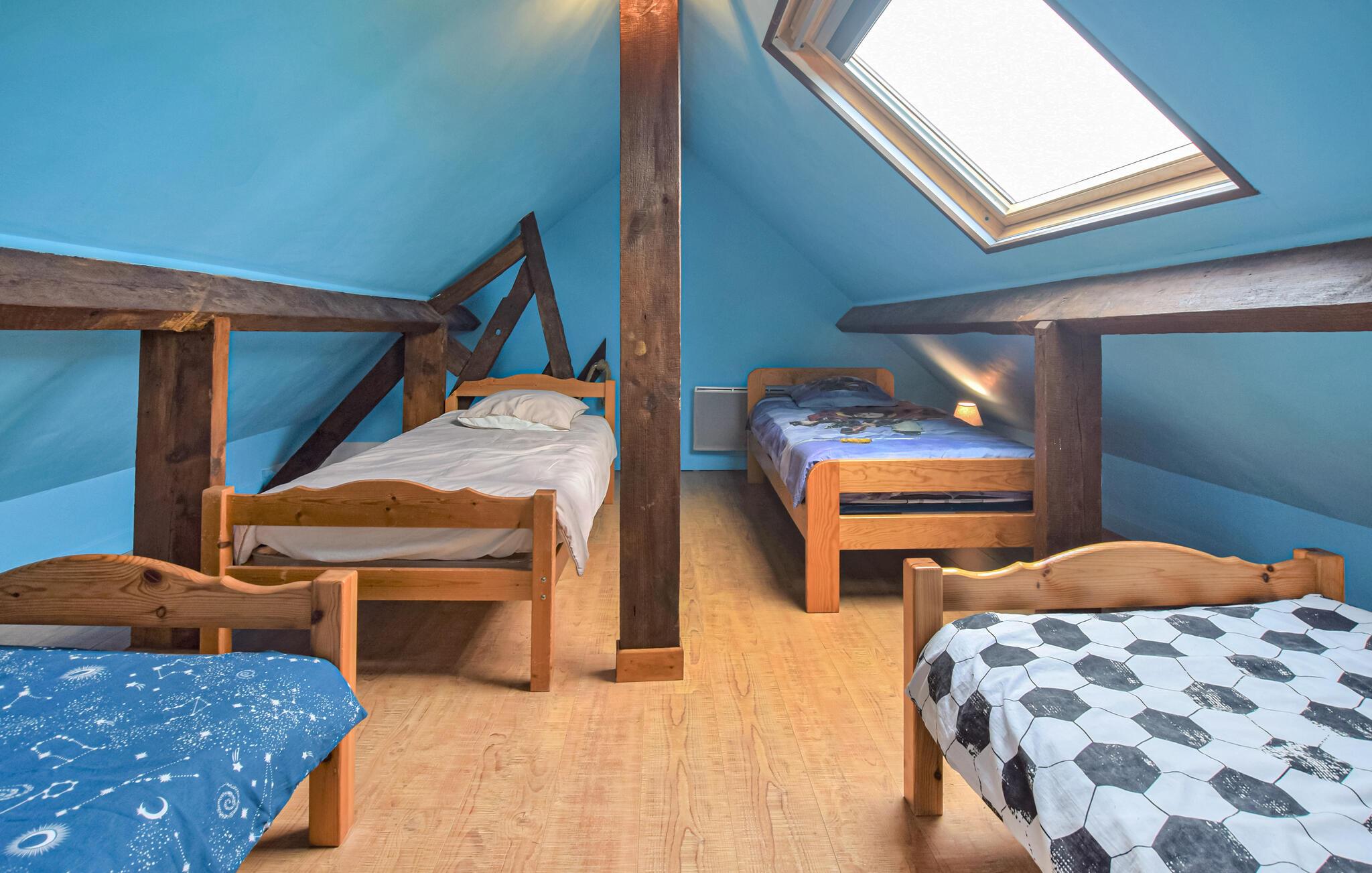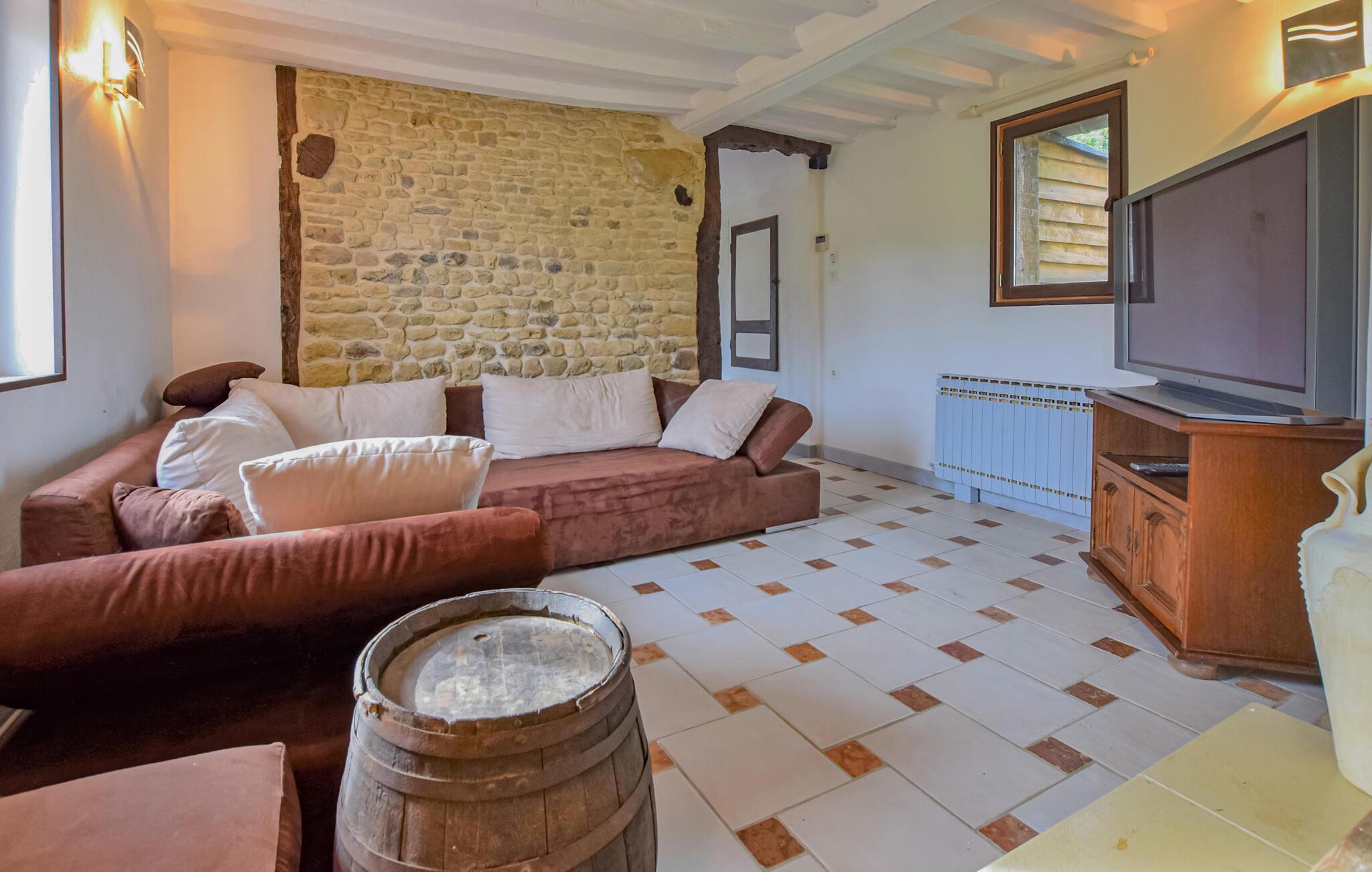 Dette særlige feriehus, typisk for Pays d'Auge, er bygget på landet med bindingsværk og mursten. Feriehuset er oplagt for den store familie, der ønsker at føle sig godt tilpas og nyde tiden sammen. Spil billard eller bordfodbold og glæd jer til hyggelige aftener ved pejsen.