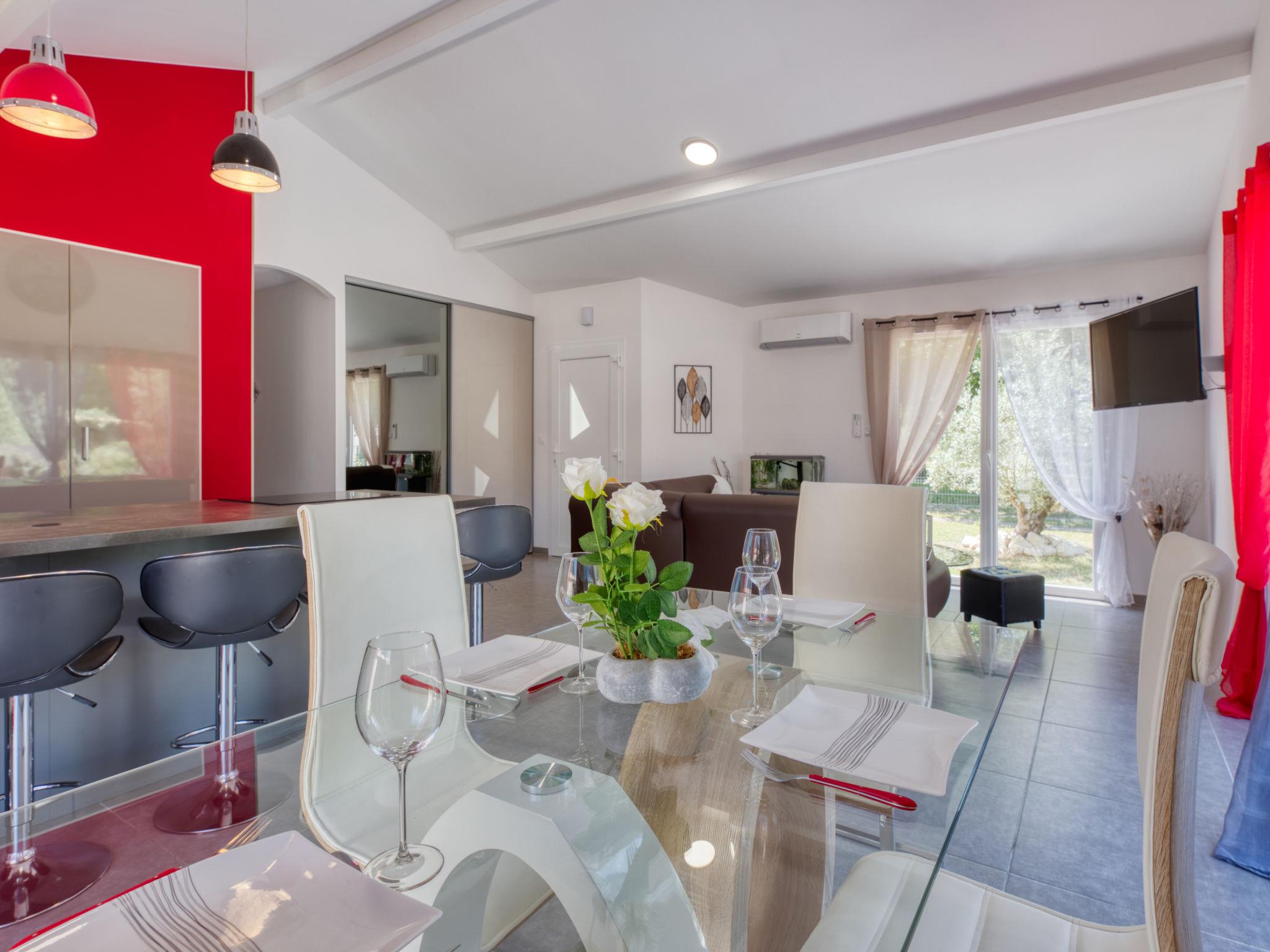 3-room house 80 m2. Beautiful and cosy furnishings: living/dining room with panoramic window with dining table and TV (flat screen). Exit to the terrace. 2 rooms, each room with 1 french bed (140 cm, length 190 cm), TV (flat screen). Open kitchen (oven, dishwasher, 3 induction hot plates, toaster, kettle, microwave, freezer, electric coffee machine) with bar. Shower, sep. WC. Air-conditioning, forced-air heating. Large terrace 40 m2. Terrace furniture, barbecue (portable), deck chairs (2). Facilities: washing machine, iron, hair dryer. Please note: non-smoking house. Smoke alarm. Offer by a private individual according to Art. 155, IV of CGI.