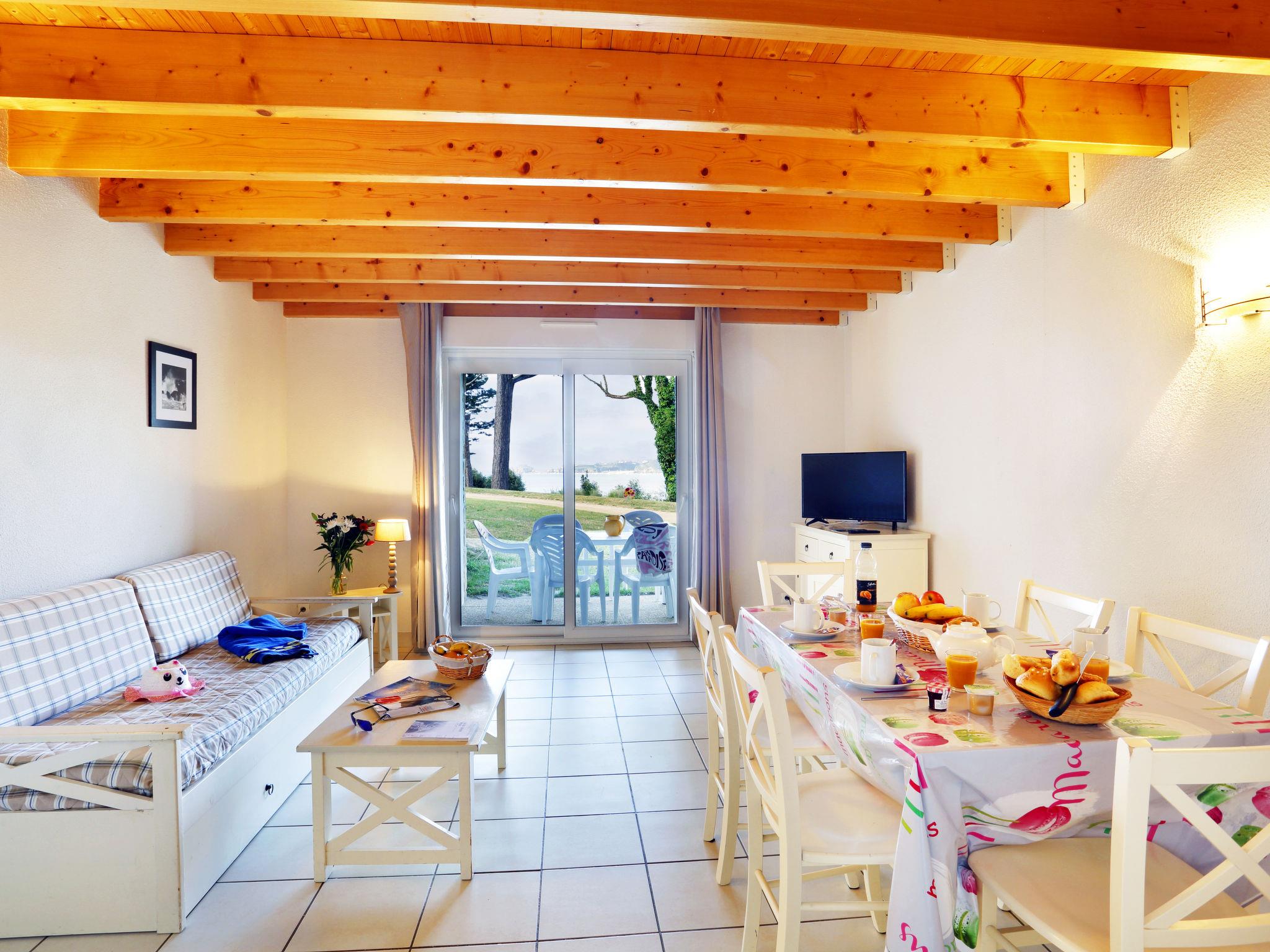 "Iroise Amorique", 2-room apartment 37 m2. Bright, practical furnishings: living/sleeping room with 1 sofabed, 1 pull-out bed, dining table and TV can be hired. 1 room with 1 french bed (140 cm, length 190 cm). Kitchenette (dishwasher, 4 ceramic glass hob hotplates, toaster, microwave, electric coffee machine). Bath/WC or shower/WC. Electric heating. Balcony or terrace. Terrace furniture, balcony furniture. Facilities: Internet (WiFi, extra). Please note: non-smokers only. Maximum 1 pet/ dog allowed. Smoke alarm, fire extinguisher. The property is one of a type of property or apartment.