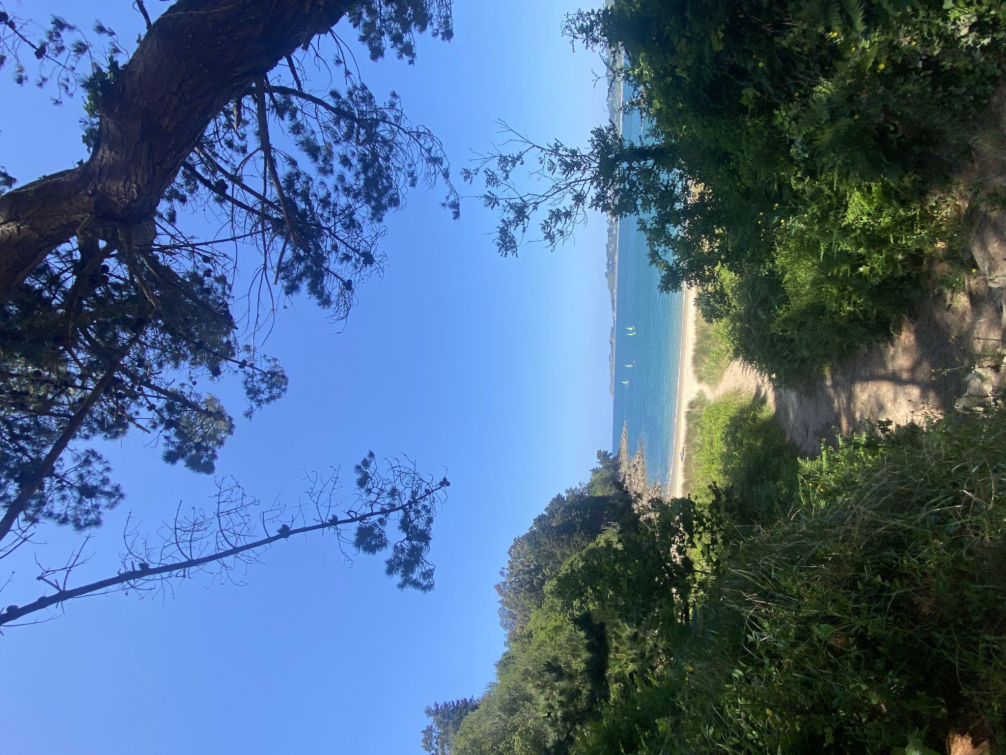 "Roz Amor", 3-room house 50 m2 on 2 levels. Practical furnishings: living/dining room with veranda. Exit to the garden, to the terrace. 1 room with 2 beds (80 cm, length 190 cm), shower/WC. Open kitchen (oven, 4 ceramic glass hob hotplates, kettle, microwave, freezer, electric coffee machine) with open-hearth fireplace. Upper floor: (steep stair), 1 open room with sloping ceilings with 2 beds (90 cm, length 190 cm), electric heating. View of the sea. Facilities: washing machine. Please note: non-smoking house. Smoke alarm.