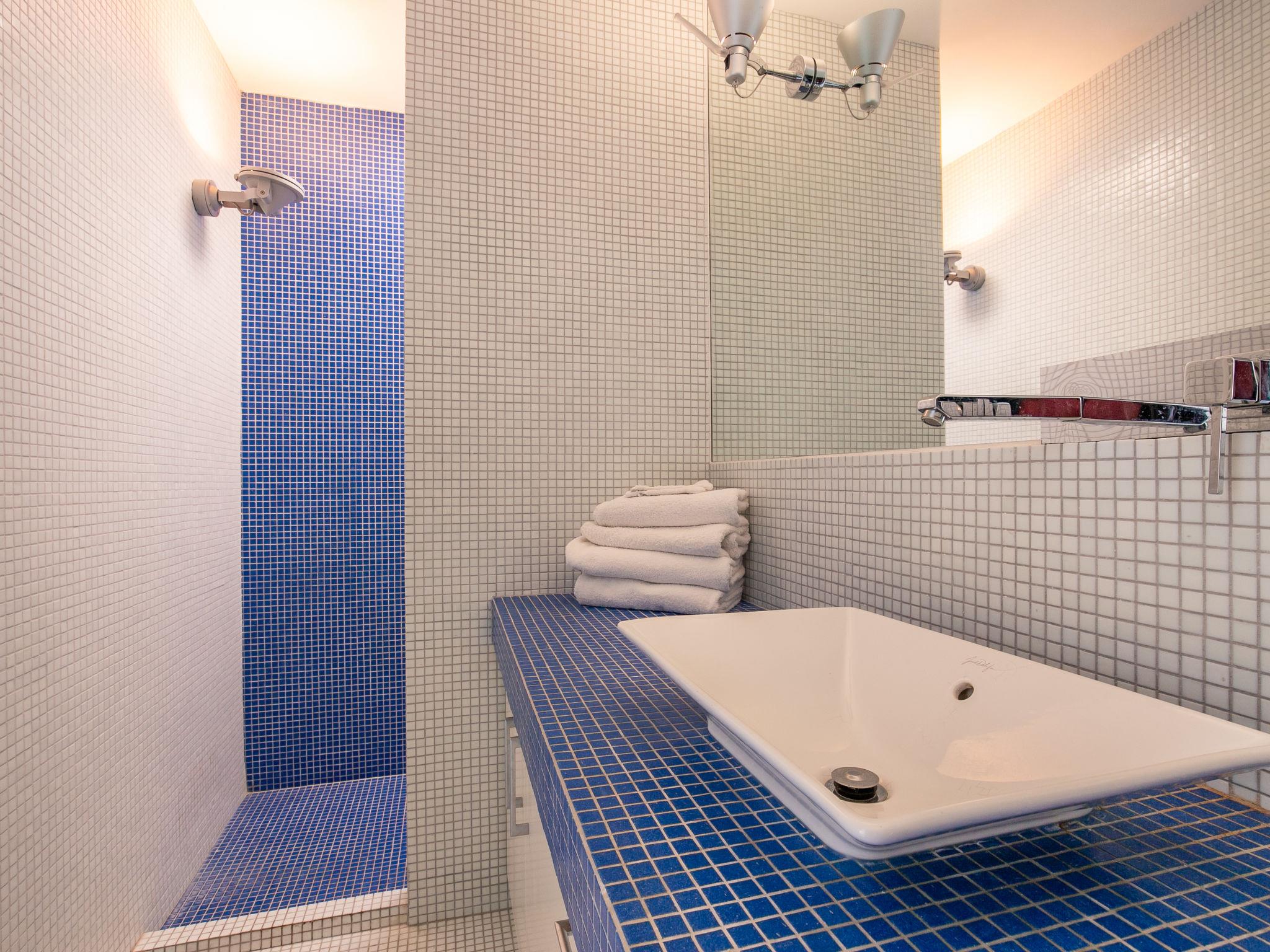 "Villa de la Baie", 4-room house 180 m2 on 2 levels. Bright, comfortable and tasteful furnishings: 1 room with 1 french bed (160 cm), shower. Exit to the garden. Sep. WC. Upper floor: living/dining room with open-hearth fireplace (only for decoration), dining table, satellite TV, radio and DVD. Exit to the terrace. 1 room with 1 french bed (160 cm), separate WC, shower, double hand-basin and hydro massage bath. 1 room with 1 french bed (140 cm), shower. Exit to the terrace. Open kitchen (oven, dishwasher, 3 induction hot plates, toaster, kettle, microwave, electric coffee machine). Sep. WC. Heating. Terrace. Terrace furniture, barbecue (portable), deck chairs (9). View of the sea. Facilities: washing machine, dryer, iron, children's high chair, baby cot. Internet (WiFi, free). Please note: non-smoking house. Maximum 3 pets/ dogs allowed. Smoke alarm. FR03434