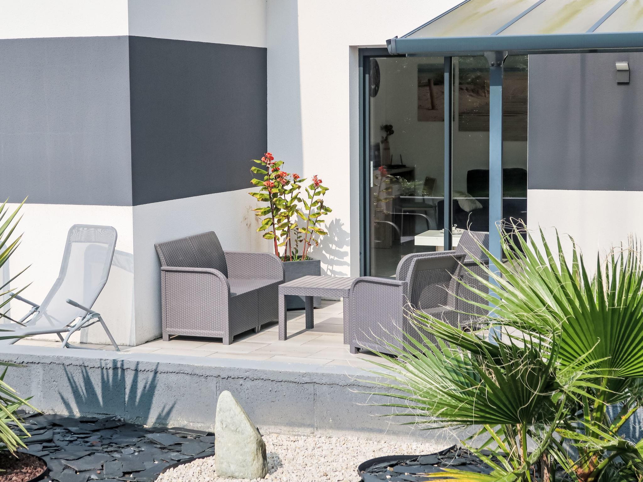 "Palet Breton", 4-room house 80 m2. Bright, comfortable and modern furnishings: living room 40 m2 with dining table, TV and international TV channels (flat screen). Exit to the terrace. 1 room with 1 french bed (160 cm, length 200 cm). 1 room with 2 beds (90 cm, length 200 cm). Open kitchen (oven, dishwasher, 4 ceramic glass hob hotplates, toaster, kettle, microwave, freezer, electric coffee machine). Shower/WC, sep. WC, double hand-basin, hydro massage bath, Sauna. Electric heating. Terrace 20 m2, south-west facing position. Terrace furniture, deck chairs (4). Facilities: washing machine, dryer, sauna, iron, children's high chair. Internet (WiFi, free). Please note: non-smoking house. Maximum 1 pet/ dog allowed. Smoke alarm. Offer by a private individual according to Art. 155, IV of CGI.