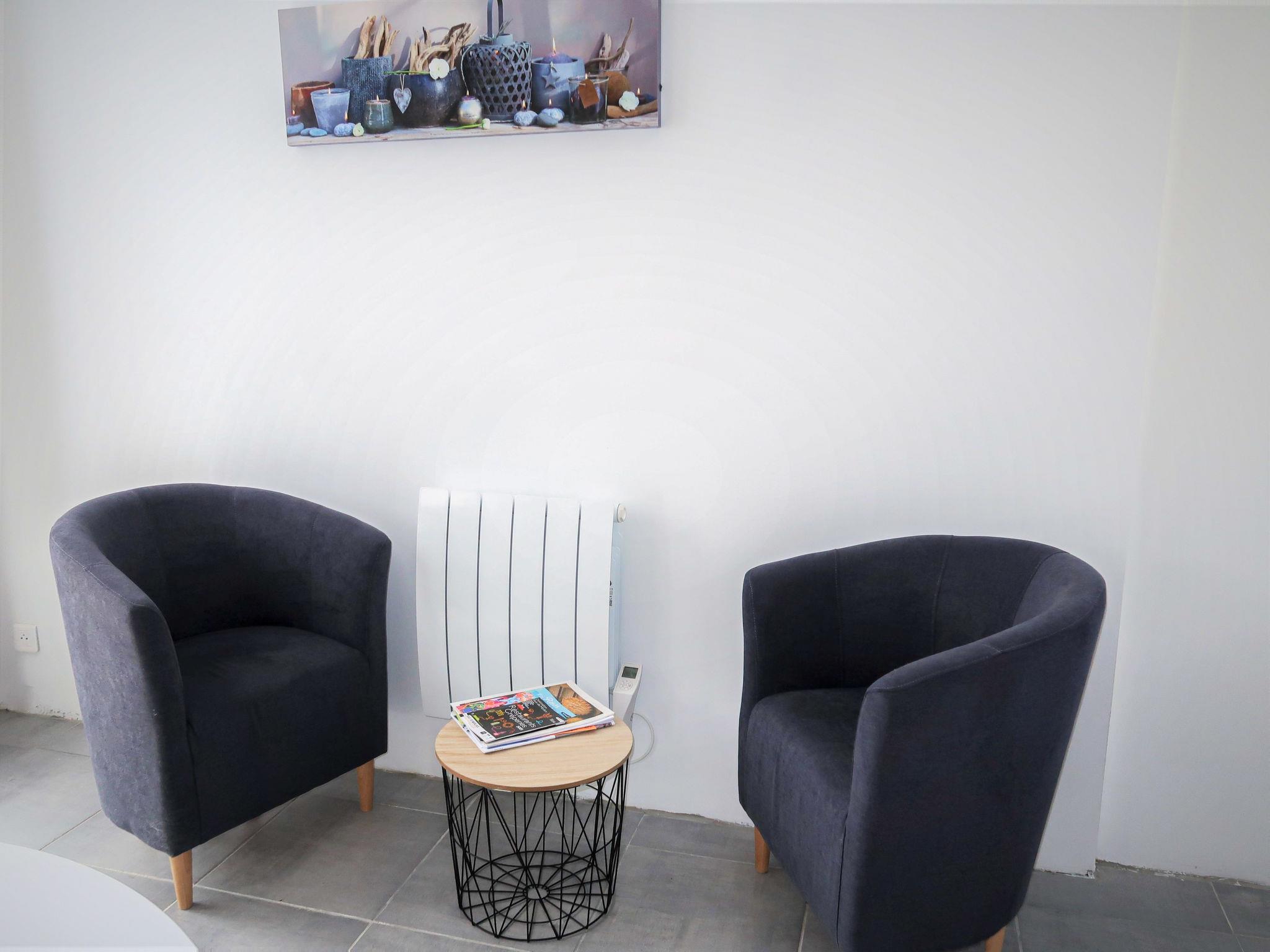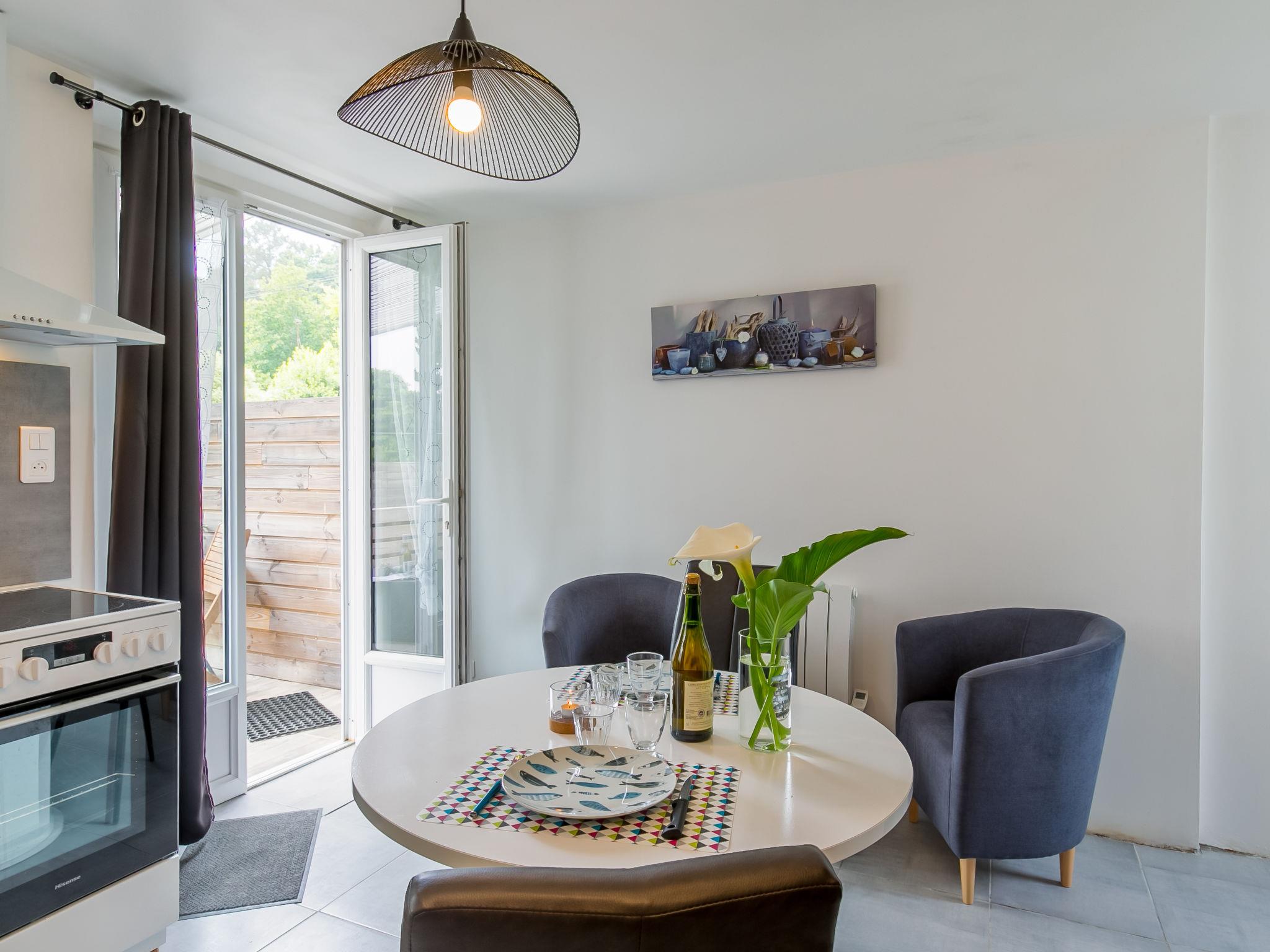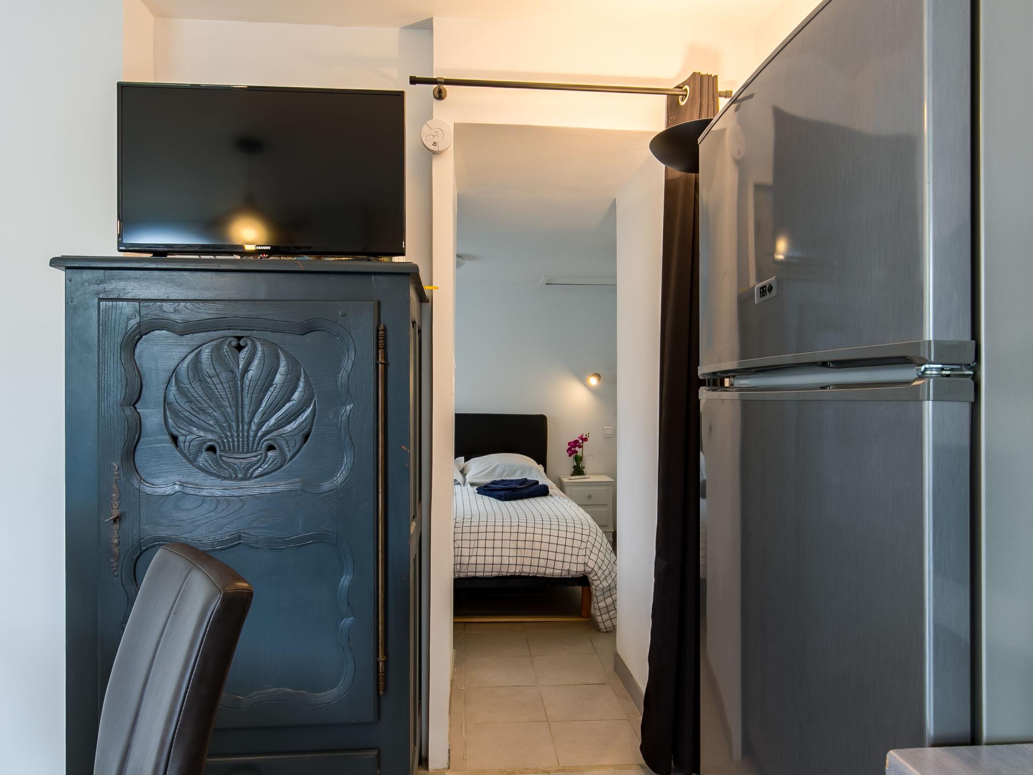 "Terre et Mer", 2-room apartment 25 m2. Bright, beautiful and cosy furnishings: living/dining room 13 m2 with TV and flat screen. Exit to the terrace. 1 small room with 1 french bed (140 cm, length 190 cm), TV and flat screen. Kitchenette (4 hot plates, oven, toaster, kettle, microwave, electric coffee machine). Shower/WC. Electric heating. Terrace 10 m2, south facing position. Terrace furniture, barbecue (portable), deck chairs (2). Facilities: hair dryer. Internet (WiFi, free). Parking (fenced 1 car). Please note: non-smokers only. Maximum 1 pet/ dog allowed. Private entrance, smoke alarm. High Speed Internet.
