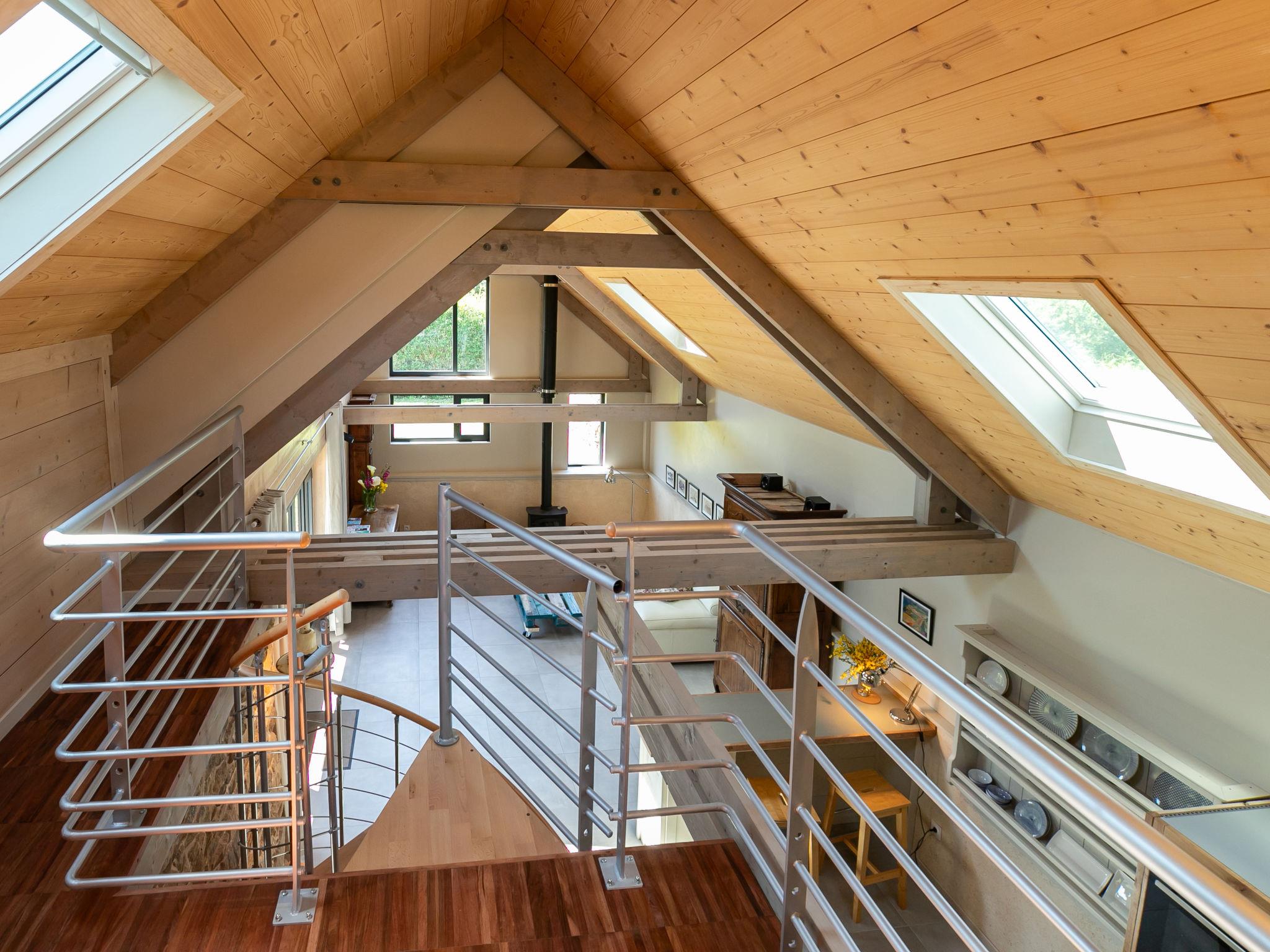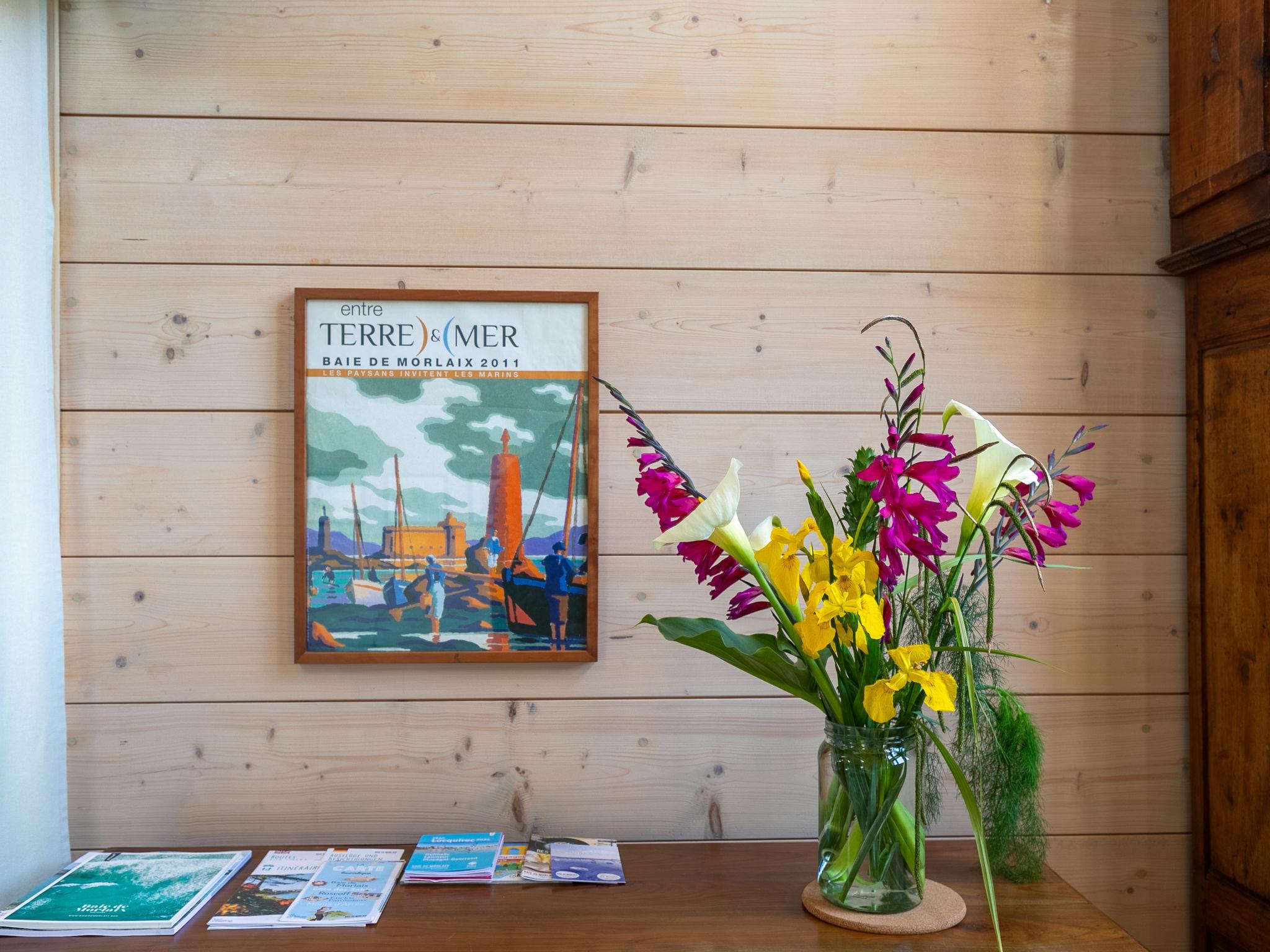 "Le Préau", 2-room house 82 m2. Spacious and bright, beautiful and tasteful furnishings: open large living room 26 m2 with TV, flat screen, hi-fi system and wood-burning stove. Exit to the garden, to the terrace. Open kitchen 26 m2 (oven, dishwasher, 3 induction hot plates, toaster, kettle, microwave, freezer, electric coffee machine, Capsules for coffee machine (Senseo Original Eco) extra) with bar, dining table. Exit to the terrace, to the patio. Shower/WC, double hand-basin. Upper floor: 1 room 12 m2 with 1 double bed (2 x 90 cm, length 200 cm). Sep. WC. Electric heating. Small terrace 10 m2, south facing position. Terrace furniture. View of the sea and the garden. Facilities: washing machine, iron, hair dryer. Internet (WiFi, free). Please note: non-smoking house. Smoke alarm, fire extinguisher. Ecological house, arrivals and departures on Mondays. Offer by a private individual according to Art. 155, IV of CGI.